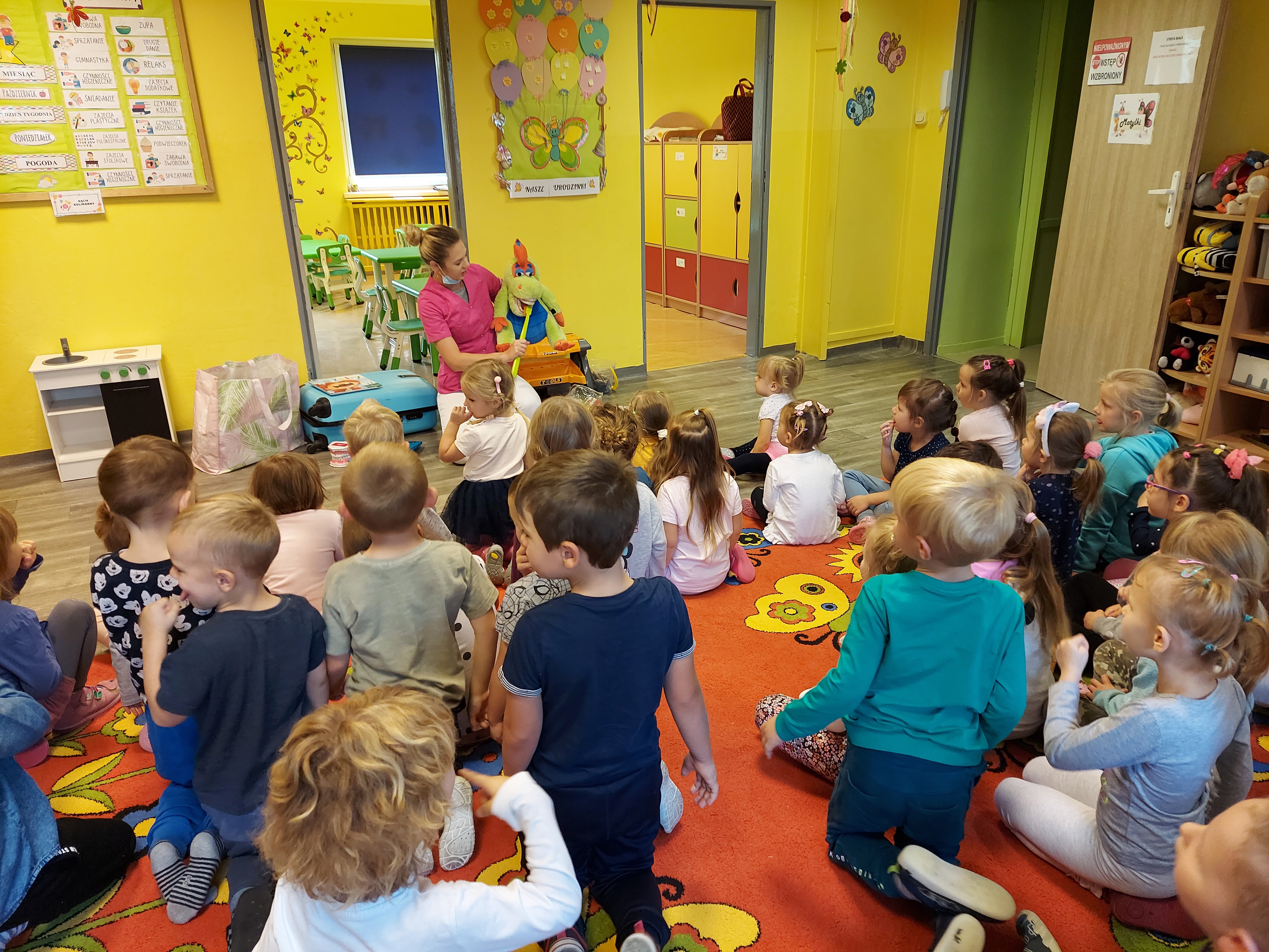 Wraz z pluszowym asystentem Dinusiem, uczymy się właściwej higieny jamy ustnej oraz zdrowych nawyków żywieniowych.
