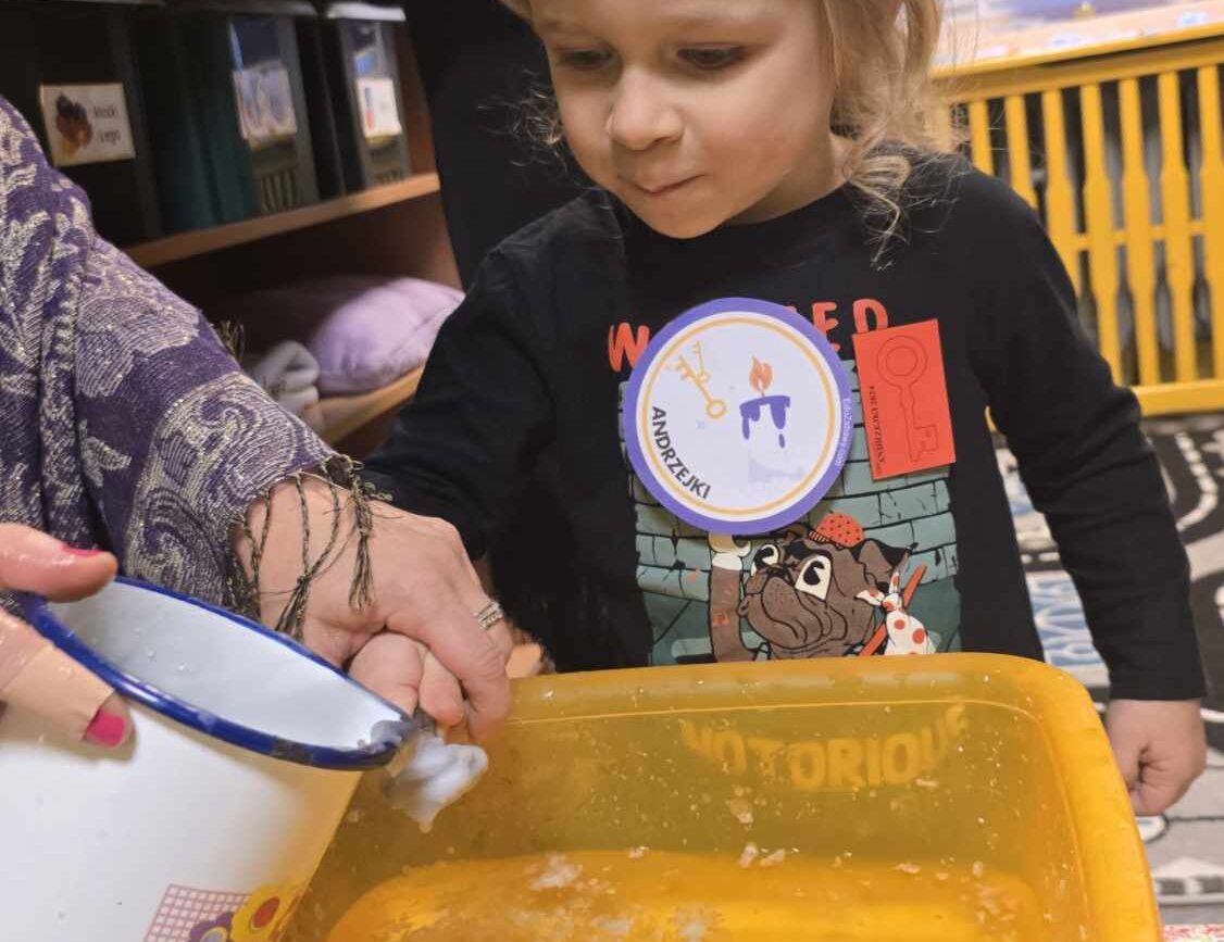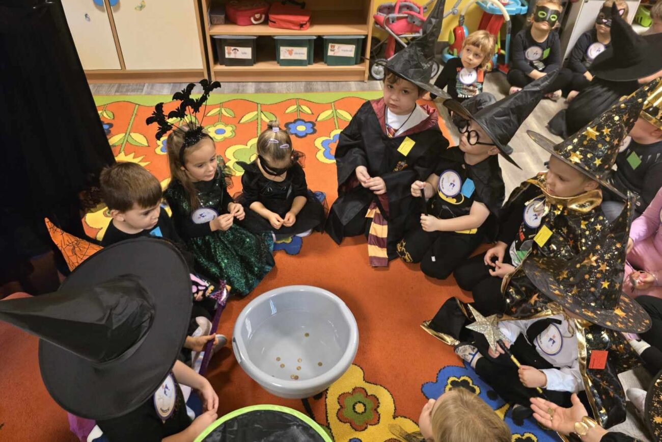 W naszym przedszkolu podtrzymujemy tradycje związane z Andrzejkami. Temu wydarzeniu towarzyszyły konkursy, zabawy i wróżby andrzejkowe. Wszystko to odbywało się w rytm tańców i śpiewów. Nie zabrakło również tradycyjnego ustawiania „bucików”, „losowania rekwizytów” i innych wróżb związanych z tym świętem. Dzieci napiły się magicznych eliksirów oraz zrobiły pająkowe tatuaże. Przedszkolaki z uśmiechem na twarzy chętnie brały udział w magicznym rytuale andrzejkowym.