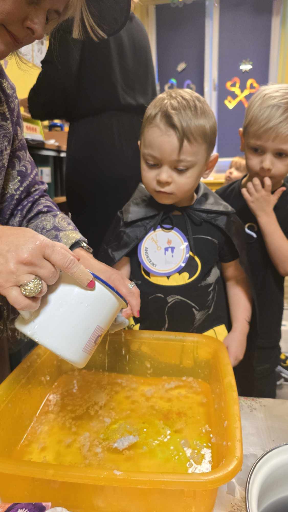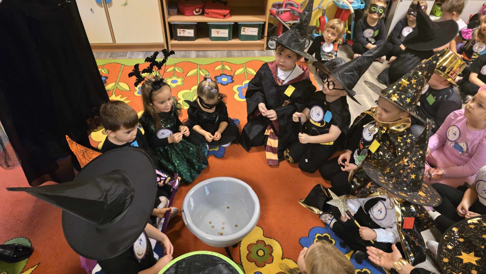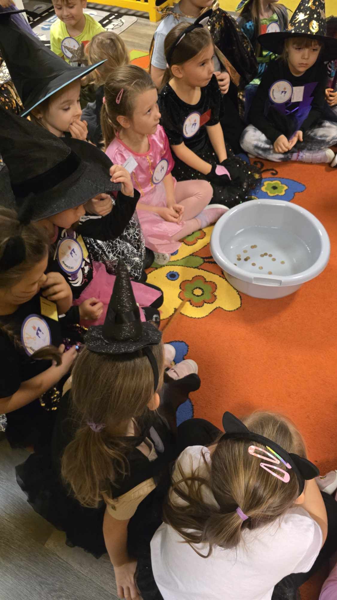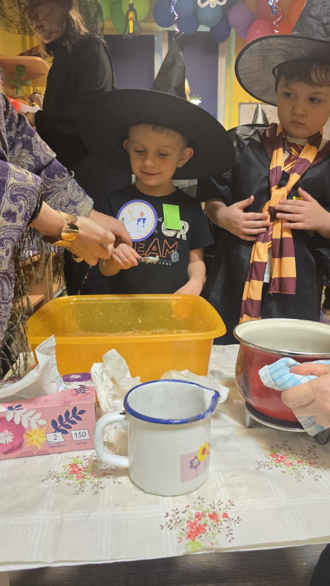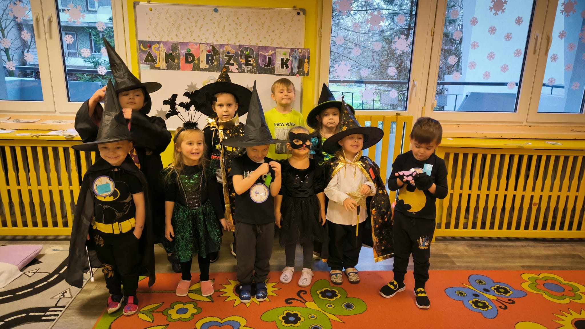 W naszym przedszkolu podtrzymujemy tradycje związane z Andrzejkami. Temu wydarzeniu towarzyszyły konkursy, zabawy i wróżby andrzejkowe. Wszystko to odbywało się w rytm tańców i śpiewów. Nie zabrakło również tradycyjnego ustawiania „bucików”, „losowania rekwizytów” i innych wróżb związanych z tym świętem. Dzieci napiły się magicznych eliksirów oraz zrobiły pająkowe tatuaże. Przedszkolaki z uśmiechem na twarzy chętnie brały udział w magicznym rytuale andrzejkowym.