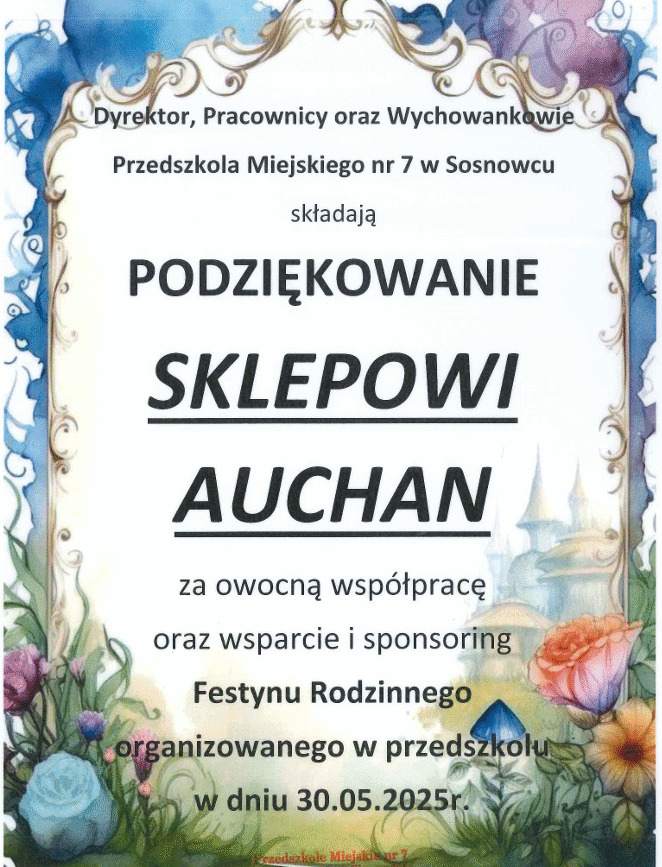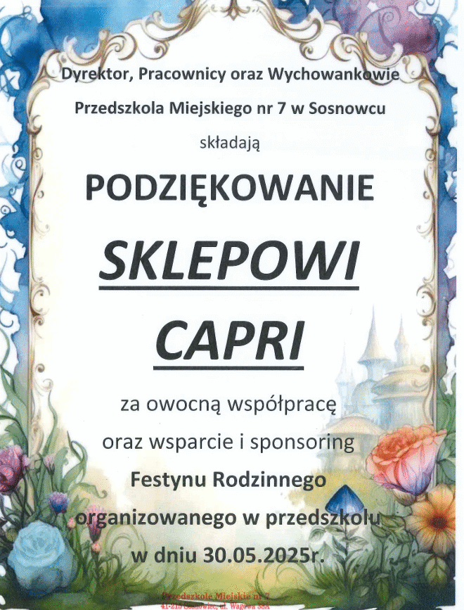 Dziękujemy za wsparcie firmom: Auchan, hurtownia Capri.