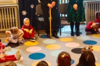 Chcąc jeszcze bardziej przybliżyć dzieciom trudną i odpowiedzialną pracę w kopalni, 5 grudnia zaprosiliśmy do przedszkola gości: górnika – Pana Alfreda oraz panią Martynę z Klubu Transformacji. Dzieci w krótkim występie artystycznym przywitały gościa. Pan, ubrany w mundur galowy, opowiedział dzieciom o maszynach górniczych, o pracy pod ziemią oraz o roboczym i galowym stroju górnika. Poznaliśmy także rodzaje węgla i sposób ich wydobycia. Serdecznie dziękujemy gościom za wizytę i zapraszamy do nas za rok!