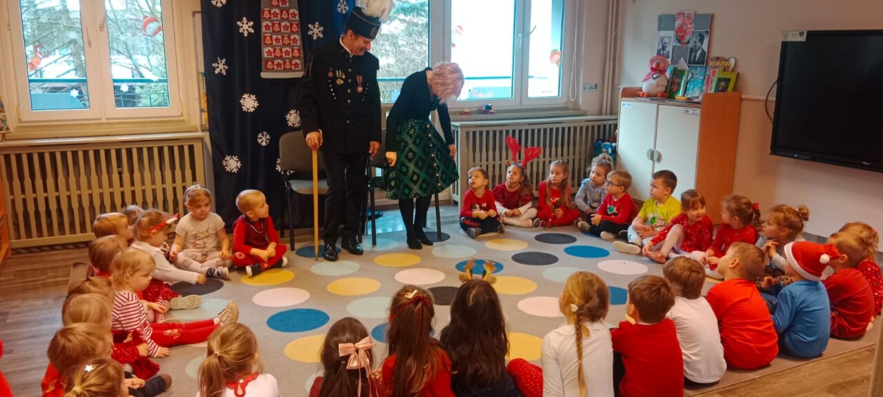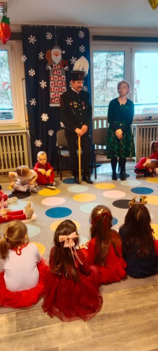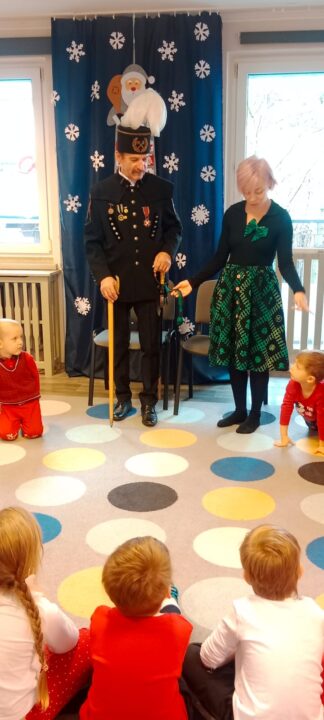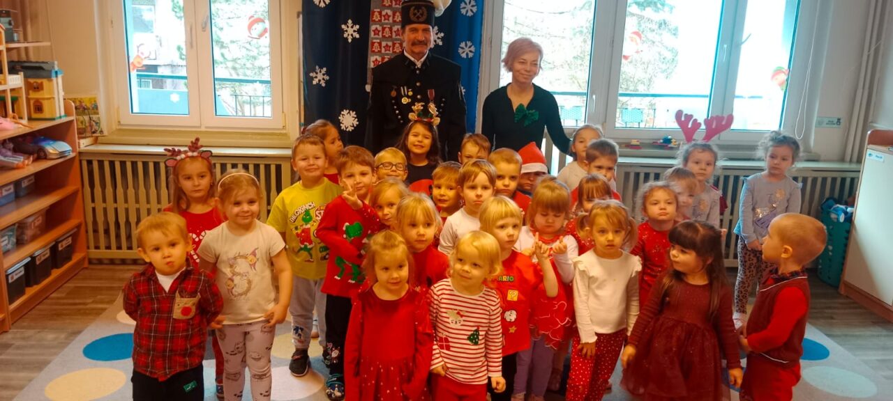 Chcąc jeszcze bardziej przybliżyć dzieciom trudną i odpowiedzialną pracę w kopalni, 5 grudnia zaprosiliśmy do przedszkola gości: górnika – Pana Alfreda oraz panią Martynę z Klubu Transformacji. Dzieci w krótkim występie artystycznym przywitały gościa. Pan, ubrany w mundur galowy, opowiedział dzieciom o maszynach górniczych, o pracy pod ziemią oraz o roboczym i galowym stroju górnika. Poznaliśmy także rodzaje węgla i sposób ich wydobycia. Serdecznie dziękujemy gościom za wizytę i zapraszamy do nas za rok!