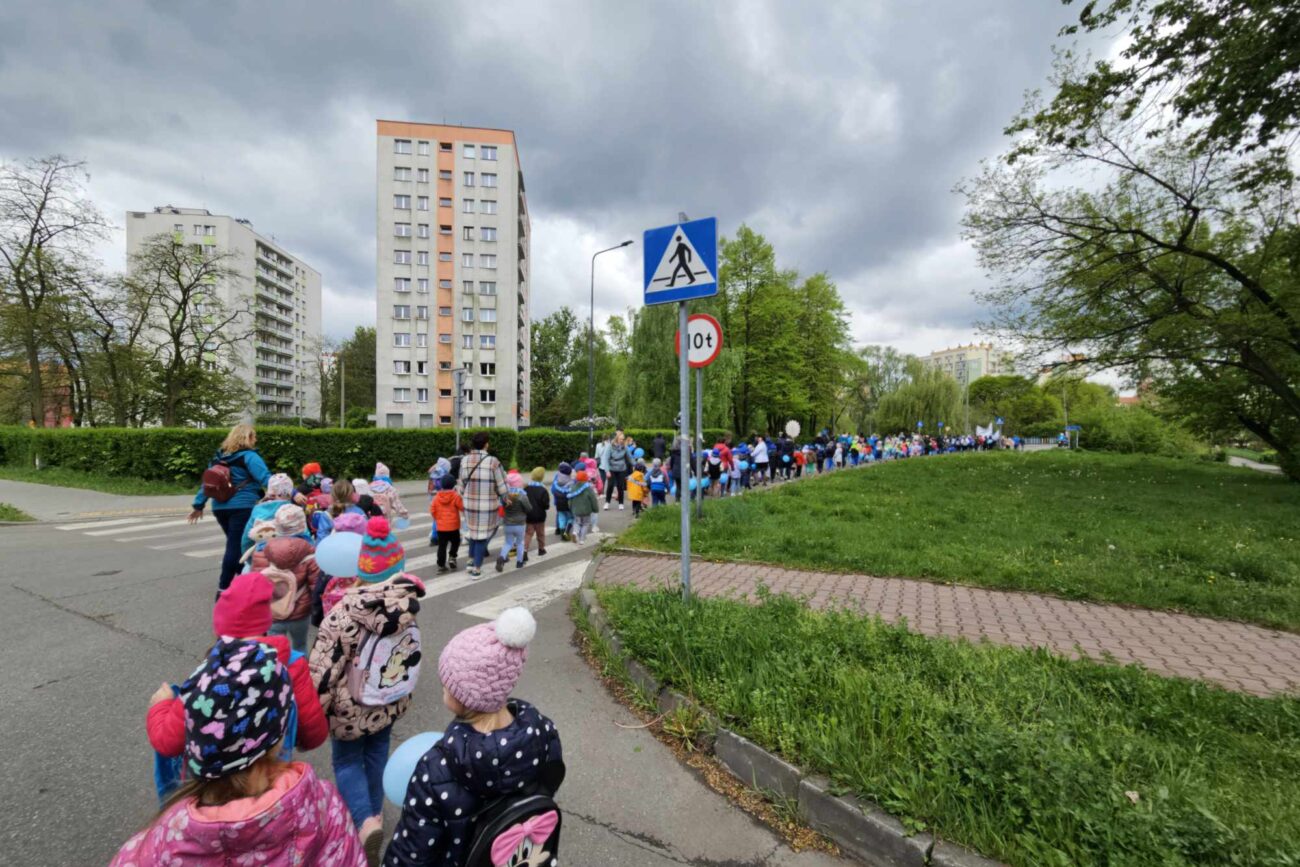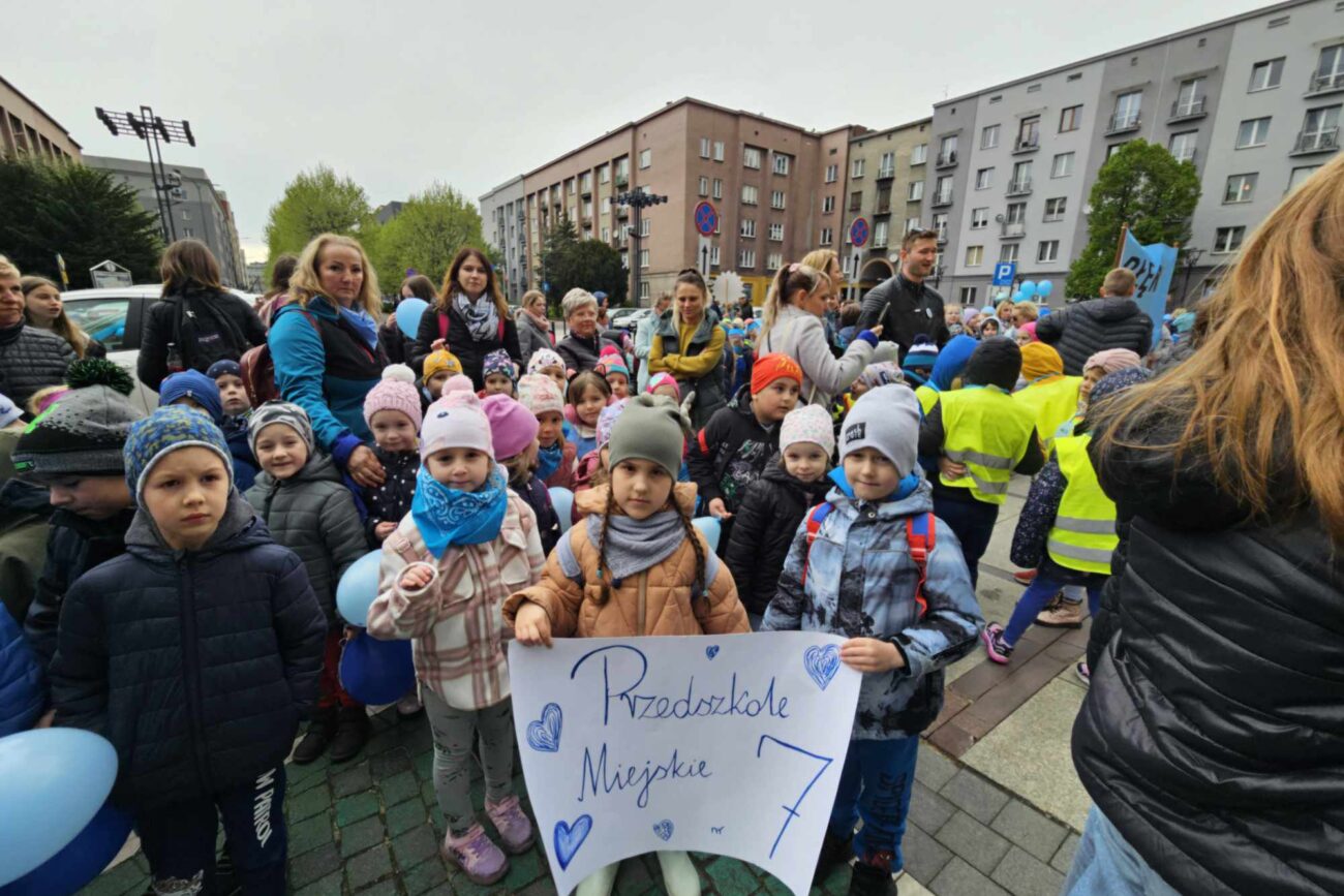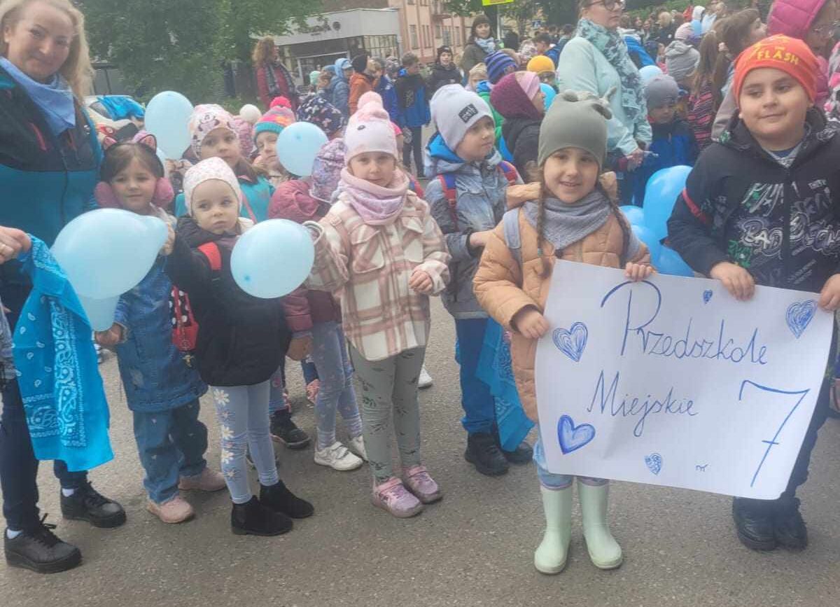 16 kwietnia 2024r. odbył się Błękitny Marsz pod Honorowym Patronatem Prezydenta Miasta Sosnowca. Kilkaset uczniów, nauczycieli, rodziców sosnowieckich szkół podstawowych, ponadpodstawowych, specjalnych, przedszkoli oraz mieszkańców Sosnowca maszerowało razem, aby pokazać solidarność z osobami w spektrum autyzmu. Nasze przedszkole reprezentowała najstarsza grupa „Biedronki”. Gościem honorowym tegorocznej edycji był Pan Paweł Burczyk, aktor, ambasador kampanii „Oswoić autyzm”, któremu towarzyszyła córka Wiktoria.