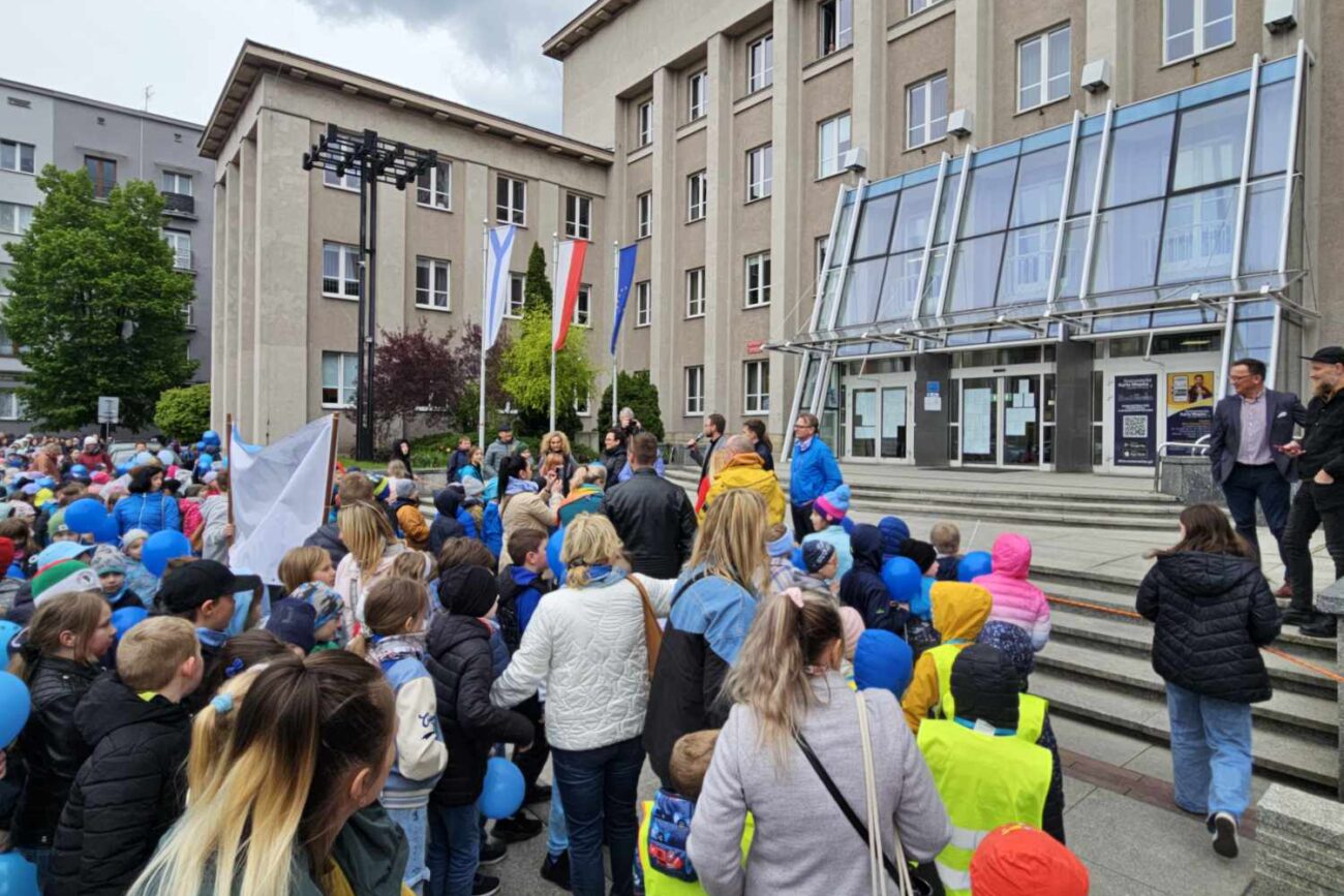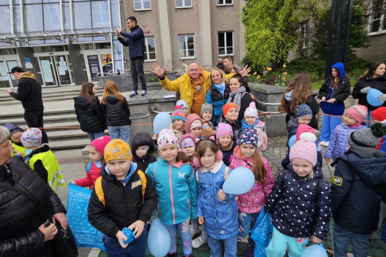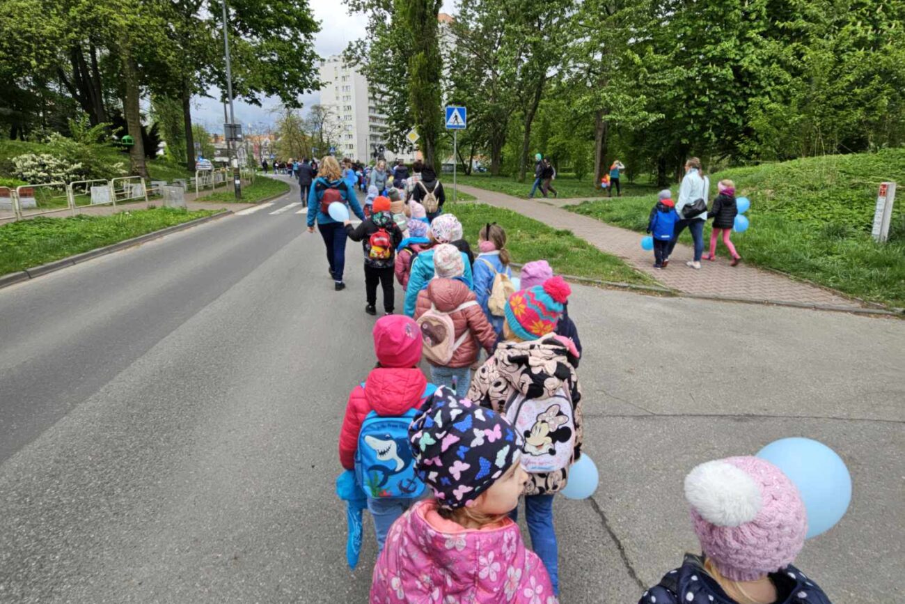 16 kwietnia 2024r. odbył się Błękitny Marsz pod Honorowym Patronatem Prezydenta Miasta Sosnowca. Kilkaset uczniów, nauczycieli, rodziców sosnowieckich szkół podstawowych, ponadpodstawowych, specjalnych, przedszkoli oraz mieszkańców Sosnowca maszerowało razem, aby pokazać solidarność z osobami w spektrum autyzmu. Nasze przedszkole reprezentowała najstarsza grupa „Biedronki”. Gościem honorowym tegorocznej edycji był Pan Paweł Burczyk, aktor, ambasador kampanii „Oswoić autyzm”, któremu towarzyszyła córka Wiktoria.
