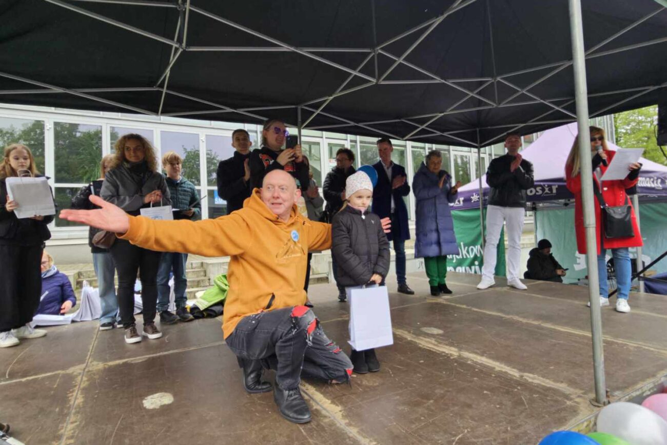 W Parku Sieleckim na scenie powitała wszystkich Pani Dyrektor Szkoły Podstawowej nr 6 z Oddziałami Dwujęzycznymi mgr Iwona Szumilas-Kasińska, a gość honorowy Pan Paweł Burczyk przybliżył uczestnikom temat autyzmu i podkreślił ważność tego przedsięwzięcia. Odbyło się również uroczyste rozstrzygnięcie Miejskiego Konkursu Plastycznego: „Jesteśmy z wami – Niebieskimi Motylami” w którym Emilia z gr. Biedronek otrzymała wyróżnienie.