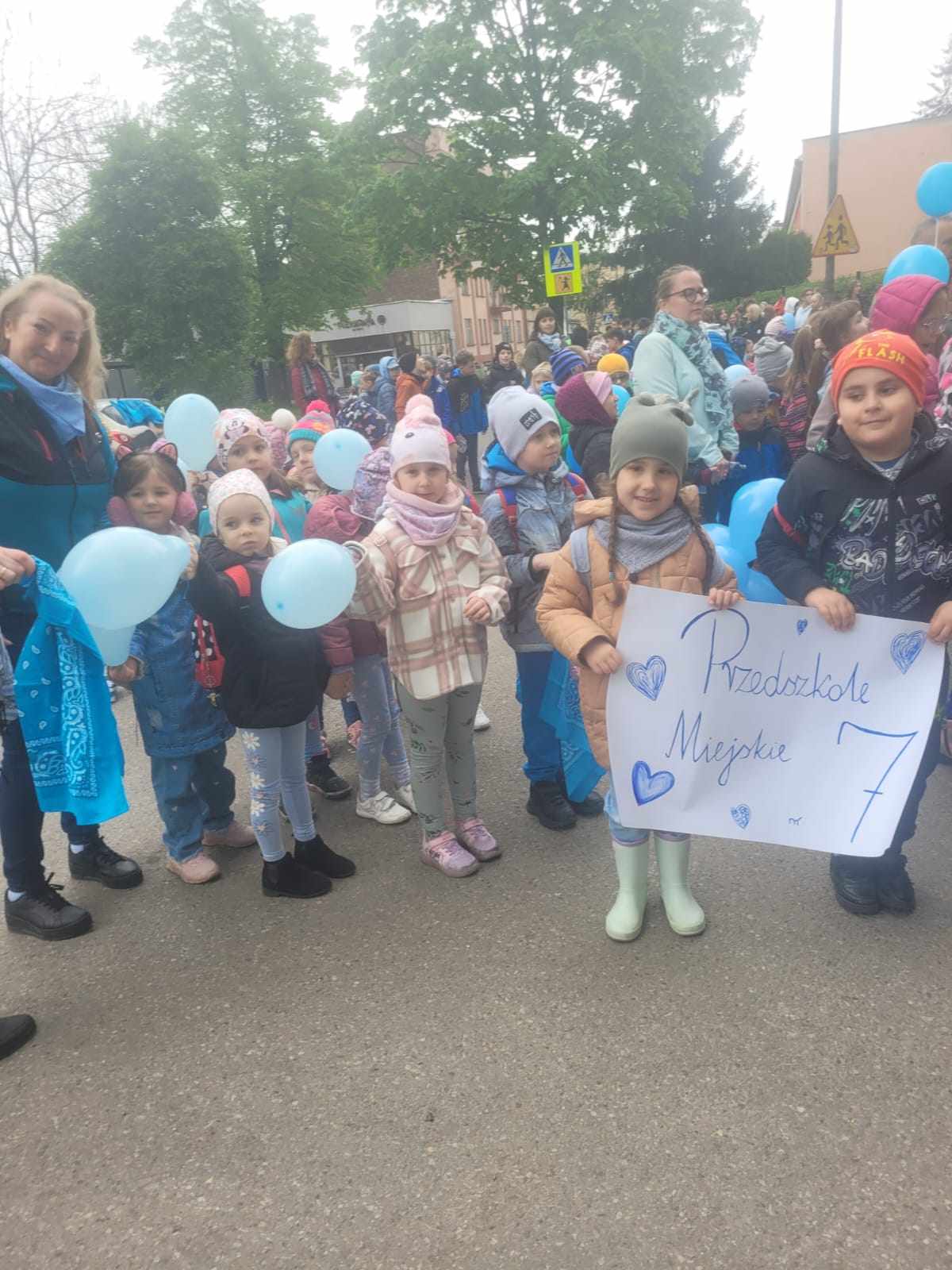 16 kwietnia 2024r. odbył się Błękitny Marsz pod Honorowym Patronatem Prezydenta Miasta Sosnowca. Kilkaset uczniów, nauczycieli, rodziców sosnowieckich szkół podstawowych, ponadpodstawowych, specjalnych, przedszkoli oraz mieszkańców Sosnowca maszerowało razem, aby pokazać solidarność z osobami w spektrum autyzmu. Nasze przedszkole reprezentowała najstarsza grupa „Biedronki”. Gościem honorowym tegorocznej edycji był Pan Paweł Burczyk, aktor, ambasador kampanii „Oswoić autyzm”, któremu towarzyszyła córka Wiktoria.