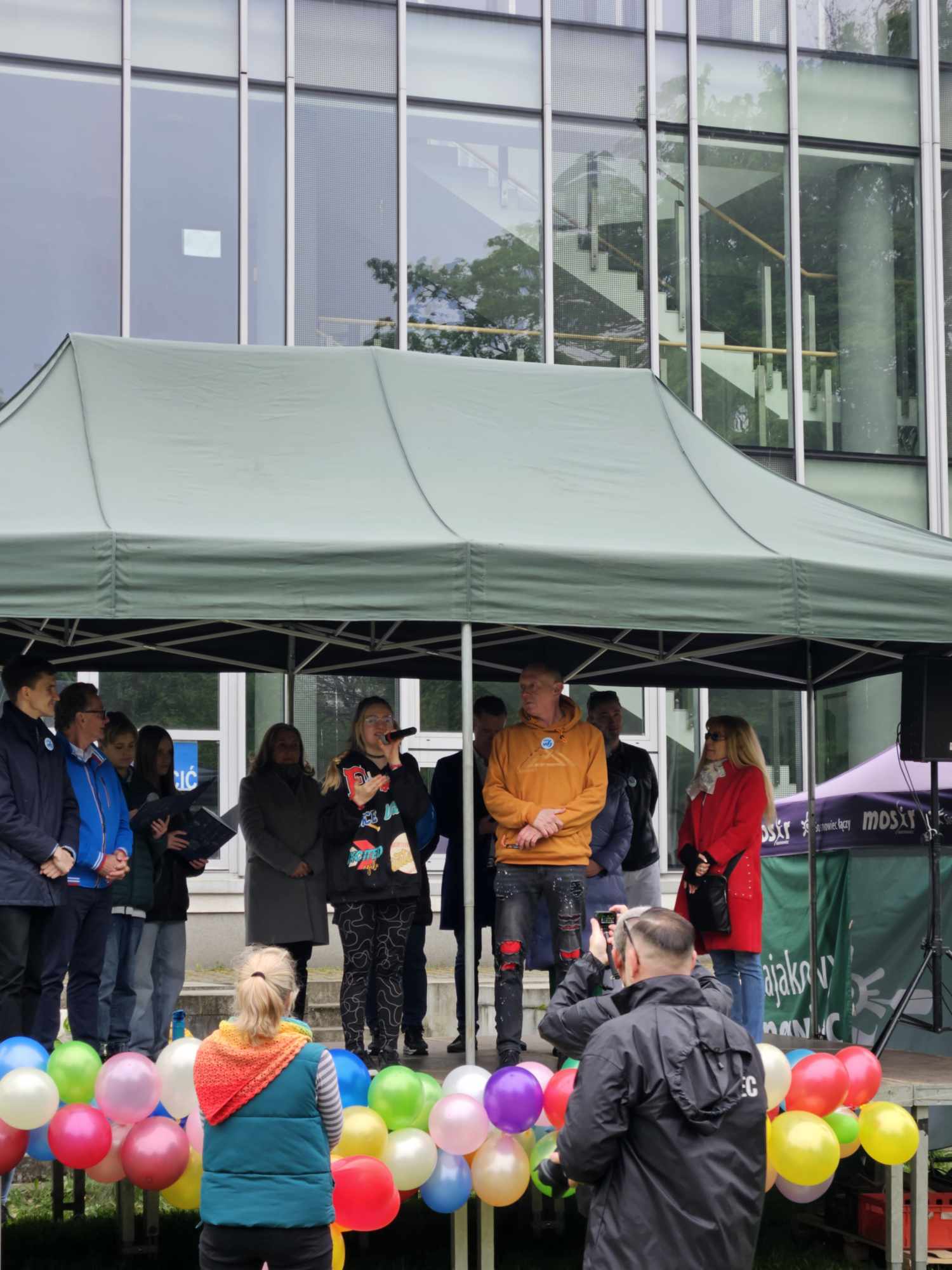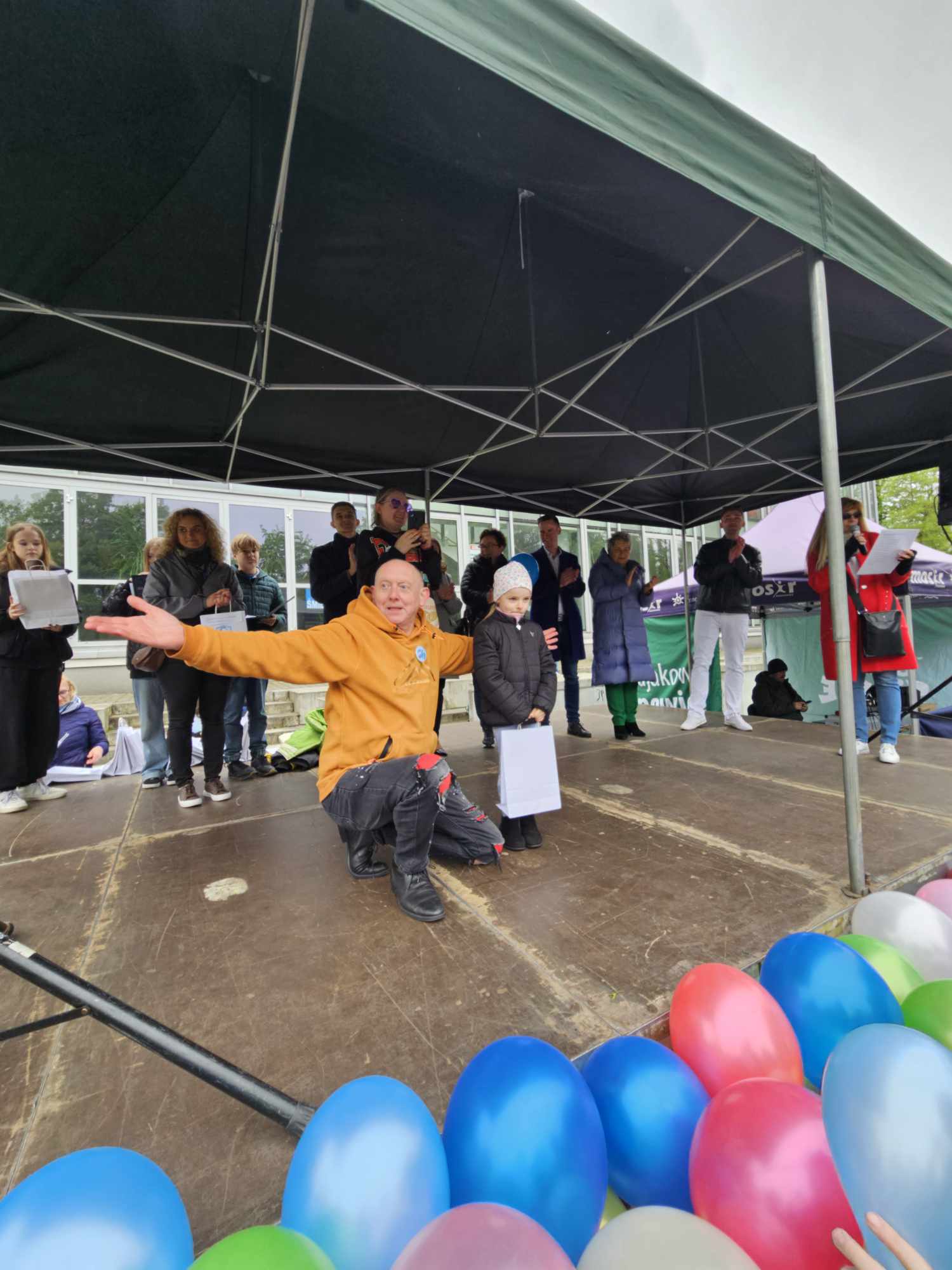 W Parku Sieleckim na scenie powitała wszystkich Pani Dyrektor Szkoły Podstawowej nr 6 z Oddziałami Dwujęzycznymi mgr Iwona Szumilas-Kasińska, a gość honorowy Pan Paweł Burczyk przybliżył uczestnikom temat autyzmu i podkreślił ważność tego przedsięwzięcia. Odbyło się również uroczyste rozstrzygnięcie Miejskiego Konkursu Plastycznego: „Jesteśmy z wami – Niebieskimi Motylami” w którym Emilia z gr. Biedronek otrzymała wyróżnienie.