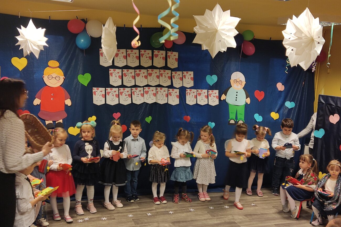 Grupa „Motylki” 8 lutego zaprezentowała dla swoich gości program artystyczny. Mimo zimowej aury za oknem występ małych artystów rozgrzał serca gości do czerwoności. Przedszkolaki z ogromnym przejęciem i radością śpiewały piosenki oraz wykonały tańce. Po występie wszystkie dzieci obdarowały gości laurkami. Następnie na Babcie i Dziadków czekał słodki poczęstunek.