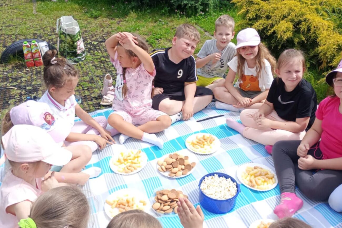 Grupa Biedronek uczestniczyła w zabawach ruchowych na placu zabaw. Biedronki brały udział w pikniku na świeżym powietrzu. Nie zabrakło fotobudki oraz tatuaży 😉