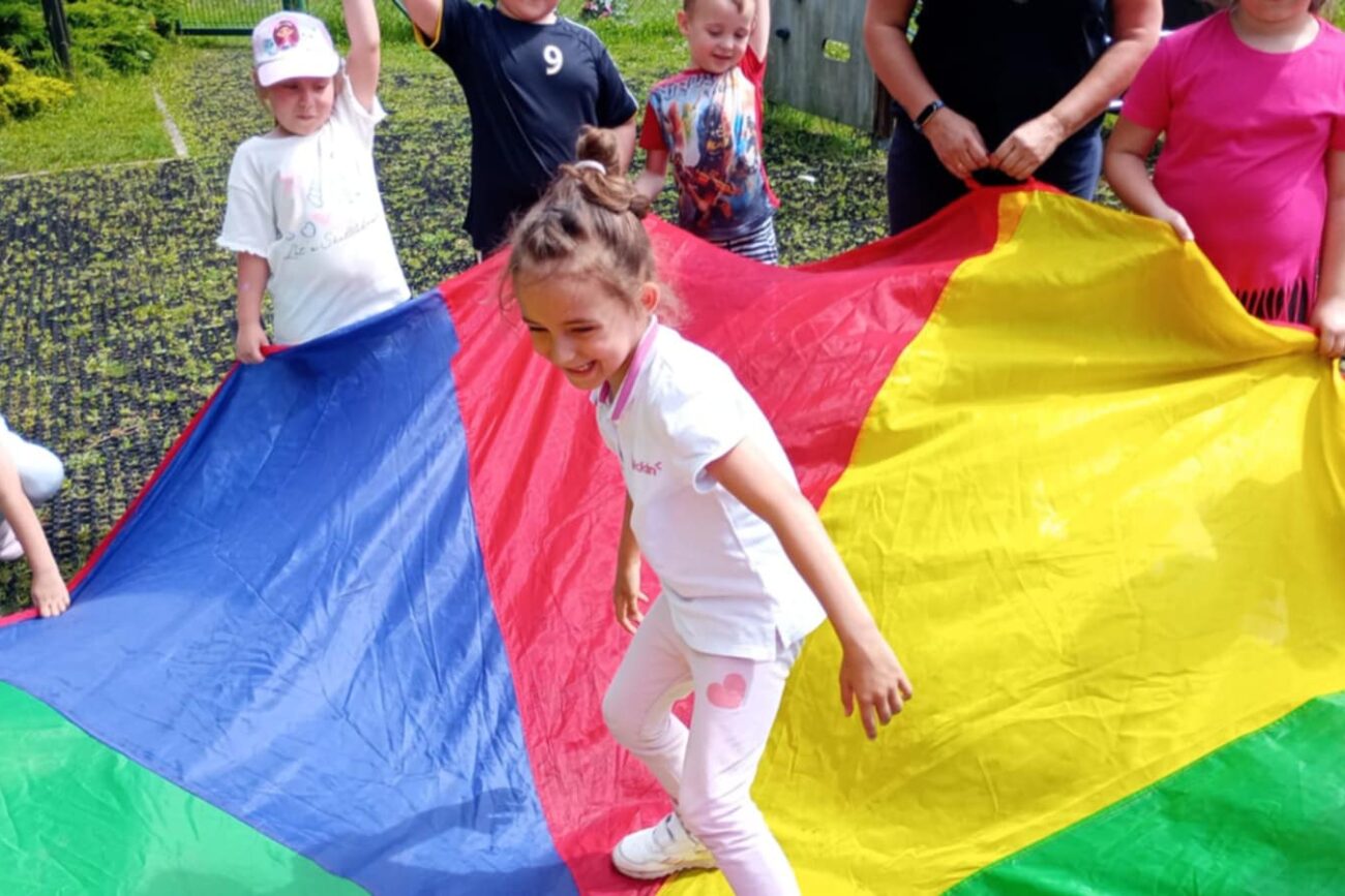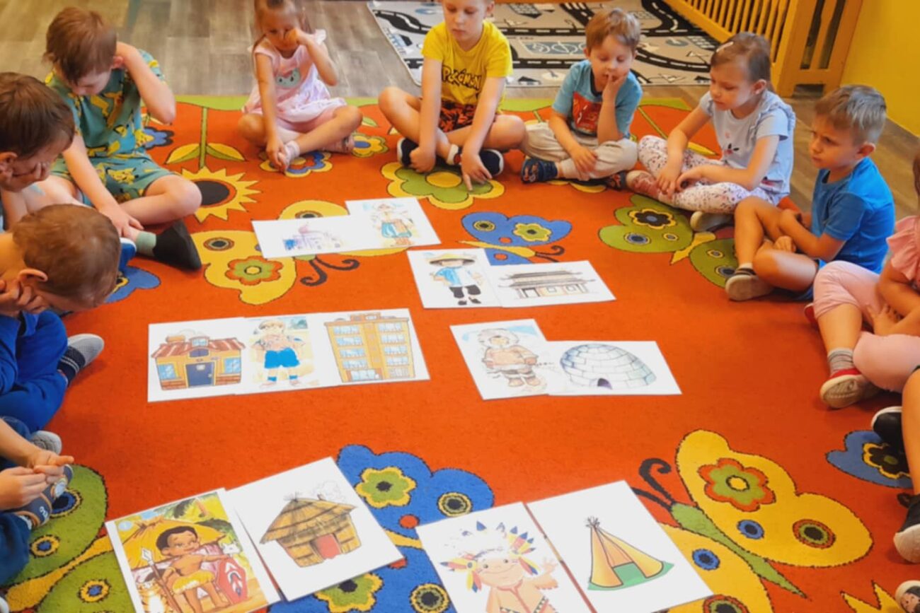 Grupa ,,Motylki obchodziła aktywnie Dzień Dziecka, uczestnicząc w zabawach sprawnościowo- zręcznościowych oraz muzyczno- ruchowych. Poznawała mieszkańców różnych narodowości, przyporządkowując do nich domy mieszkalne. Uczestniczyła w pamiątkowej sesji zdjęciowej z wykorzystaniem fotobudki.