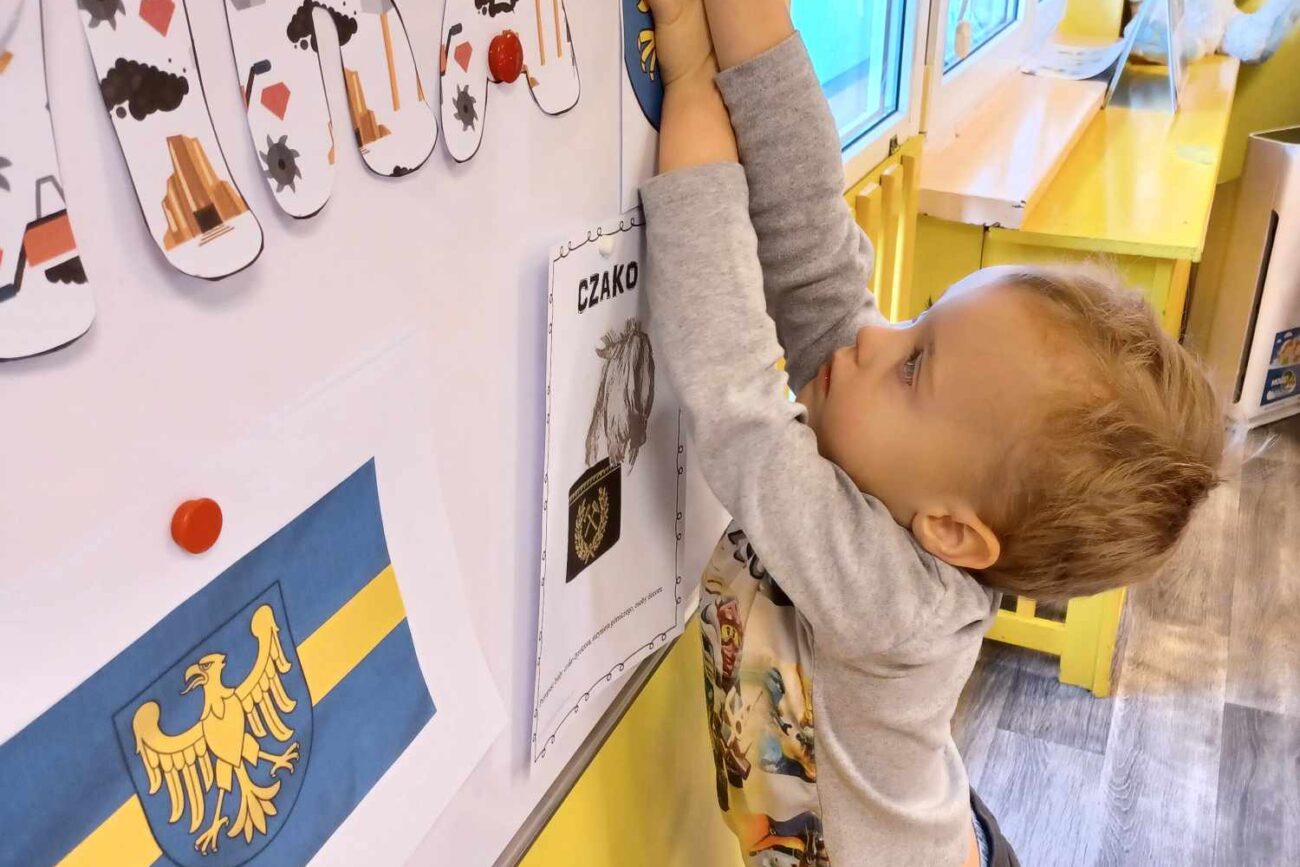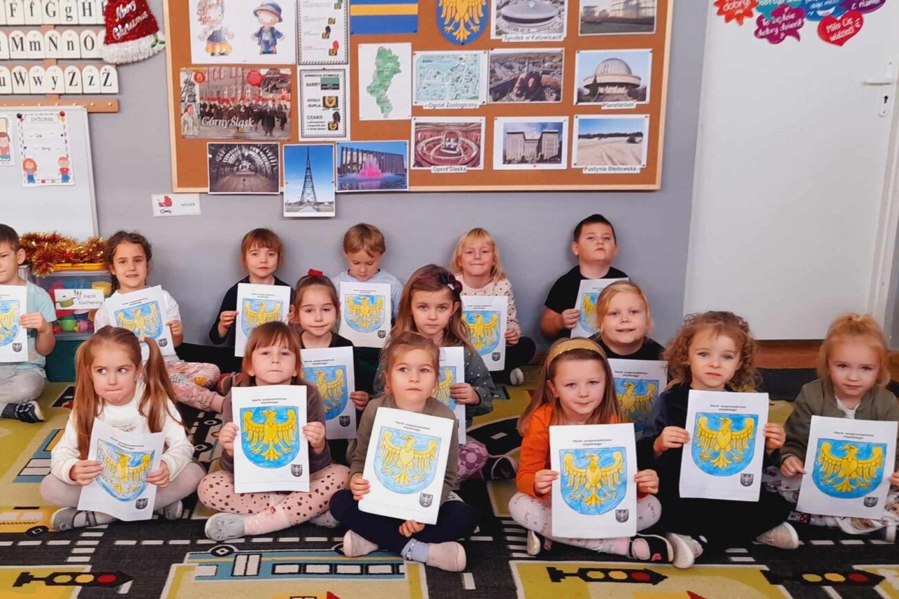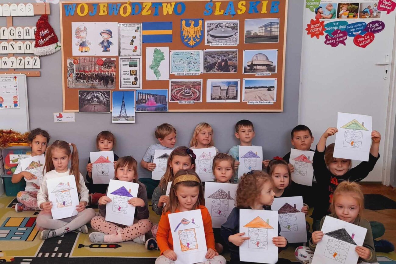 Dnia 4 grudnia nasze przedszkolaki poznały flagę, herb oraz położenie województwa śląskiego na mapie Polski. Zapoznane zostały z tradycjami regionalnymi, min.związanymi z obchodami ” Barbórki „, w których brały czynny udział. Słuchały piosenek ludowych w wykonaniu Zespołu Pieśni i Tańca:”Śląsk” oraz wykonywały śląski taniec ludowy:”Grozik”. Poznały także charakterystyczne obiekty kulturalne i zabytkowe woj.śląskiego. Wykonywały pracę plastyczną, tj. czapkę górniczą. Misie oraz Motylki wzieły udział w tradycyjnym śląskim budzeniu przy dźwiękach Sosnowieckiej Orkiestry Dętej,
