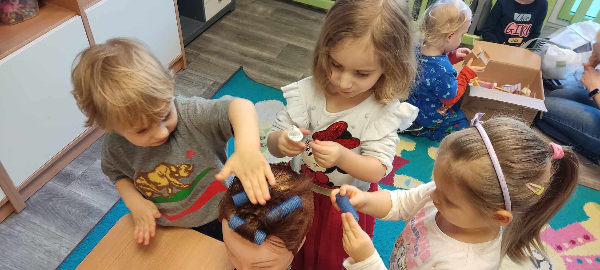 Świętowanie Dnia Kobiet „Misie” rozpoczęły od zamienienia sali w pokaz mody – dziewczynki przeszły po wybiegu prezentując swoje stroje oraz przygotowaną choreografię, a następnie zostały poddane ocenie chłopięcego jury. Później wybrały się do salonu spa, gdzie dzięki wspaniałej obsłudze, poczuły się zaopiekowane oraz zrelaksowane. Dzieci czesały główkę fryzjerską oraz budowały mieszkanie dla lalek. Malowały paznokcie klientek przy użyciu farb, a także wykonały bransoletki.