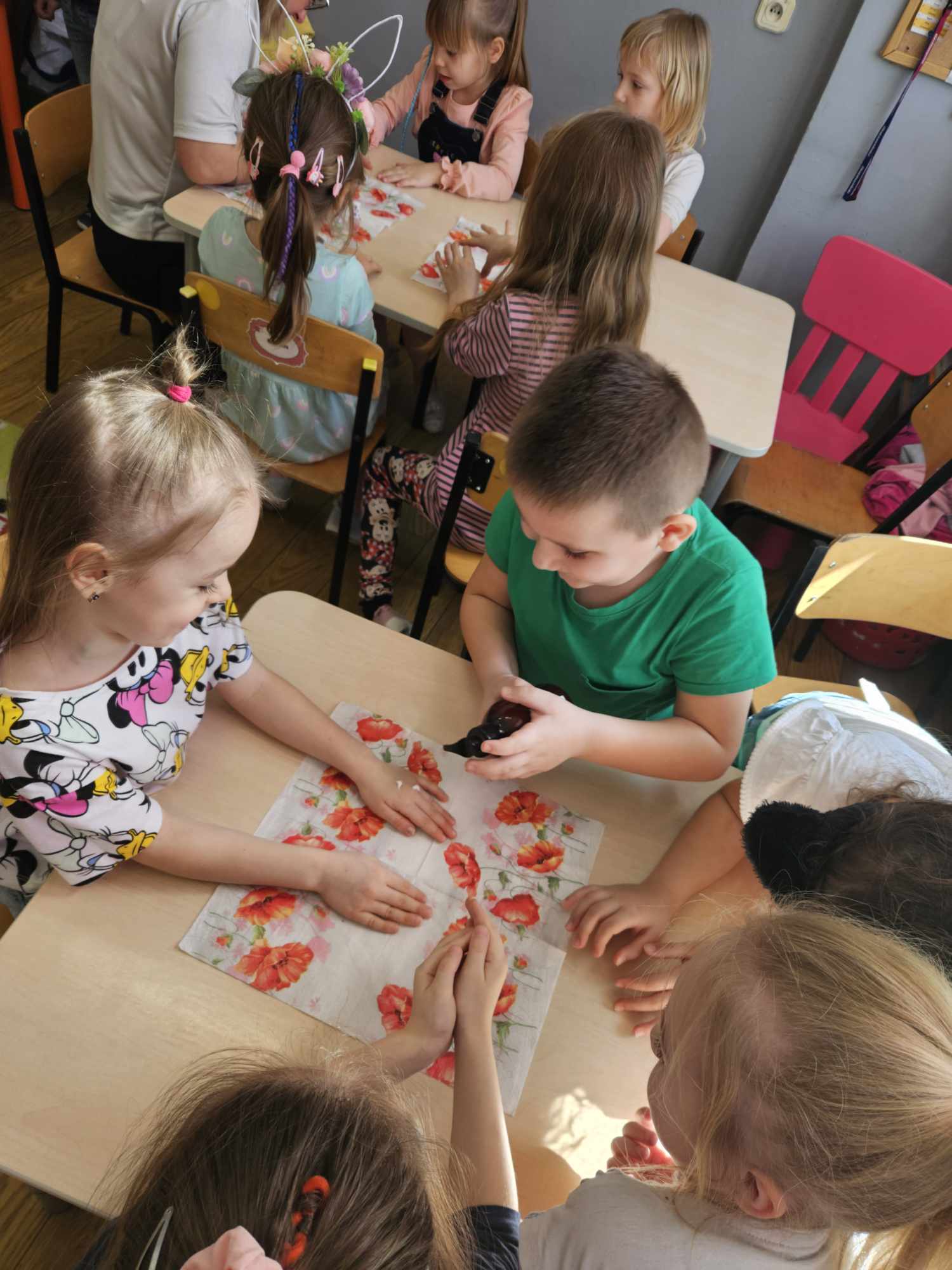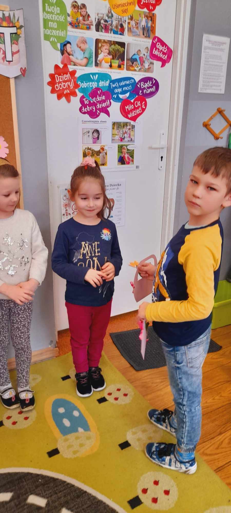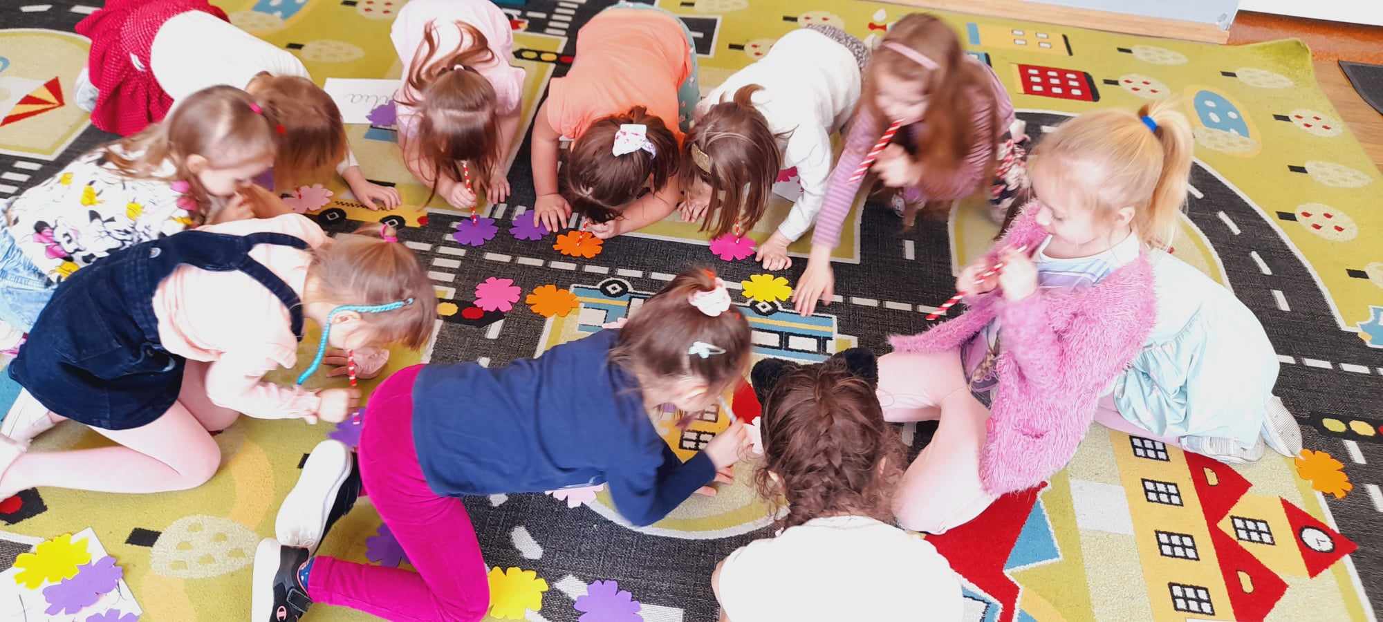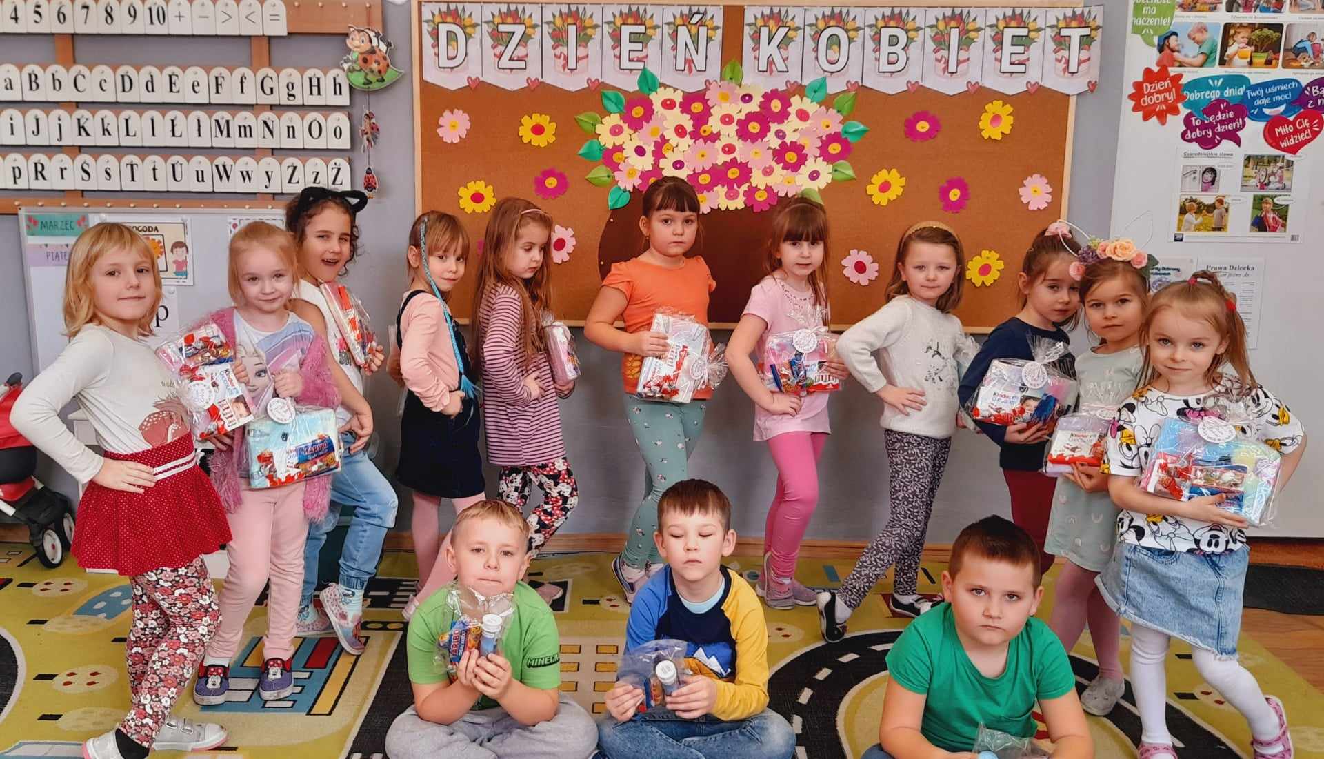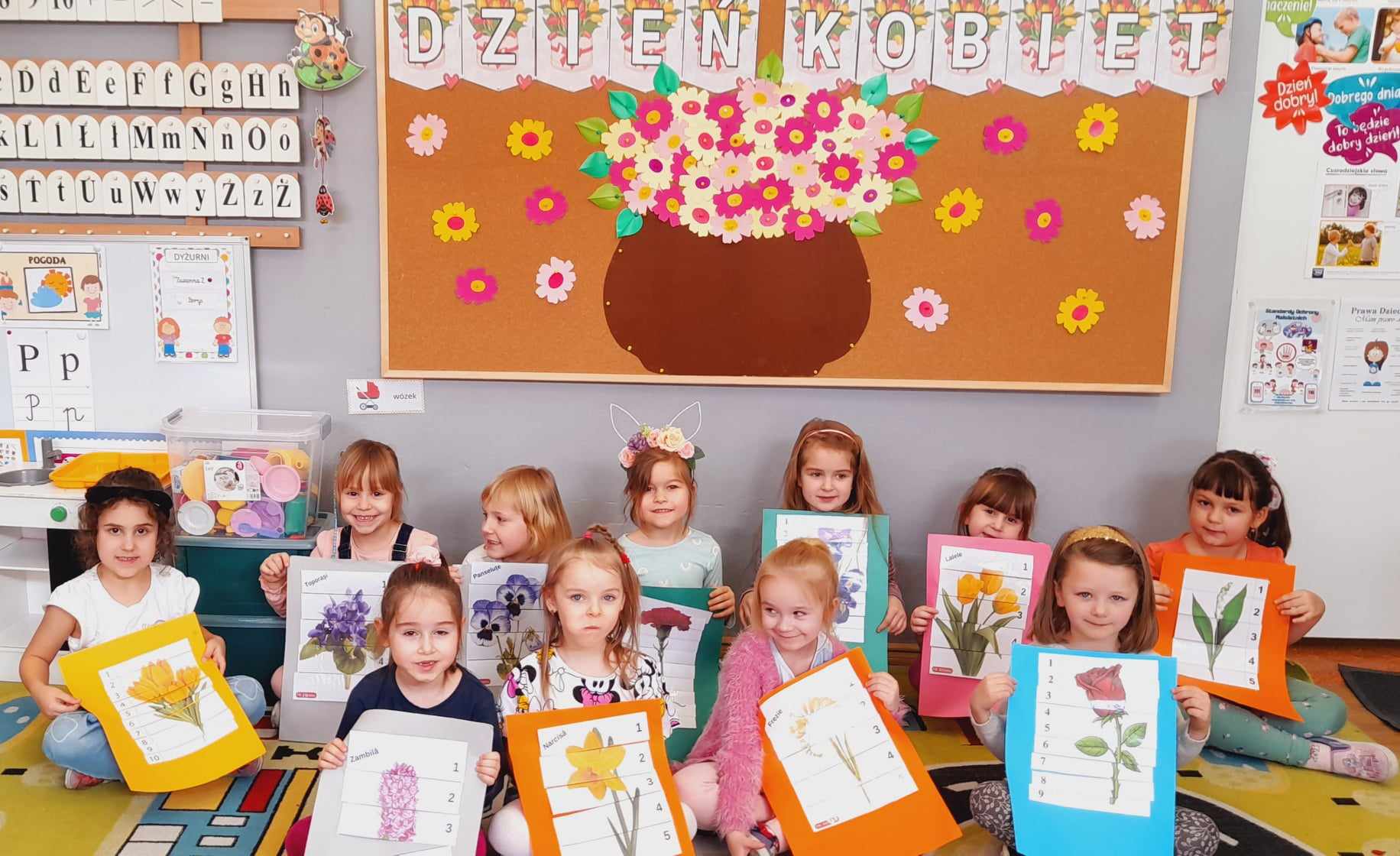 W grupie „Biedronki” uczciliśmy ten dzień min.poprzez wspólne zabawy w odgadywanie nazw zawodów wykonywanych przez kobiety, układanie puzzli kwiatowych, zbieranie kwiatów przy pomocy słomki i przeliczanie ich liczebności. Chłopcy przygotowali również SPA dla dziewczynek (makijaże, malowanie paznokci, masaże). W tym dniu chłopcy pamiętali o wszystkich Kobietach i małych i dużych wręczając laurki, piękne kwiaty ![]()