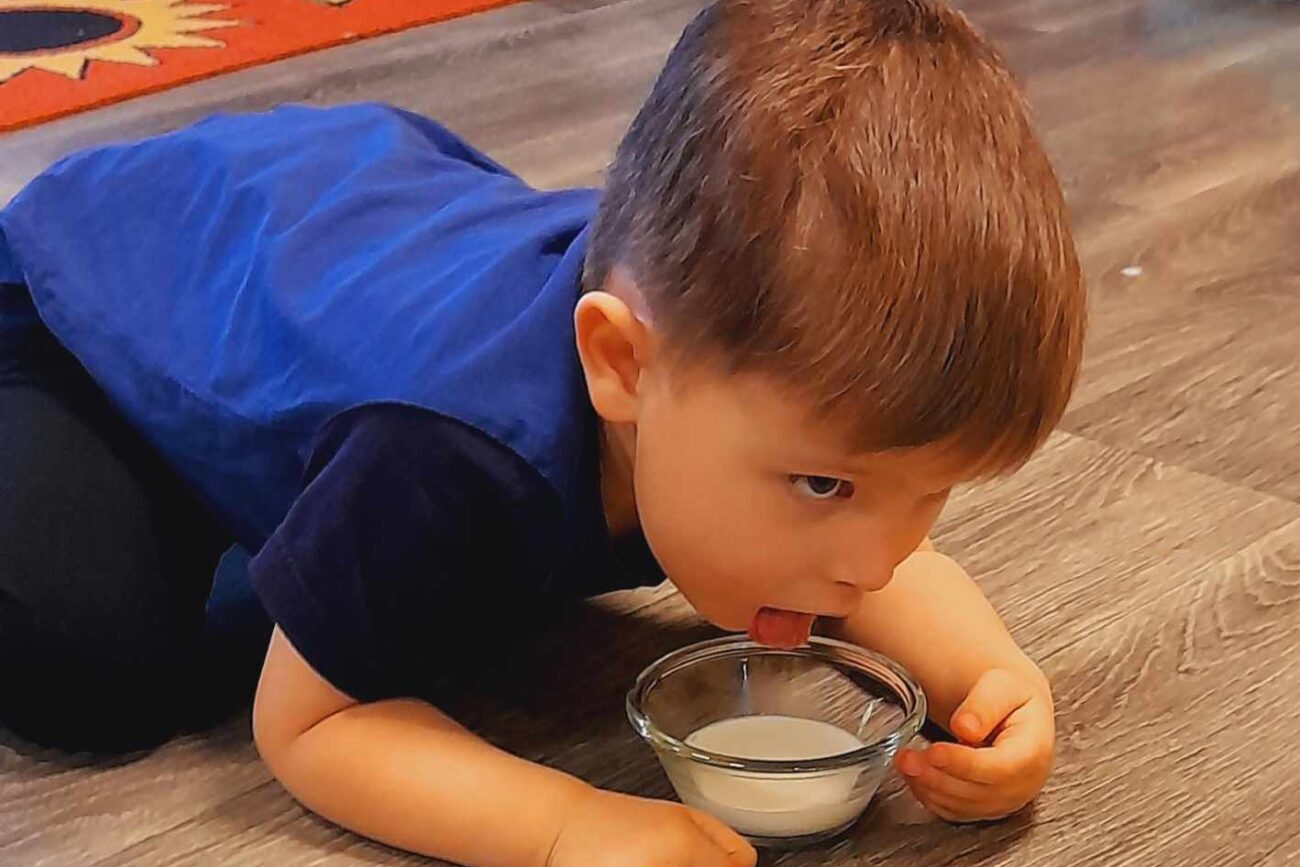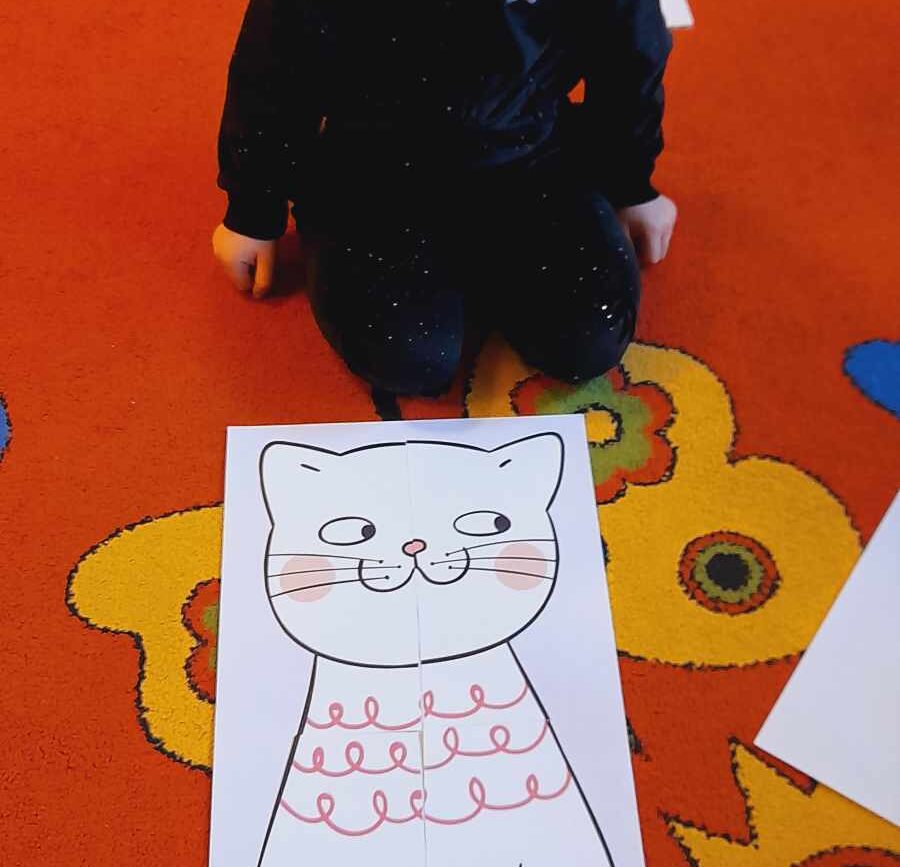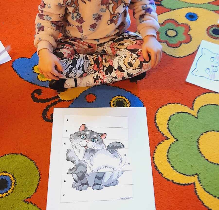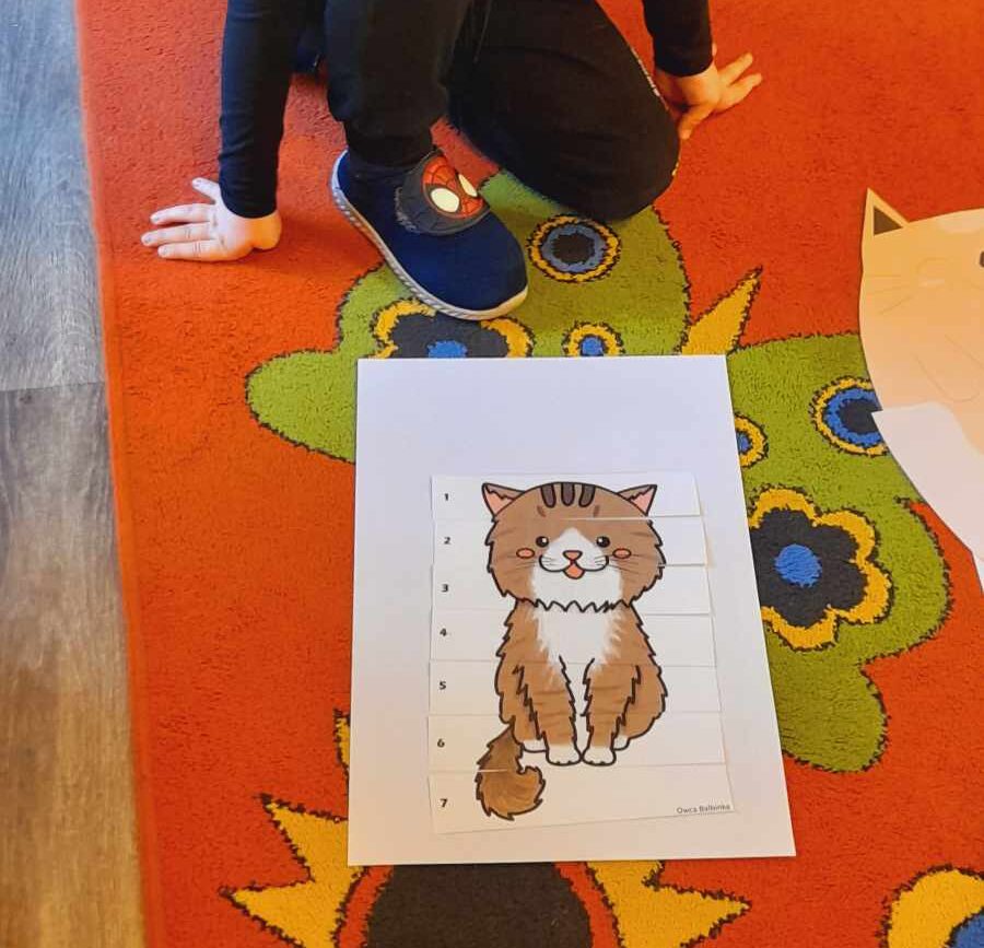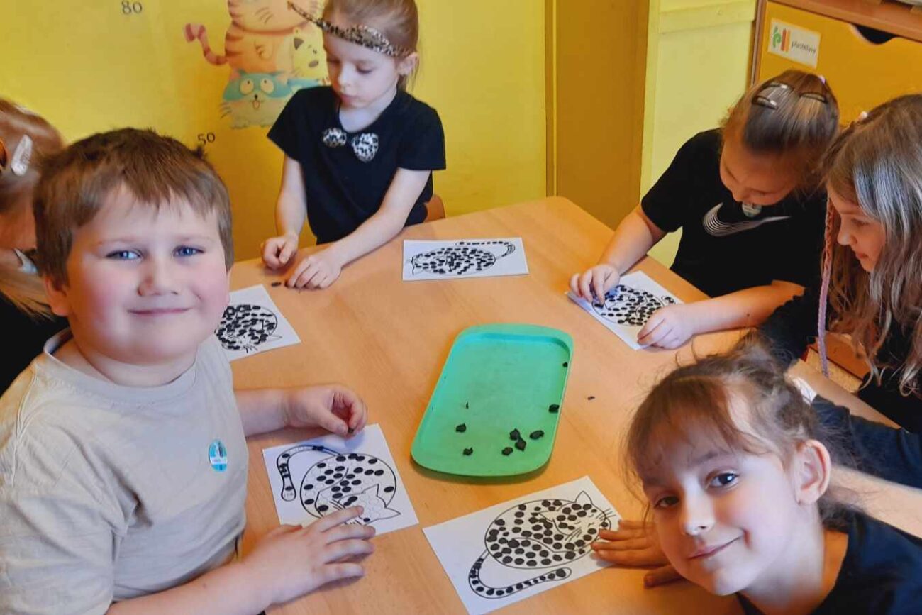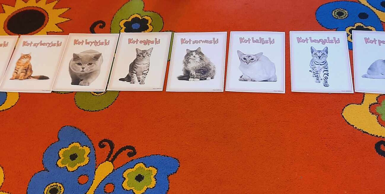 W tym dniu przedszkolaki upodobniły się do czworonożnych przyjaciół, których wygląd zdobiły: długie wąsy, opaski z uszami, kocie ogony. Dzieci rozmawiały o sposobie życia, pielęgnacji, odżywiania kotów domowych. Określały przeznaczenie kocich akcesoriów. Oglądały zdjęcia różnych ras kotów domowych i dzikich – zaznajamiając się z ich nazwami. Uczestniczyły w wesołych „kocich zabawach”, tj. kociej gimnastyce, kocich tańcach oraz konkurencjach: nawijanie wełny, picie mleka. Układały puzzle obrazkowe, rozwiązywały zagadki o kotach z bajek, poznały paluszkową zabawę oraz wykonały pracę plastyczną „Kot w kropki” .
