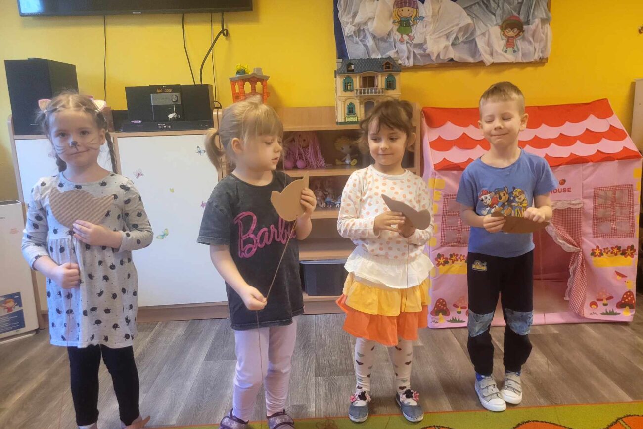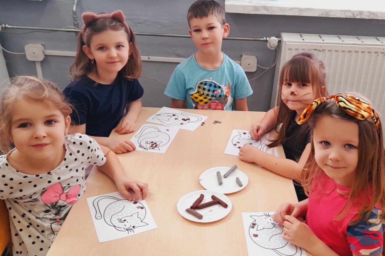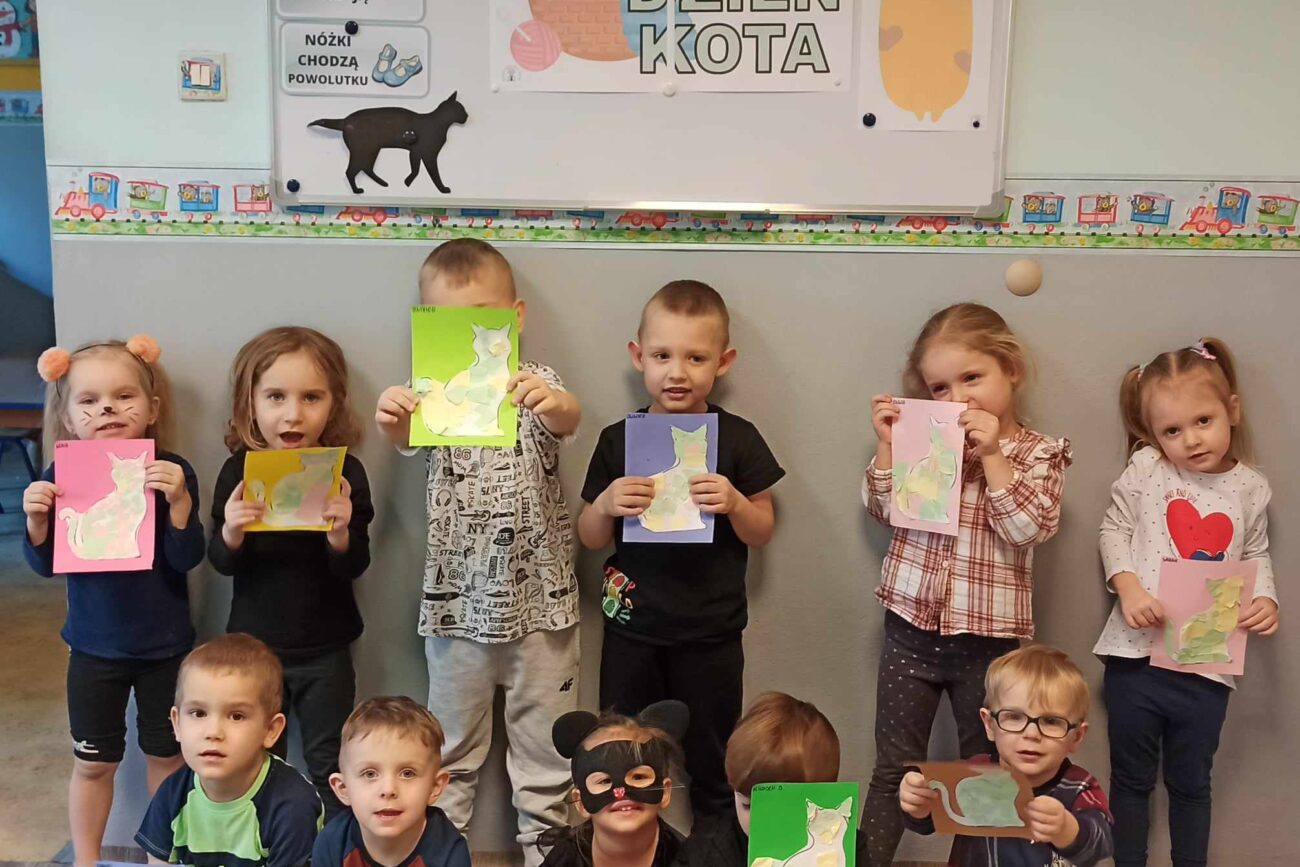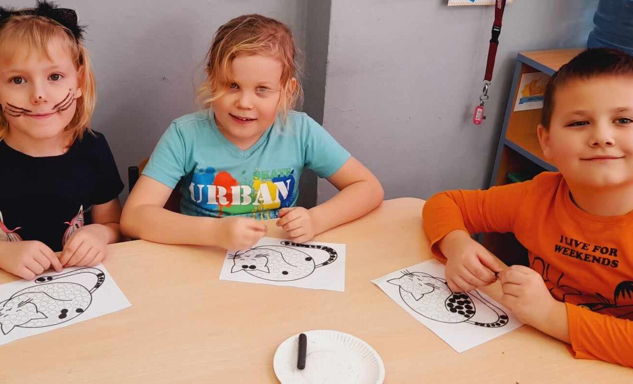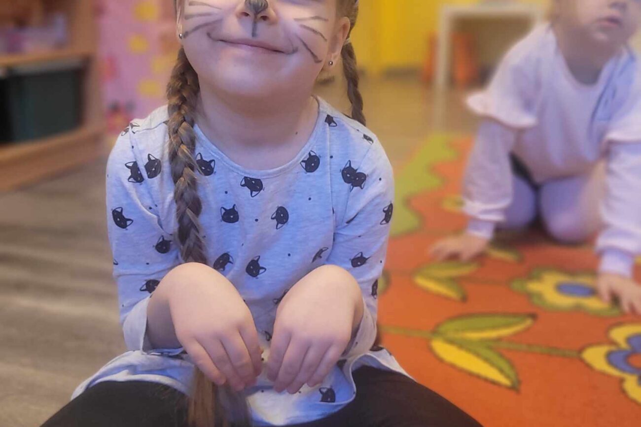 Dzieci upodobniły się do czworonożnych przyjaciół, poprzez wymalowane na swoich twarzach piękne noski, wąsy i typowe dla kotków uszka. Dzieci oglądały książki i obrazki o tych tajemniczych zwierzętach, zapoznały się z kocimi obyczajami oraz sposobem pielęgnacji i opieki jakiej wymagają. Były też wesołe „kocie zabawy”.