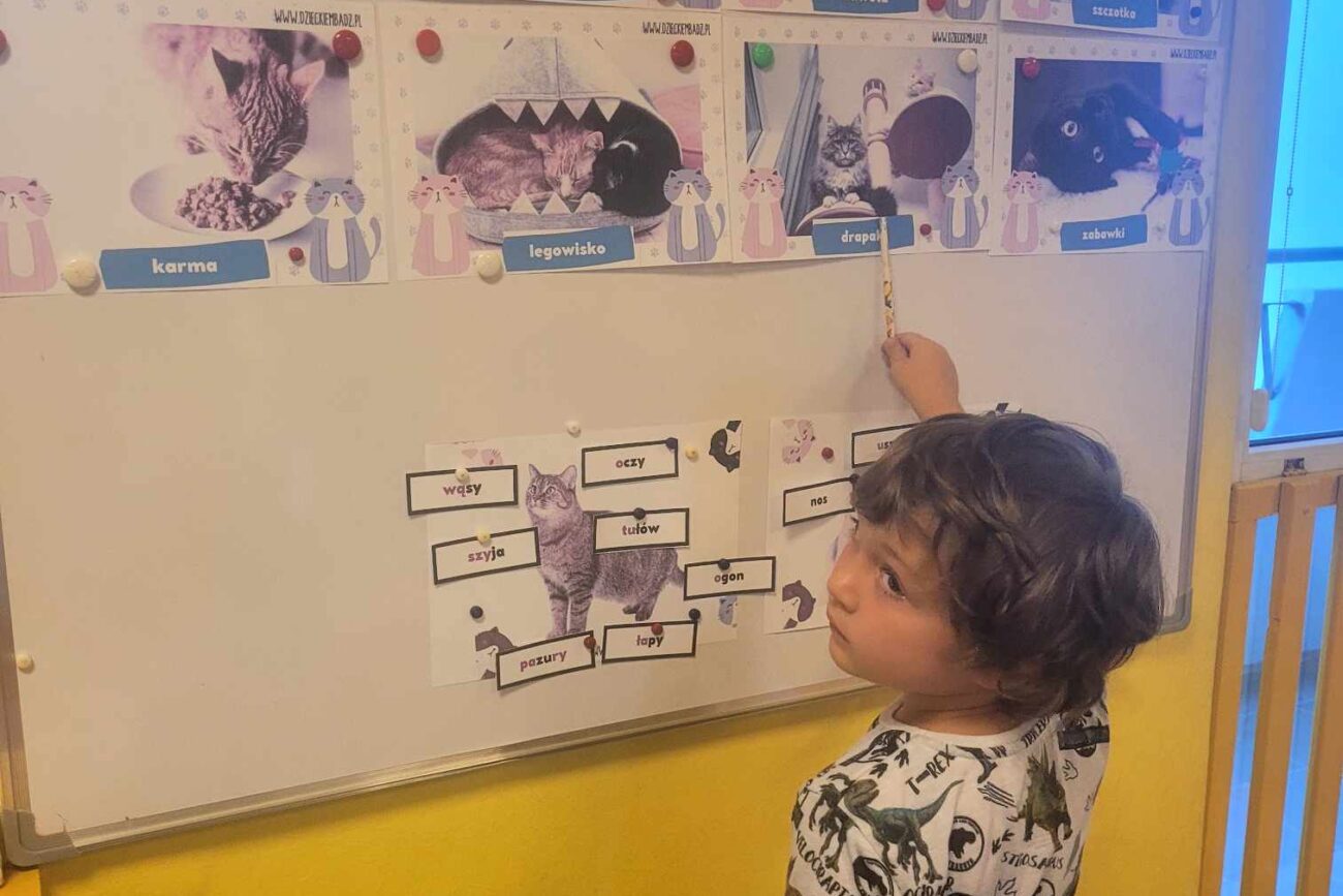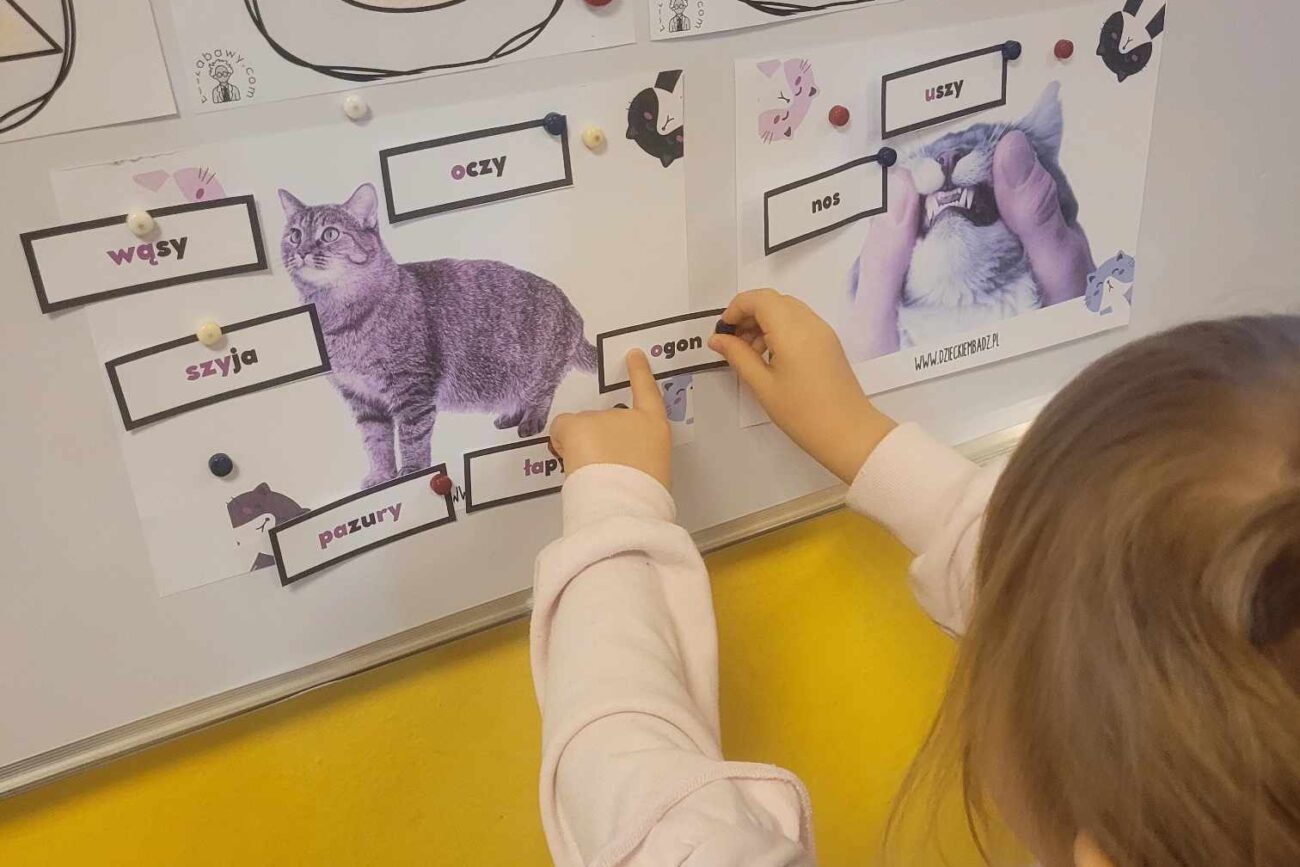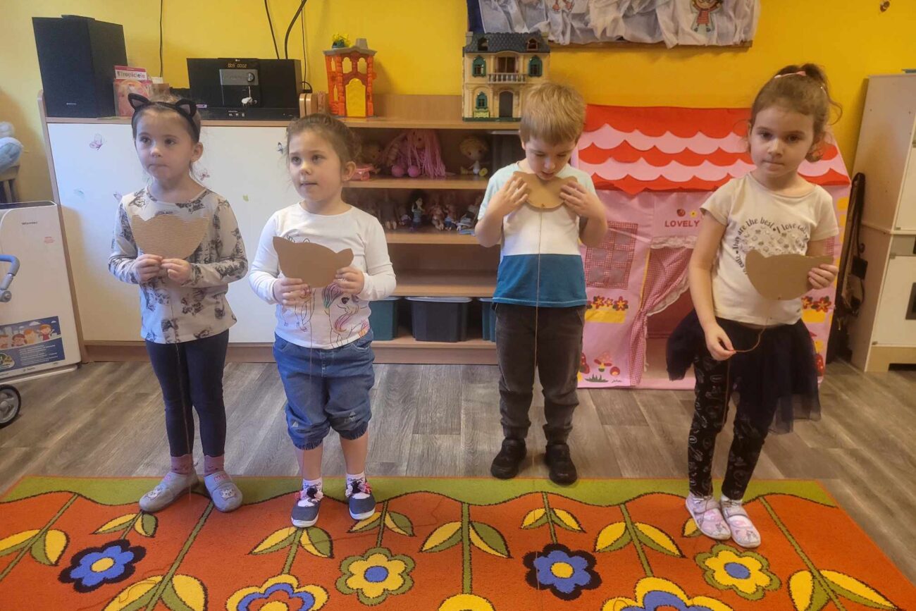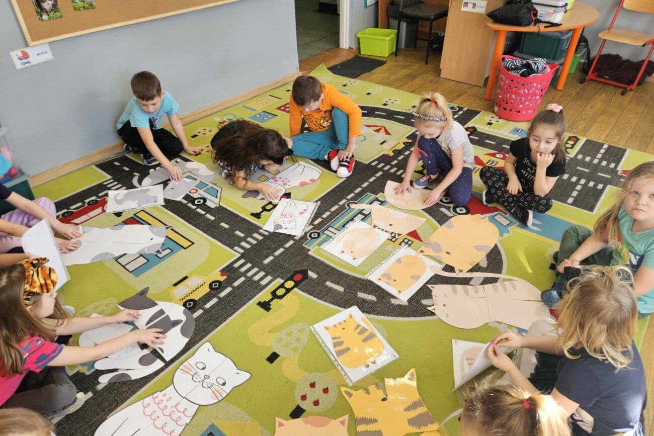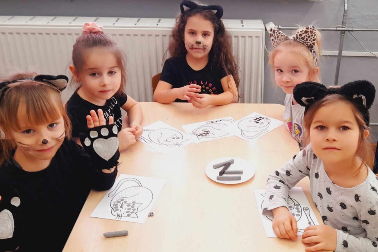 Dzieci upodobniły się do czworonożnych przyjaciół, poprzez wymalowane na swoich twarzach piękne noski, wąsy i typowe dla kotków uszka. Dzieci oglądały książki i obrazki o tych tajemniczych zwierzętach, zapoznały się z kocimi obyczajami oraz sposobem pielęgnacji i opieki jakiej wymagają. Były też wesołe „kocie zabawy”.