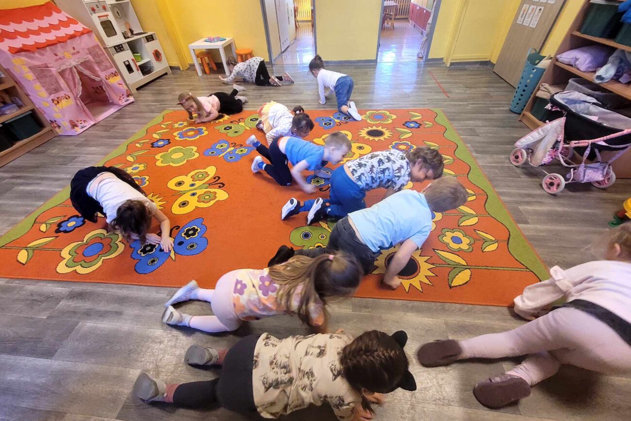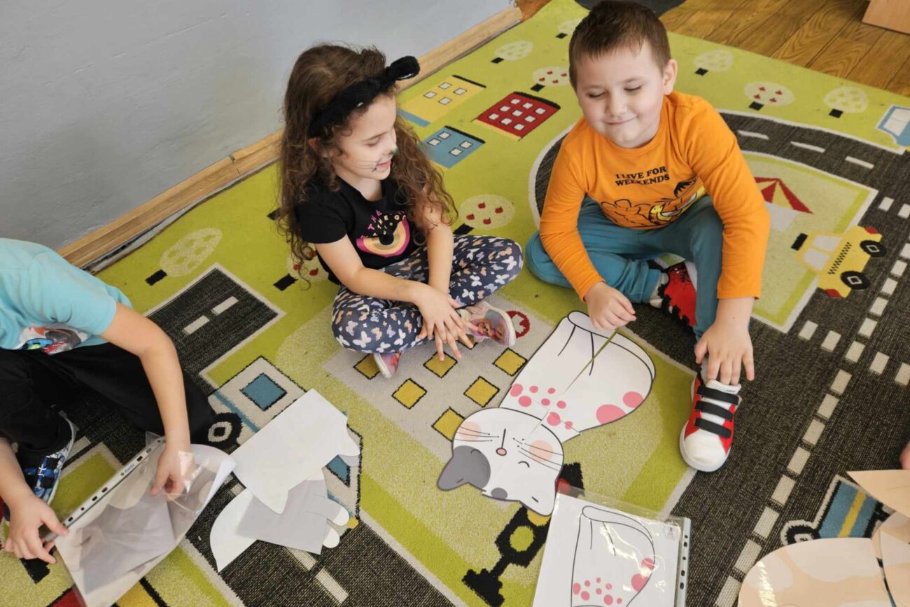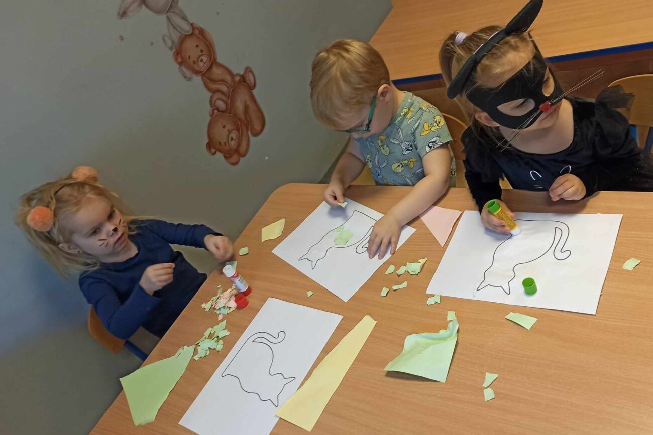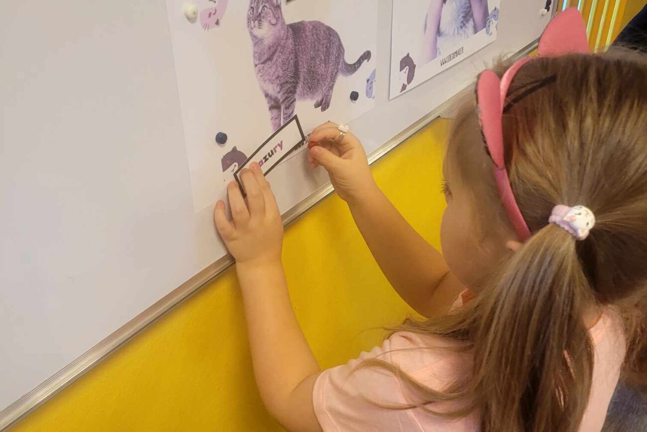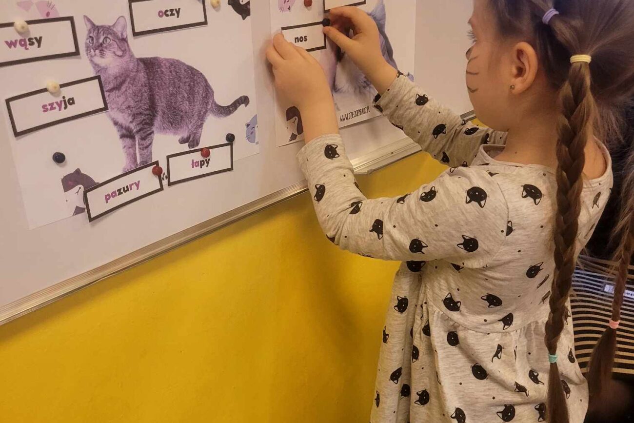 Dzieci upodobniły się do czworonożnych przyjaciół, poprzez wymalowane na swoich twarzach piękne noski, wąsy i typowe dla kotków uszka. Dzieci oglądały książki i obrazki o tych tajemniczych zwierzętach, zapoznały się z kocimi obyczajami oraz sposobem pielęgnacji i opieki jakiej wymagają. Były też wesołe „kocie zabawy”.