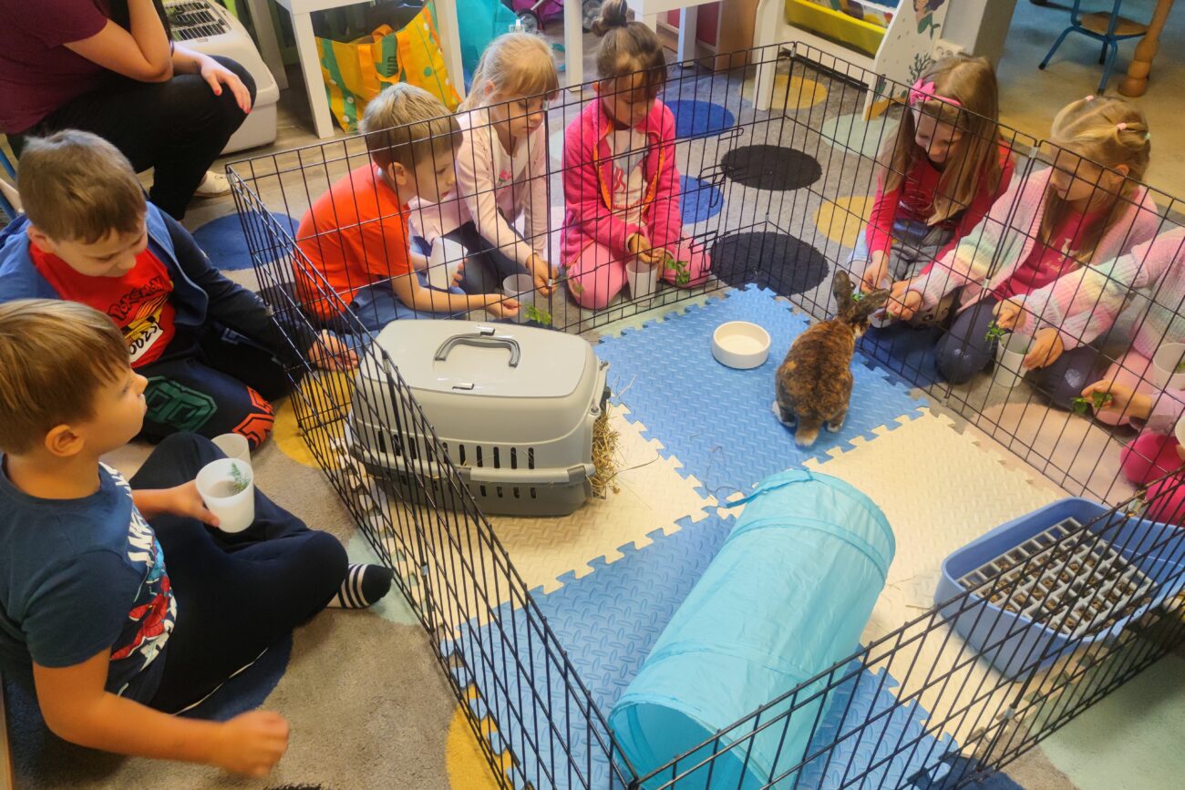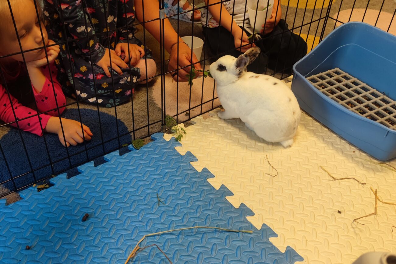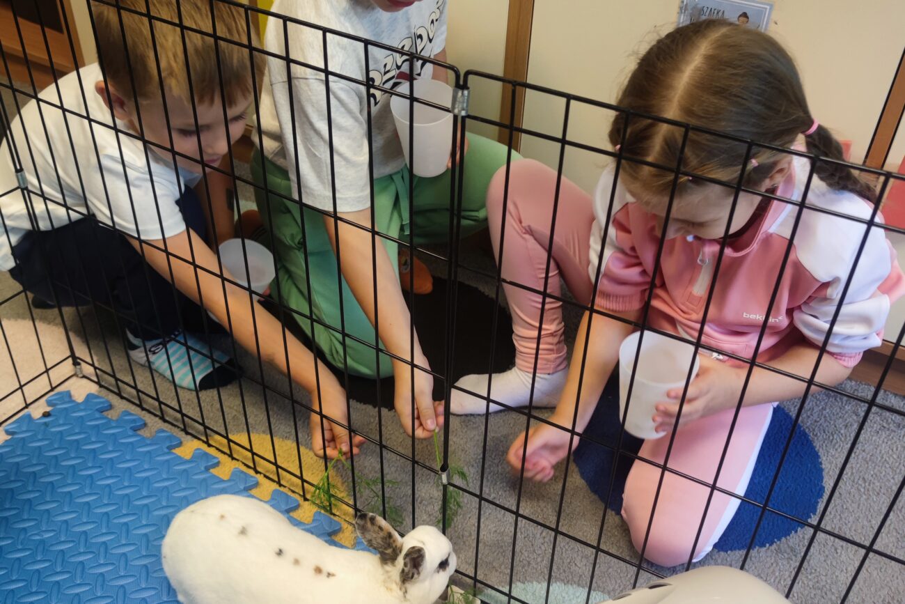 26 września – może nie każdy o tym wie…ale nasze przedszkolaki wiedzą już na pewno, że w ten dzień obchodzimy „Międzynarodowy Dzień Królika”. Dzień ten został ustanowiony po raz pierwszy w Wielkiej Brytanii i promuje ochronę oraz opiekę nad królikami domowymi i dzikimi. Obchodzenie tego dnia w przedszkolach ma wiele zalet. Przede wszystkim pozwala dzieciom poznać różnorodność zwierząt oraz rozwijać wrażliwość ekologiczną i empatię wobec tych cudownych stworzeń. Tego dnia do naszego przedszkola zawitały dwa słodkie króliczki, dzieci mogły je nakarmić oraz pogłaskać. Serdecznie dziękujemy mamie Antosia oraz Krainie Tuptusia za uświetnienia tego dnia.