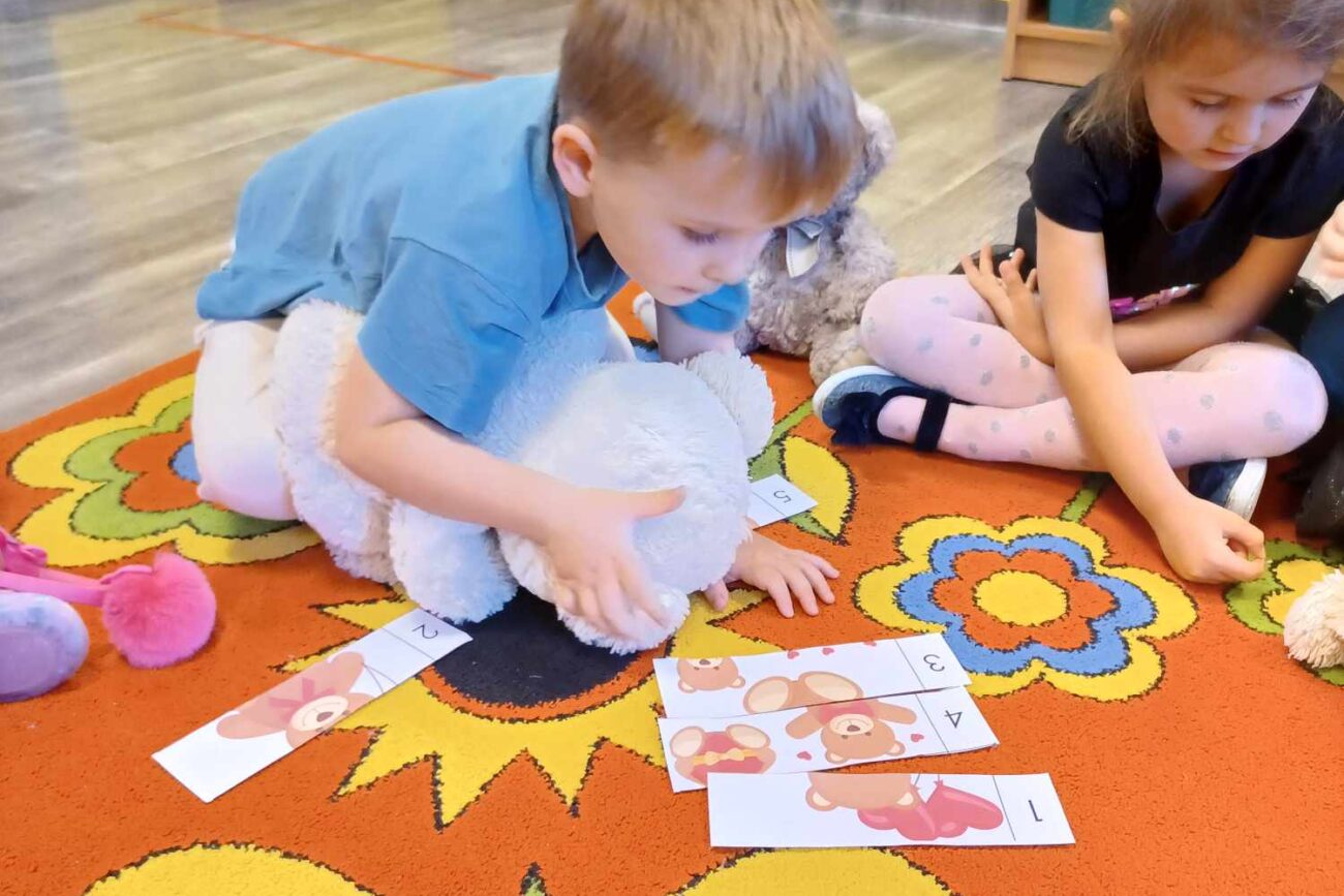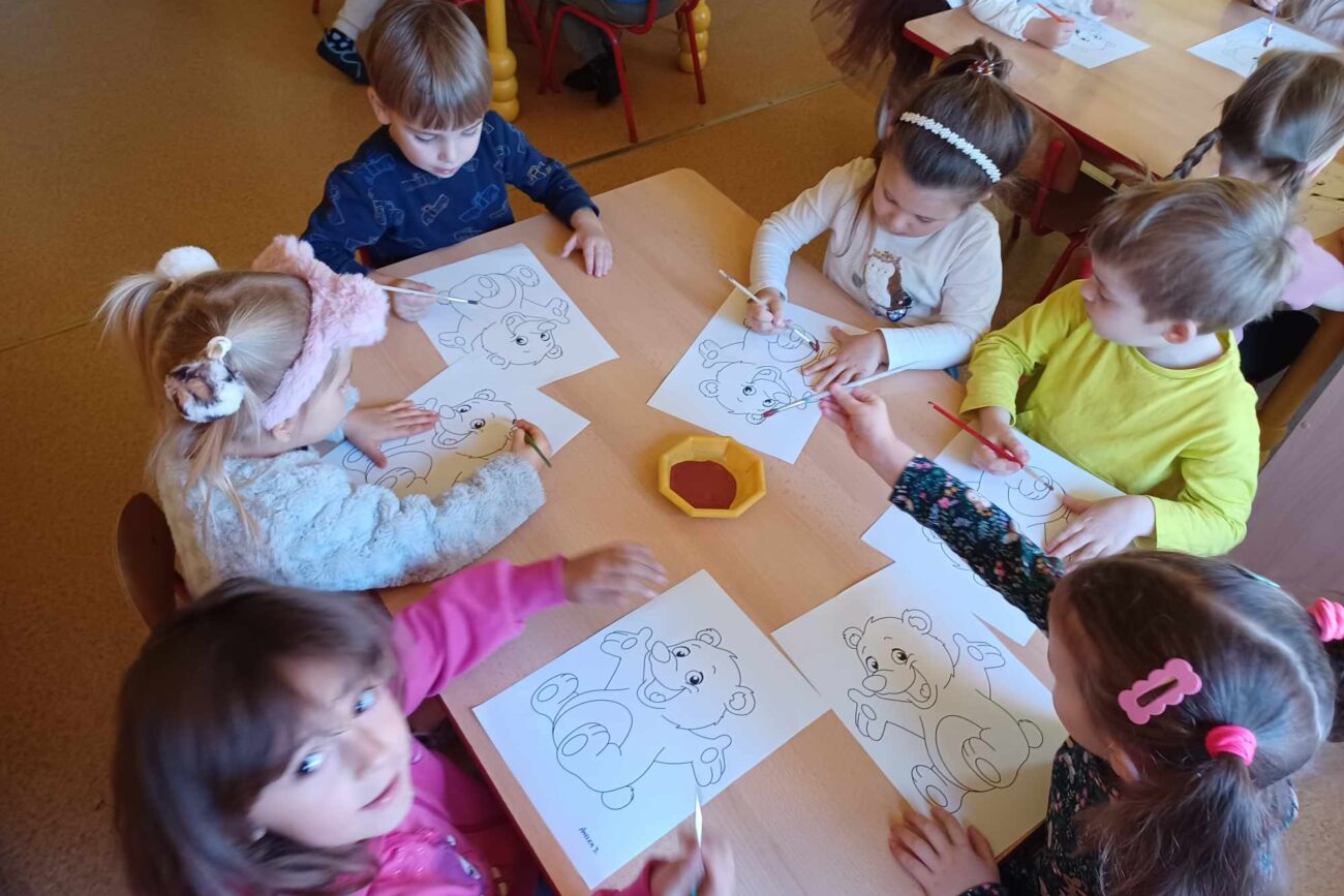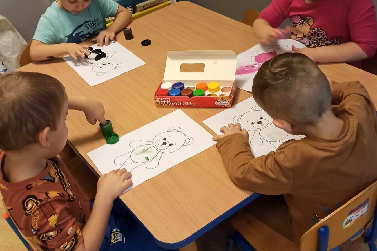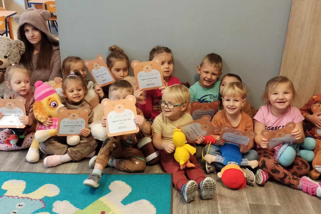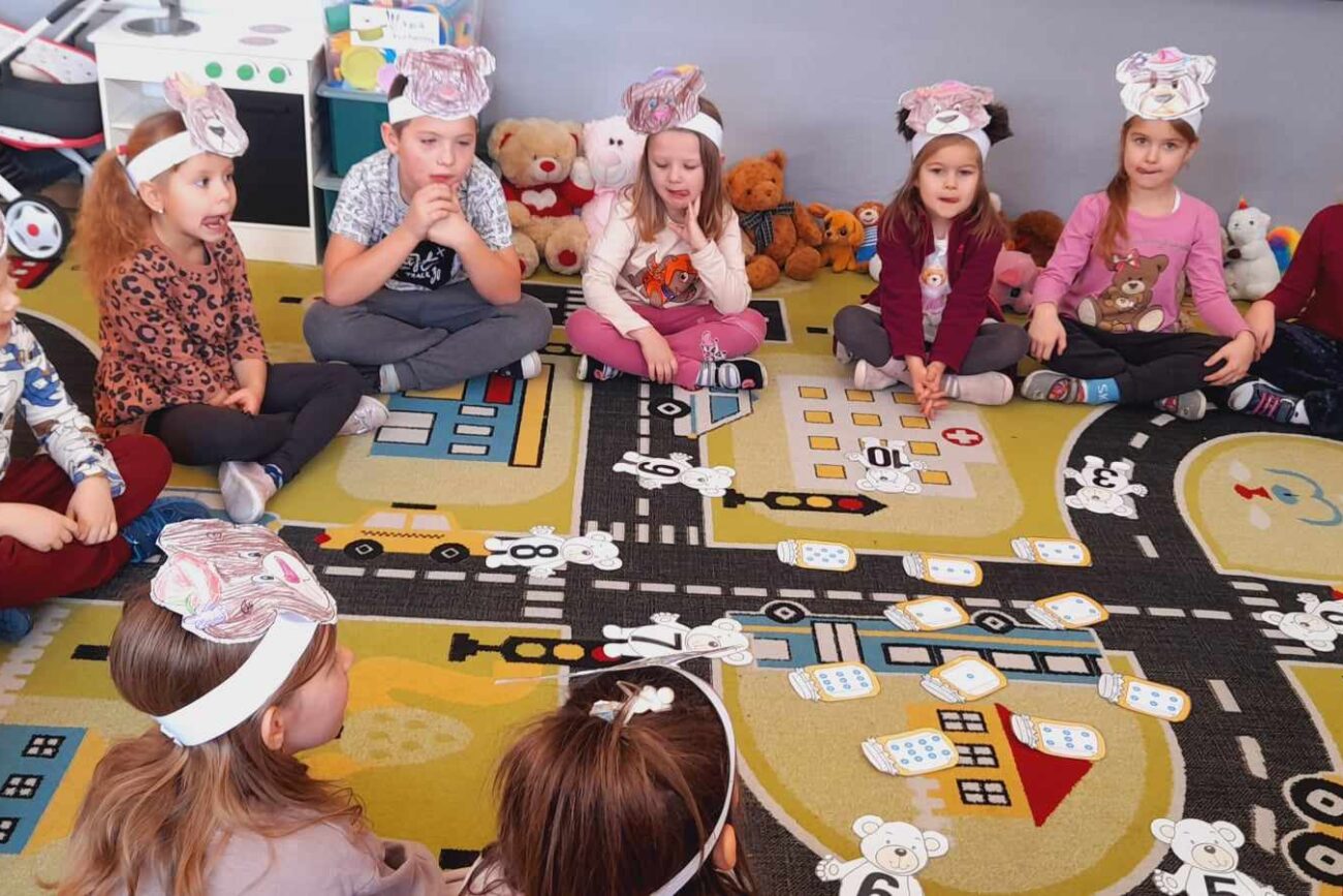 Dnia 27.11.2023r. nasze przedszkolaki obchodziły Dzień Pluszowego Misia. Z tej okazji dzieci przyniosły swoje ukochane Misie,z którymi wspólnie wykonywały zadnia. Na sam początek wspólnie zaśpiewały piosenkę „Jadą, jadą misie”, następnie dowiedziały się w jaki sposób miś powstal, wykonywały Misiowe zadania oraz układały puzzle. Były wspólne tańce, nauka wierszyka. Nie mogło zabraknąć wysłuchania bajki o „Kubusiu Puchatku”, a na koniec zajęć wykonane zostały pracę plastyczne.
