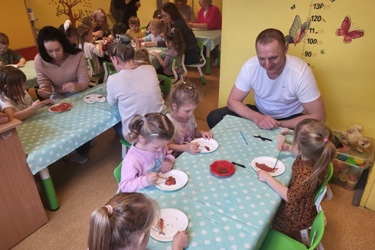 U Motylków odbyły się w tym dniu zajęcia otwarte dla rodziców. Zajęcia poprowadziła p. Marysia. Rodzice wspólnie z dziećmi śpiewali piosenki oraz wykonali pracę plastyczną.