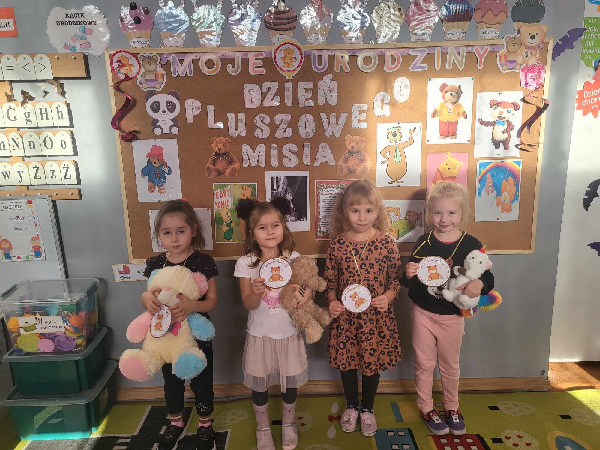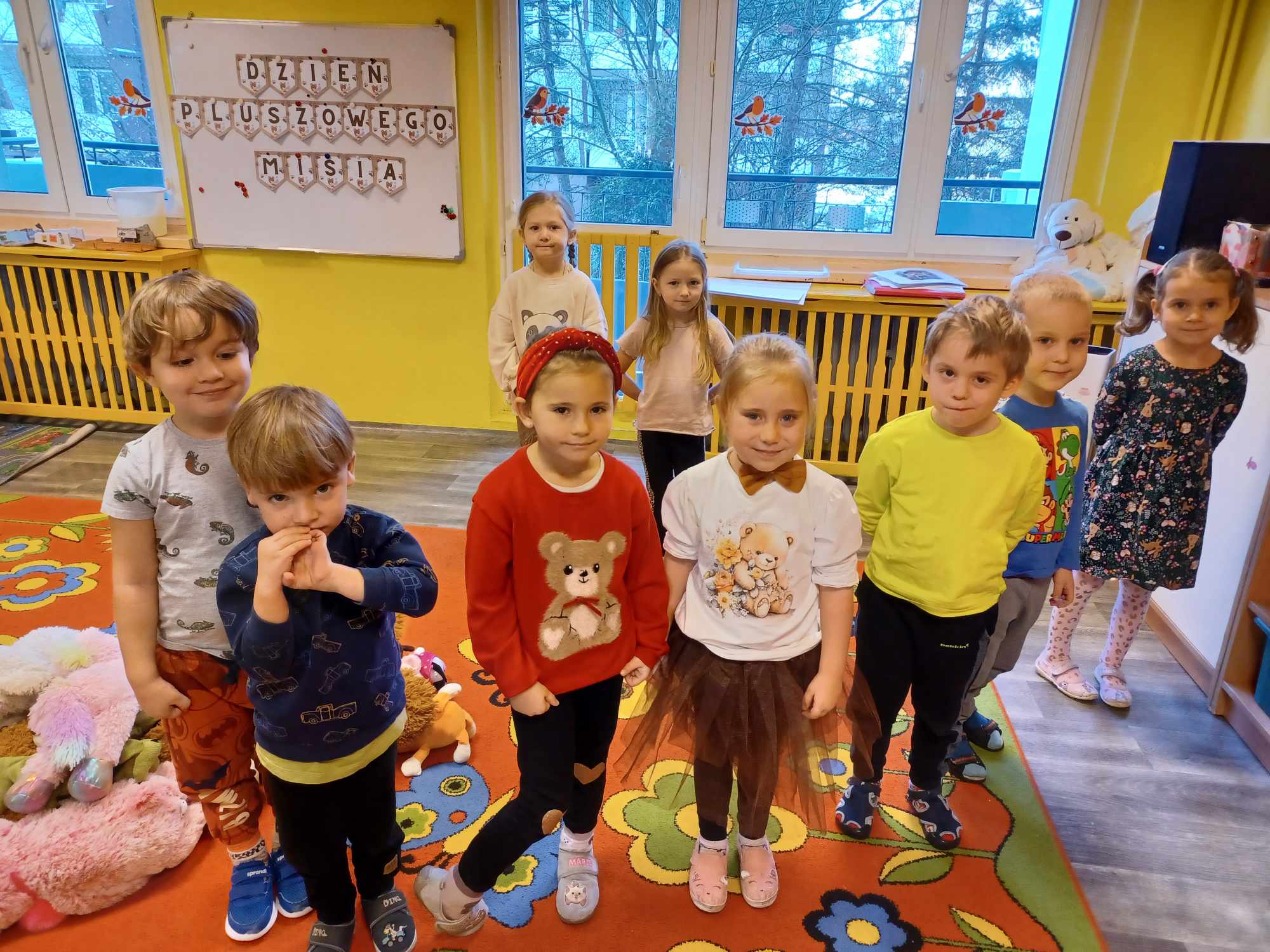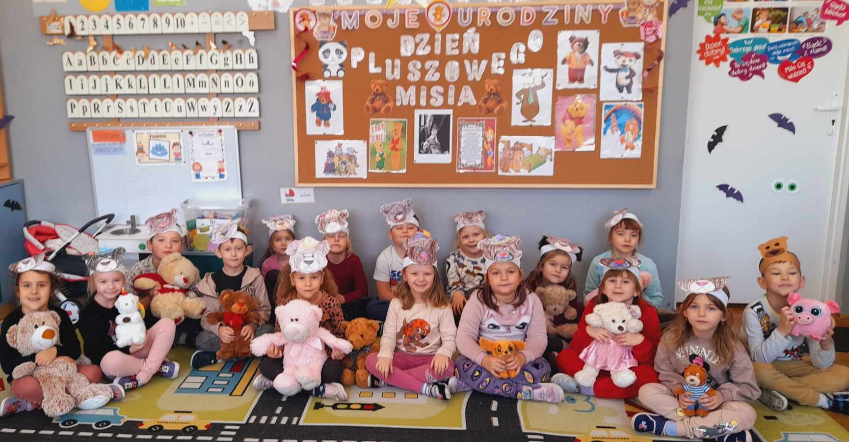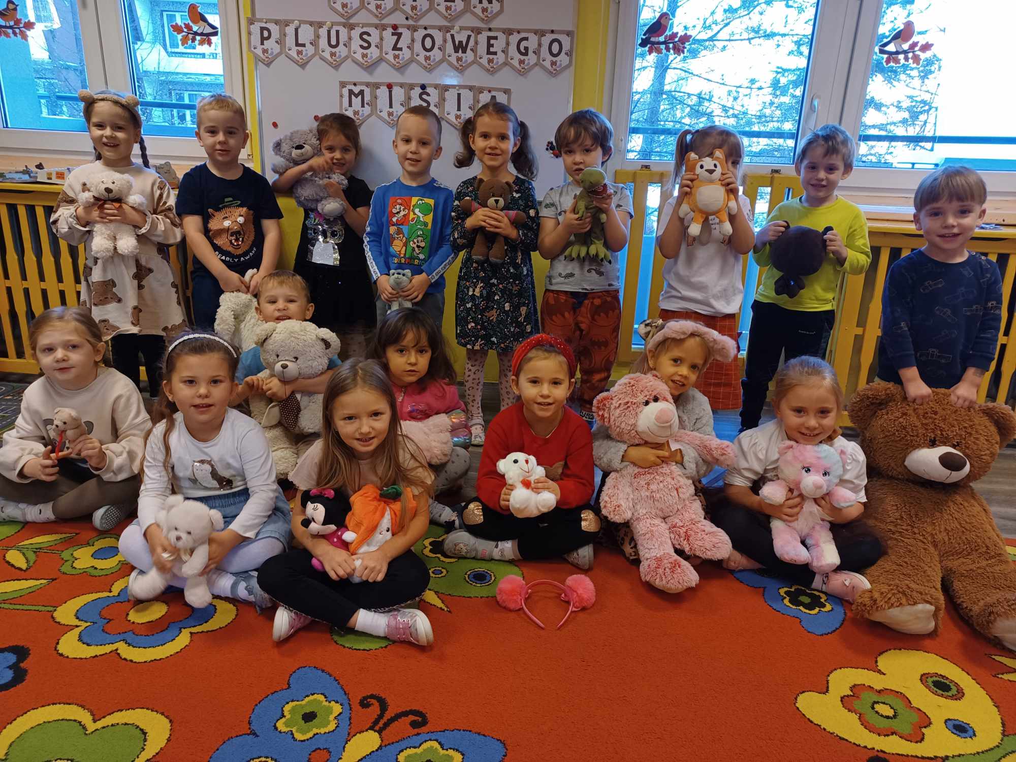 Dnia 27.11.2023r. nasze przedszkolaki obchodziły Dzień Pluszowego Misia. Z tej okazji dzieci przyniosły swoje ukochane Misie,z którymi wspólnie wykonywały zadnia. Na sam początek wspólnie zaśpiewały piosenkę „Jadą, jadą misie”, następnie dowiedziały się w jaki sposób miś powstal, wykonywały Misiowe zadania oraz układały puzzle. Były wspólne tańce, nauka wierszyka. Nie mogło zabraknąć wysłuchania bajki o „Kubusiu Puchatku”, a na koniec zajęć wykonane zostały pracę plastyczne.