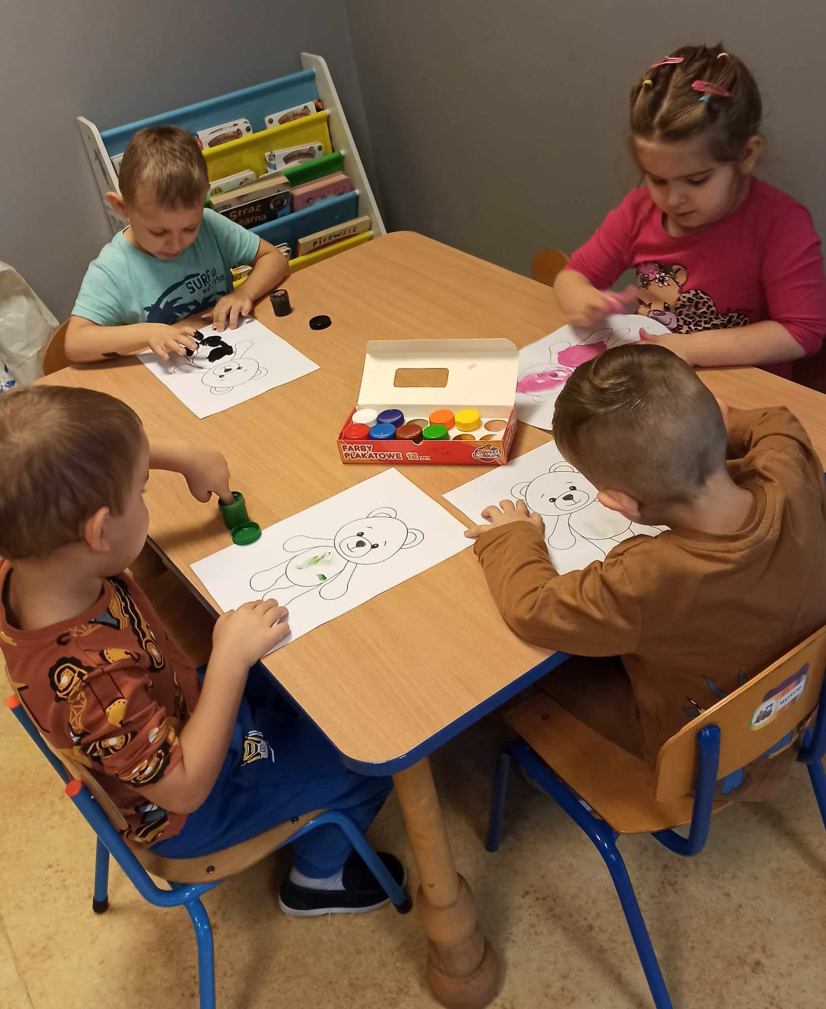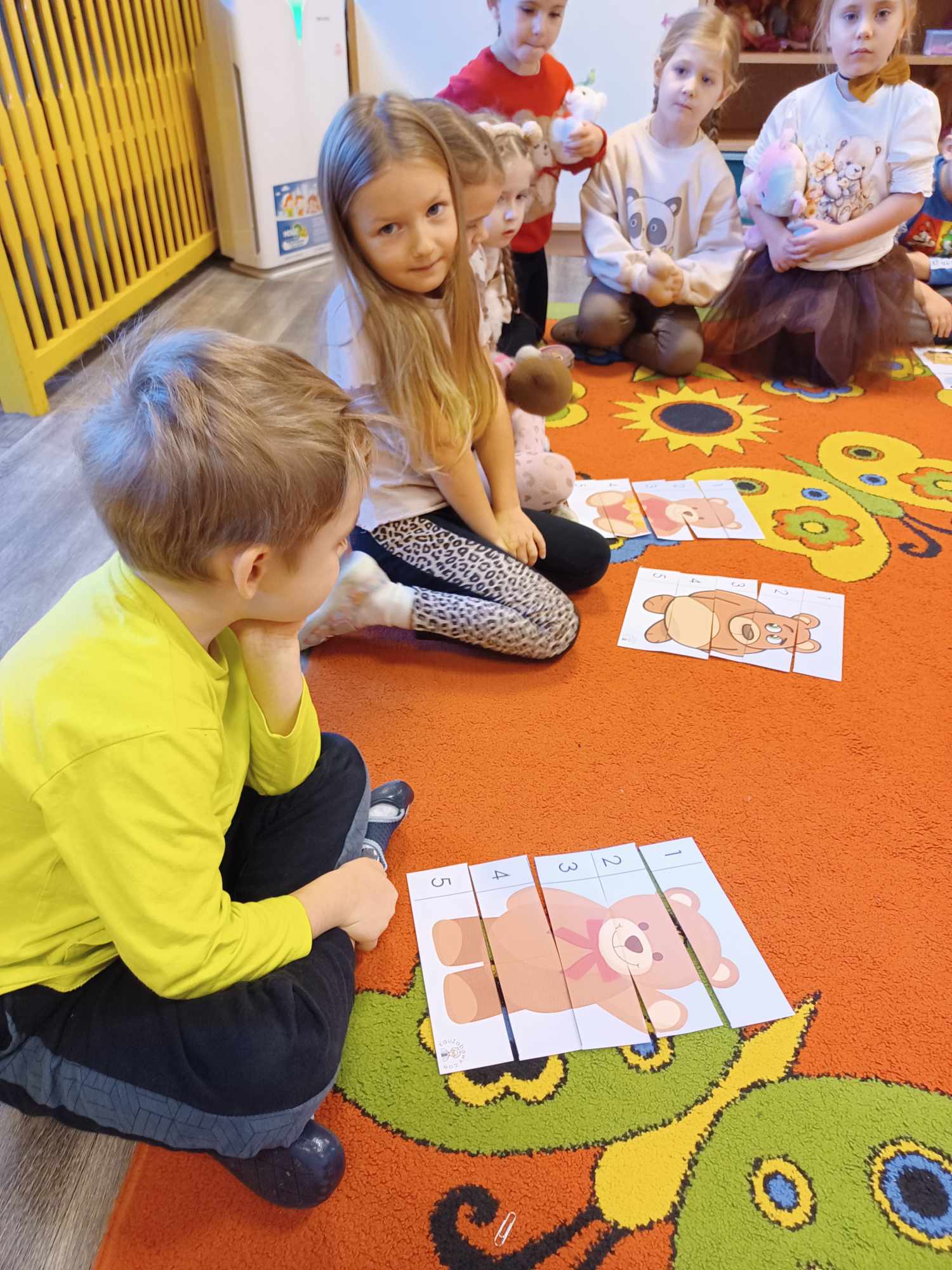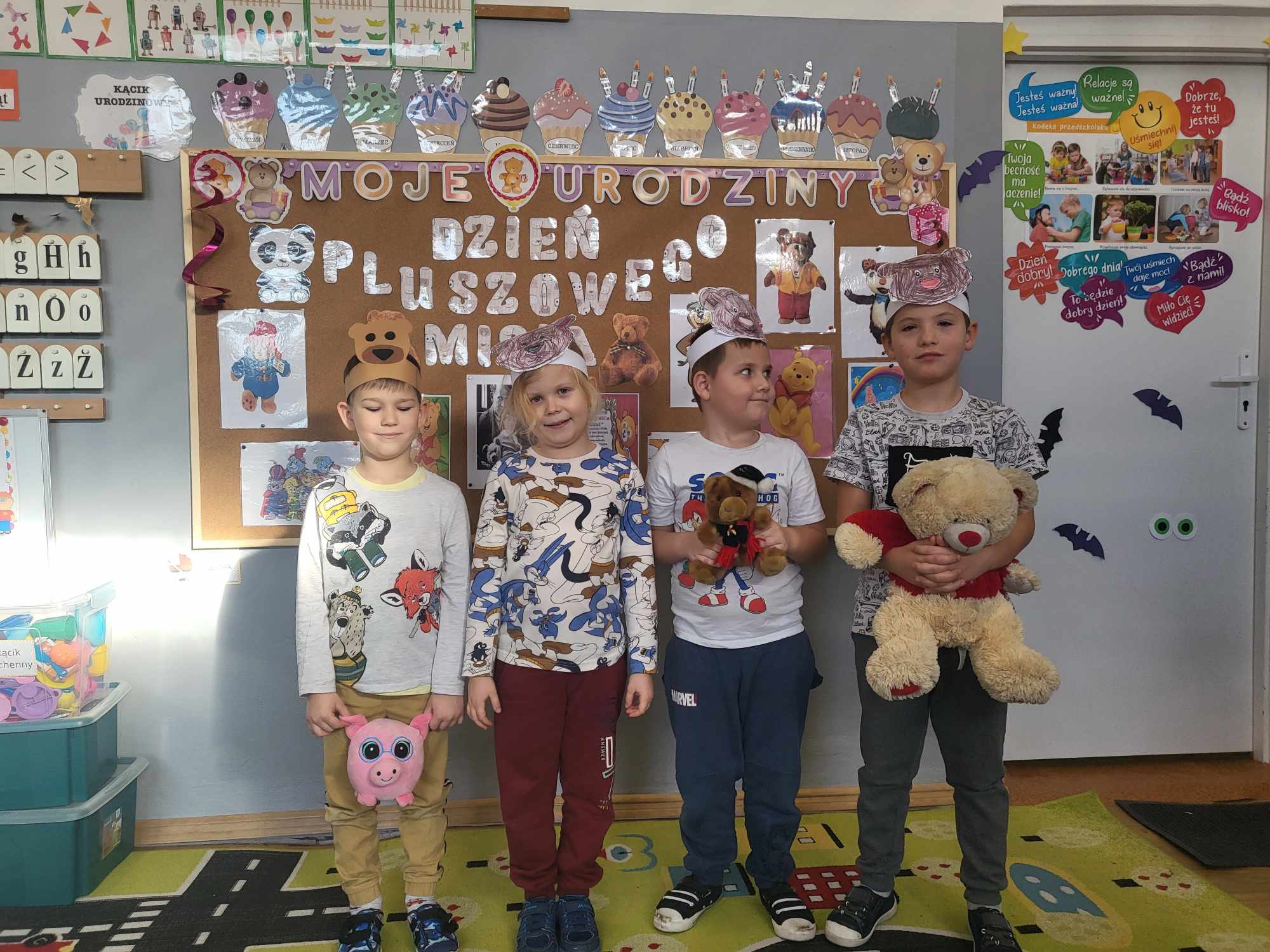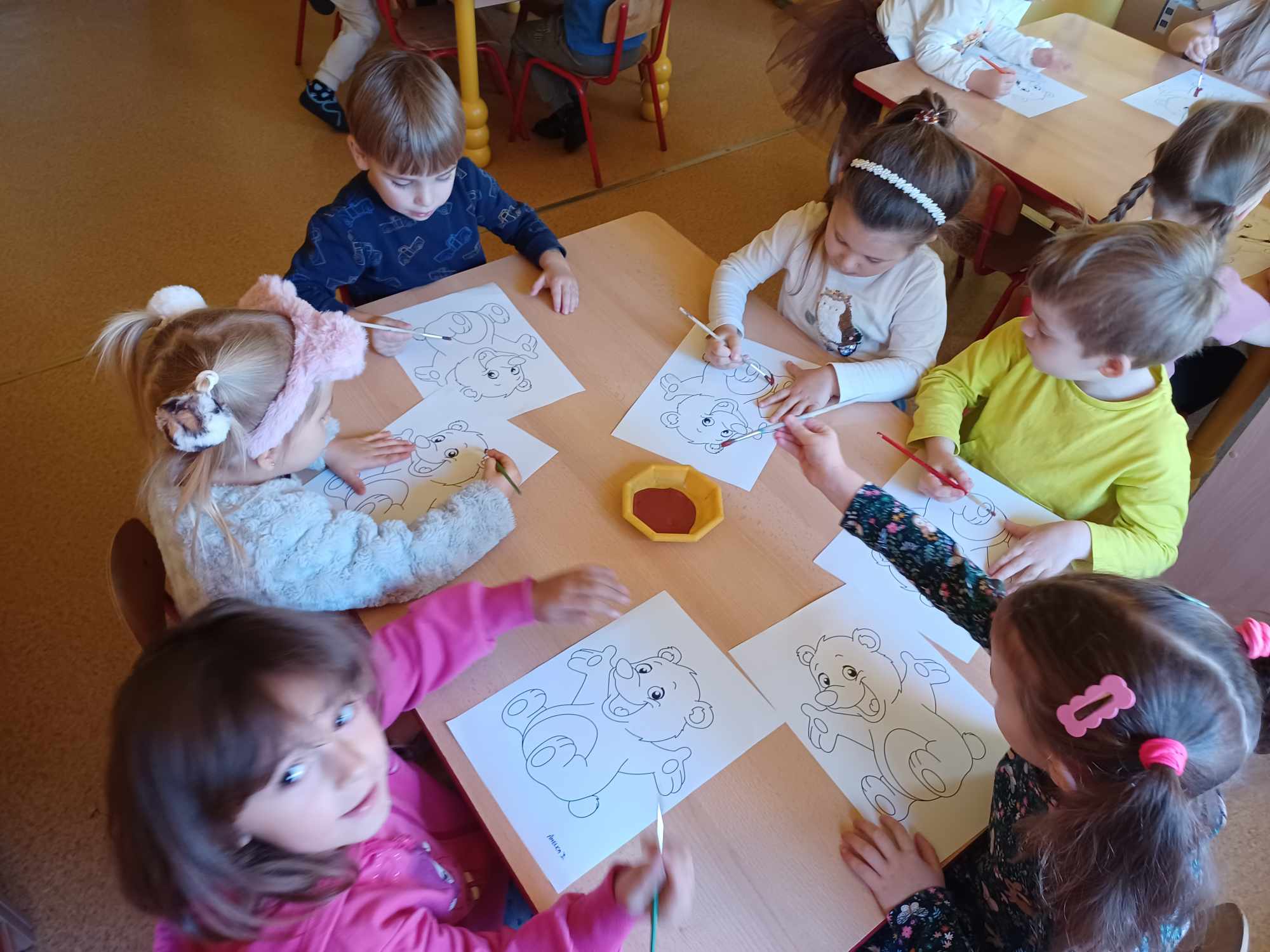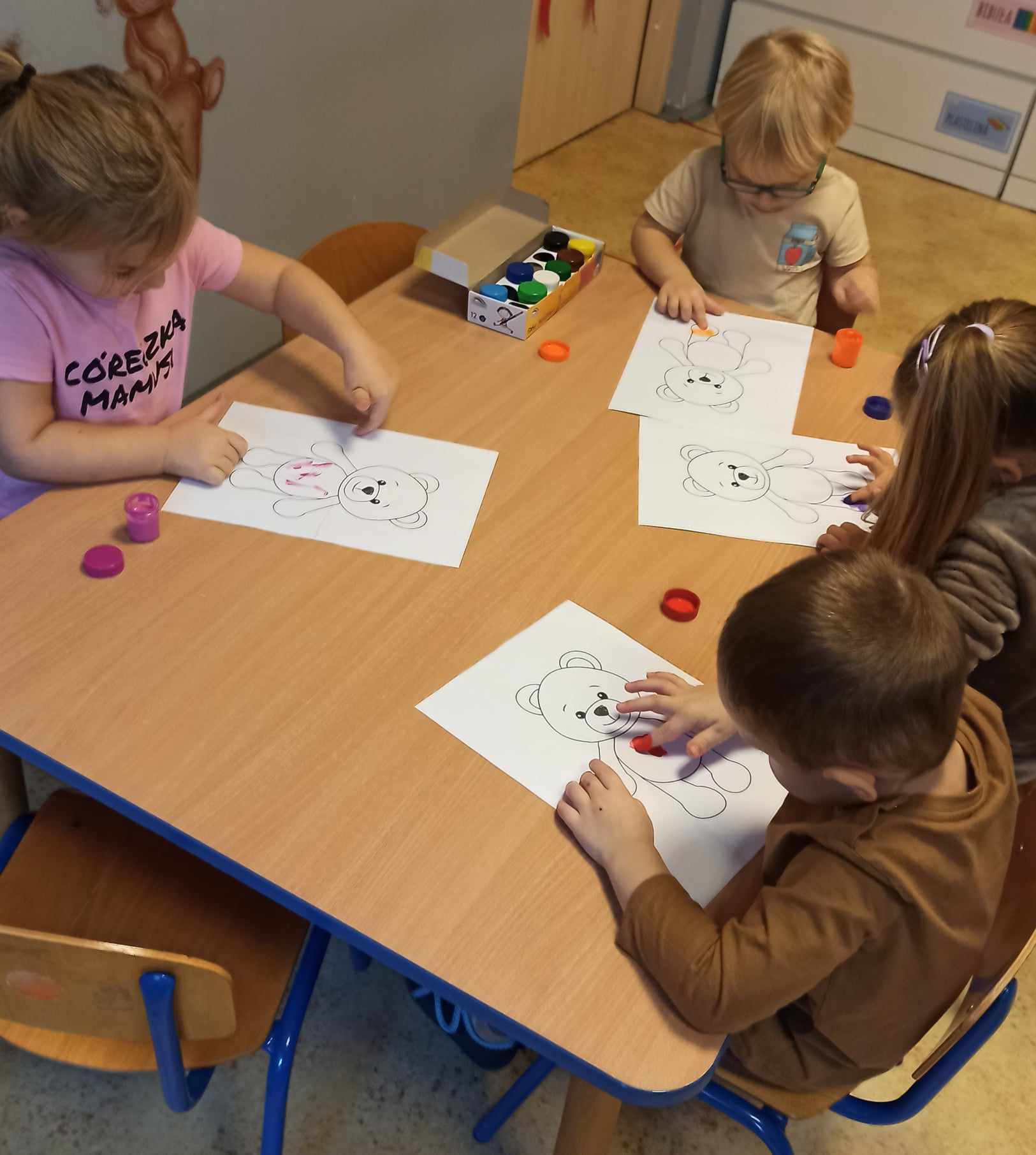 Dnia 27.11.2023r. nasze przedszkolaki obchodziły Dzień Pluszowego Misia. Z tej okazji dzieci przyniosły swoje ukochane Misie,z którymi wspólnie wykonywały zadnia. Na sam początek wspólnie zaśpiewały piosenkę „Jadą, jadą misie”, następnie dowiedziały się w jaki sposób miś powstal, wykonywały Misiowe zadania oraz układały puzzle. Były wspólne tańce, nauka wierszyka. Nie mogło zabraknąć wysłuchania bajki o „Kubusiu Puchatku”, a na koniec zajęć wykonane zostały pracę plastyczne.