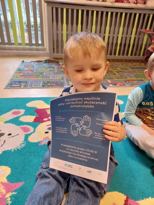 W dniu 18.11.2022r. obchodziliśmy Europejski Dzień Wiedzy o Antybiotykach, a w przyszłym tygodniu w Naszym Przedszkolu będą kontynuowane działania edukacyjne w ramach Światowego Tygodnia Wiedzy o Antybiotykach. Obie te inicjatywy są odpowiedzią na narastające zagrożenie związane ze zjawiskiem oporności drobnoustrojów na antybiotyki i mają na celu zwiększenie świadomości na temat globalnej oporności na środki przeciwdrobnoustrojowe. Zapraszamy do obejrzenia fotorelacji.