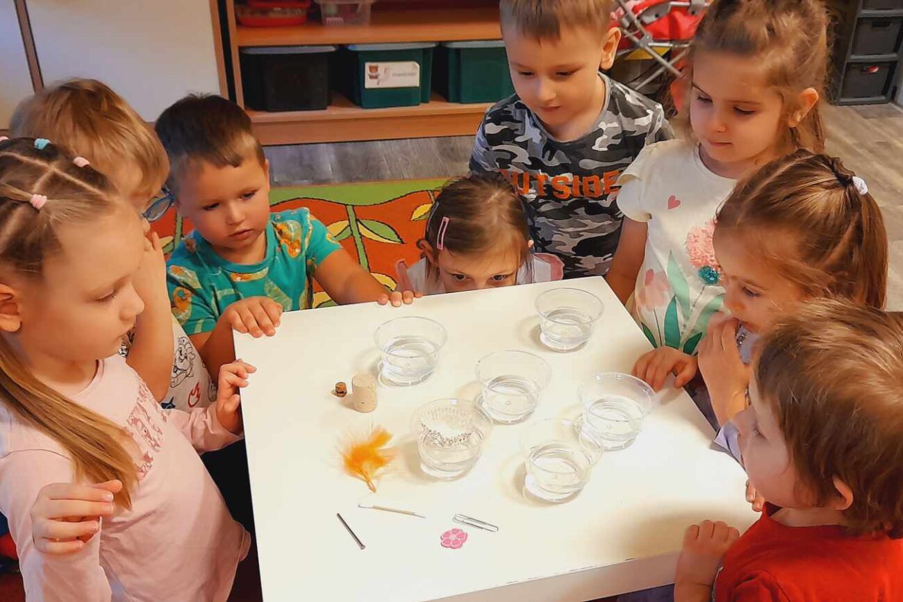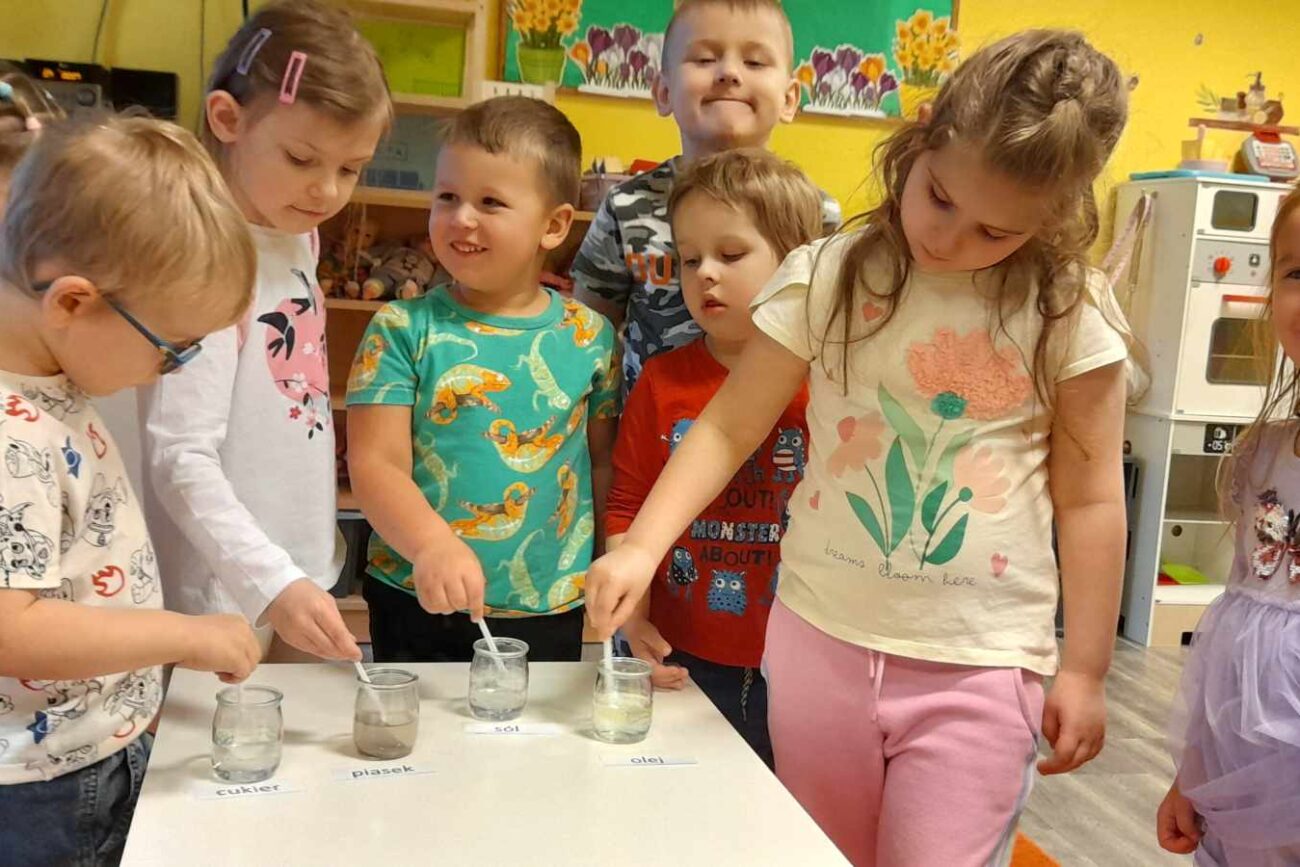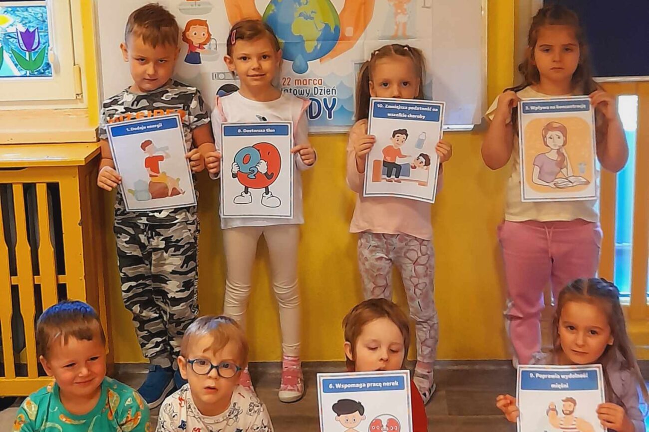 Z okazji Światowego Dnia Wody, przypadającego na dzień 22 marca dzieci z grupy ,,Motylki” i ,,Misie” uczestniczyły w zabawach z wodą. Omawiały znaczenie wody dla organizmów żywych w życiu codziennym. Poznały stany skupienia wody- badając jej właściwości fizyczne, sposoby racjonalnego korzystania z zasobów wodnych poprzez jej oszczędzanie. Układały puzzle obrazkowe związane z wodą. Brały aktywny udział w doświadczeniach i eksperymentach. Na koniec otrzymały emblematy ,,Przyjaciela Wody”.