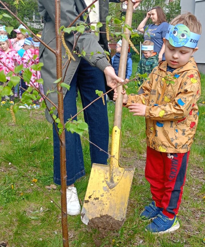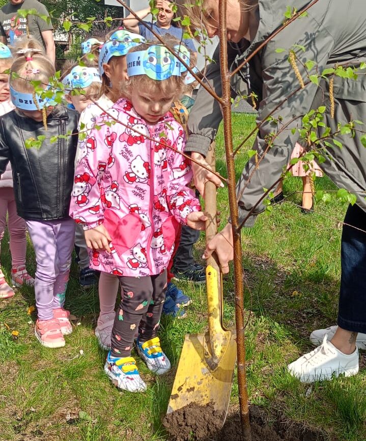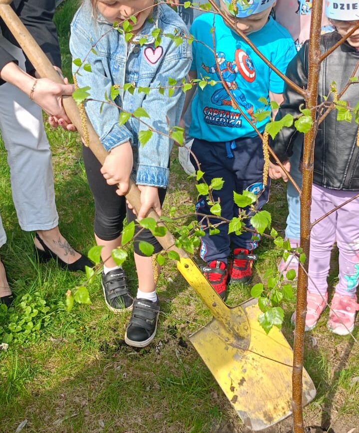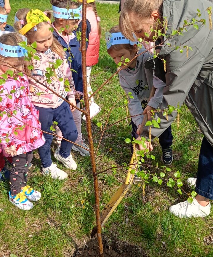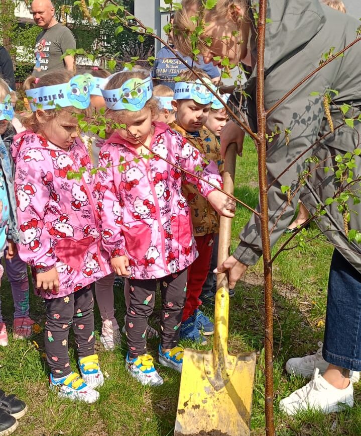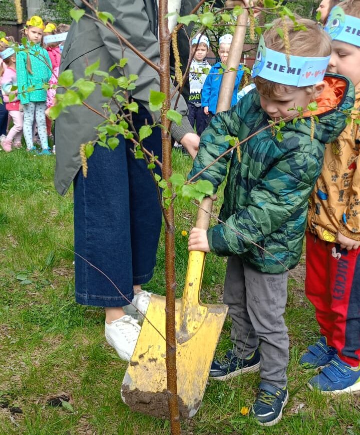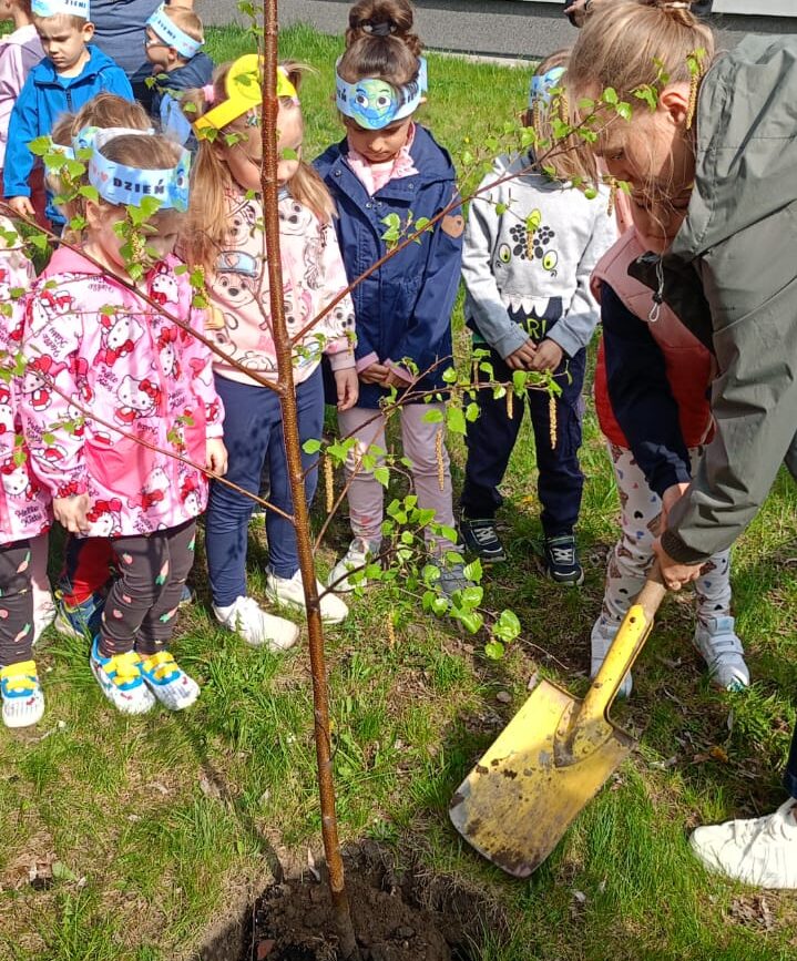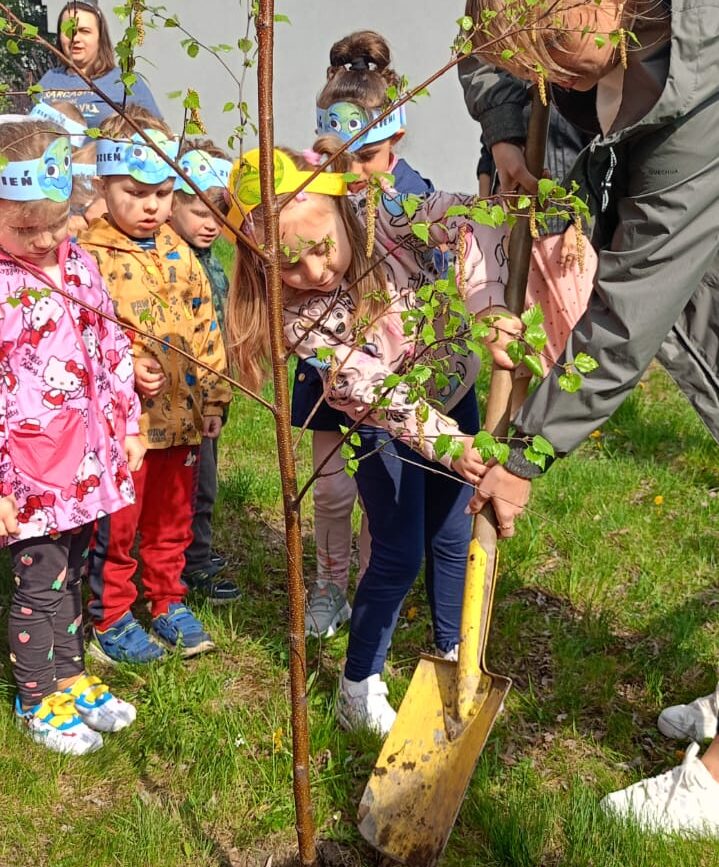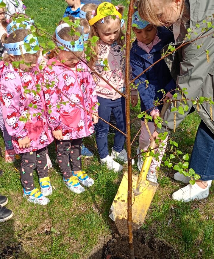 22 kwietnia świętowaliśmy w naszym przedszkolu Dzień Ziemi. Razem z Fundacją Dla Młodych dzieci posadziły drzewo, które otrzymaliśmy w styczniu, z okazji Dnia Ligi Ochrony Przyrody– najstarszej polskiej organizacji zajmującej się ochroną środowiska. Dodatkowo dzieci ze wszystkich grup odśpiewały piosenkę „Ziemia, wyspa zielona”.