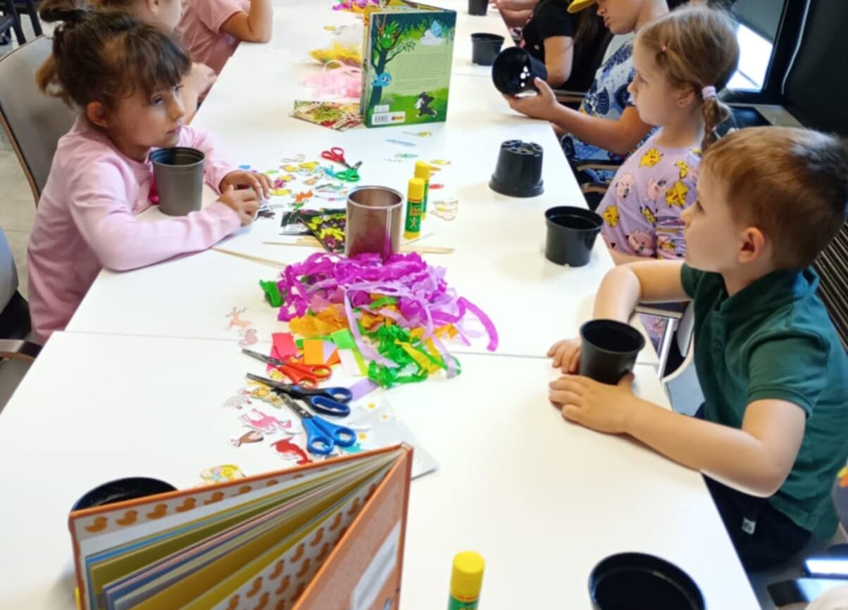 23 kwietnia dzieci z grupy Biedronki udały się do salki POK mieszczącej się w „Muszelce” na warsztaty, które zorganizowała Miejska Biblioteka Publiczna w Sosnowcu. Dzieci sadziły nasiona, dekorowały doniczki.