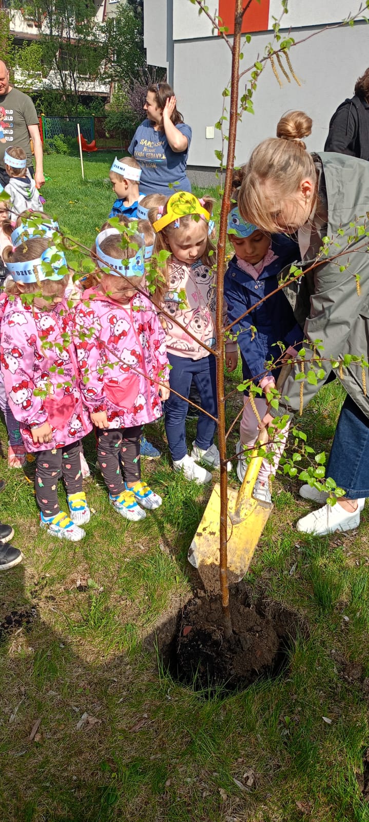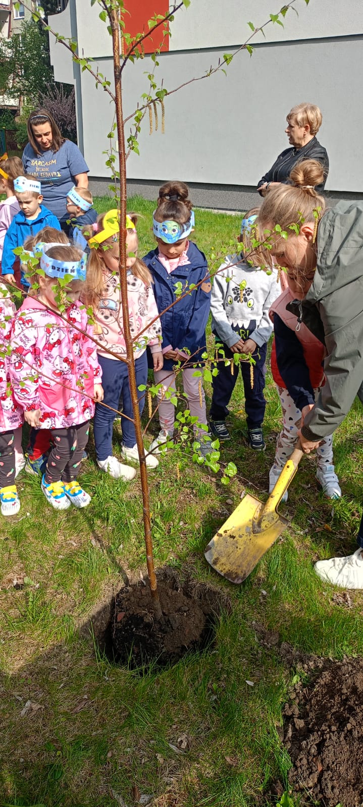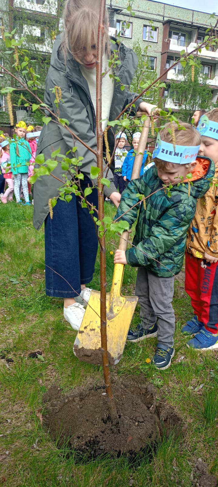 22 kwietnia świętowaliśmy w naszym przedszkolu Dzień Ziemi. Razem z Fundacją Dla Młodych dzieci posadziły drzewo, które otrzymaliśmy w styczniu, z okazji Dnia Ligi Ochrony Przyrody– najstarszej polskiej organizacji zajmującej się ochroną środowiska. Dodatkowo dzieci ze wszystkich grup odśpiewały piosenkę „Ziemia, wyspa zielona”.