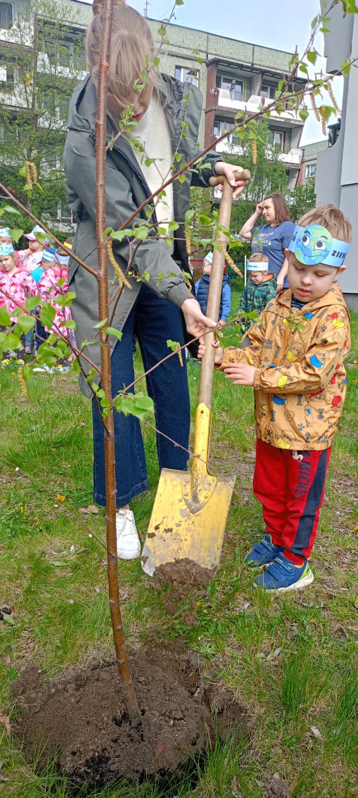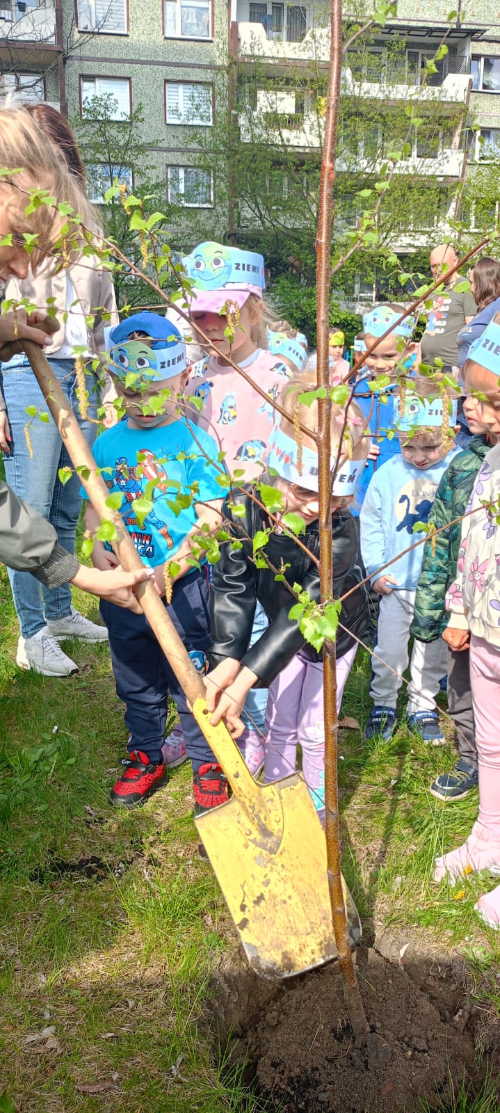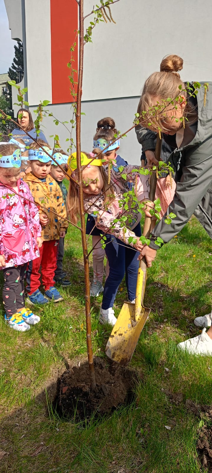 22 kwietnia świętowaliśmy w naszym przedszkolu Dzień Ziemi. Razem z Fundacją Dla Młodych dzieci posadziły drzewo, które otrzymaliśmy w styczniu, z okazji Dnia Ligi Ochrony Przyrody– najstarszej polskiej organizacji zajmującej się ochroną środowiska. Dodatkowo dzieci ze wszystkich grup odśpiewały piosenkę „Ziemia, wyspa zielona”.