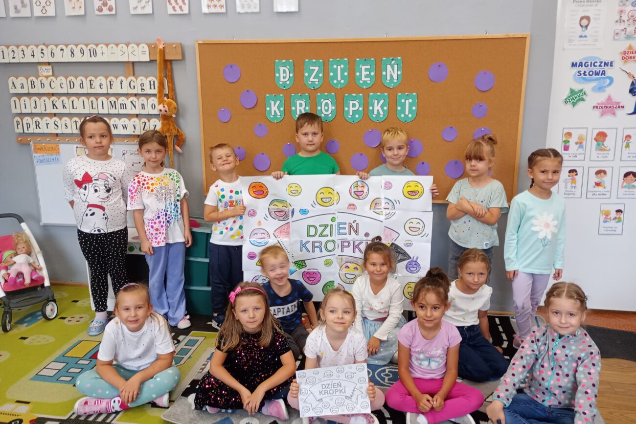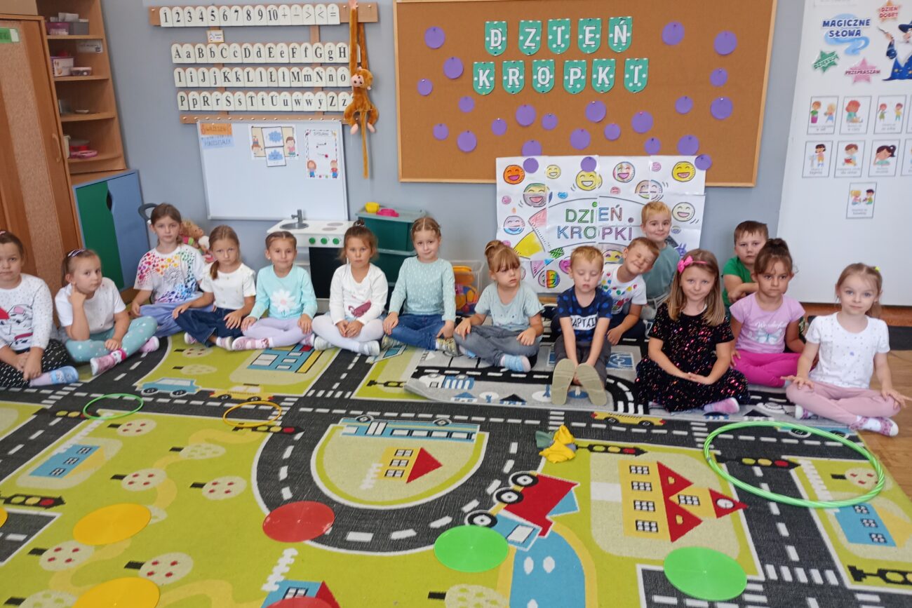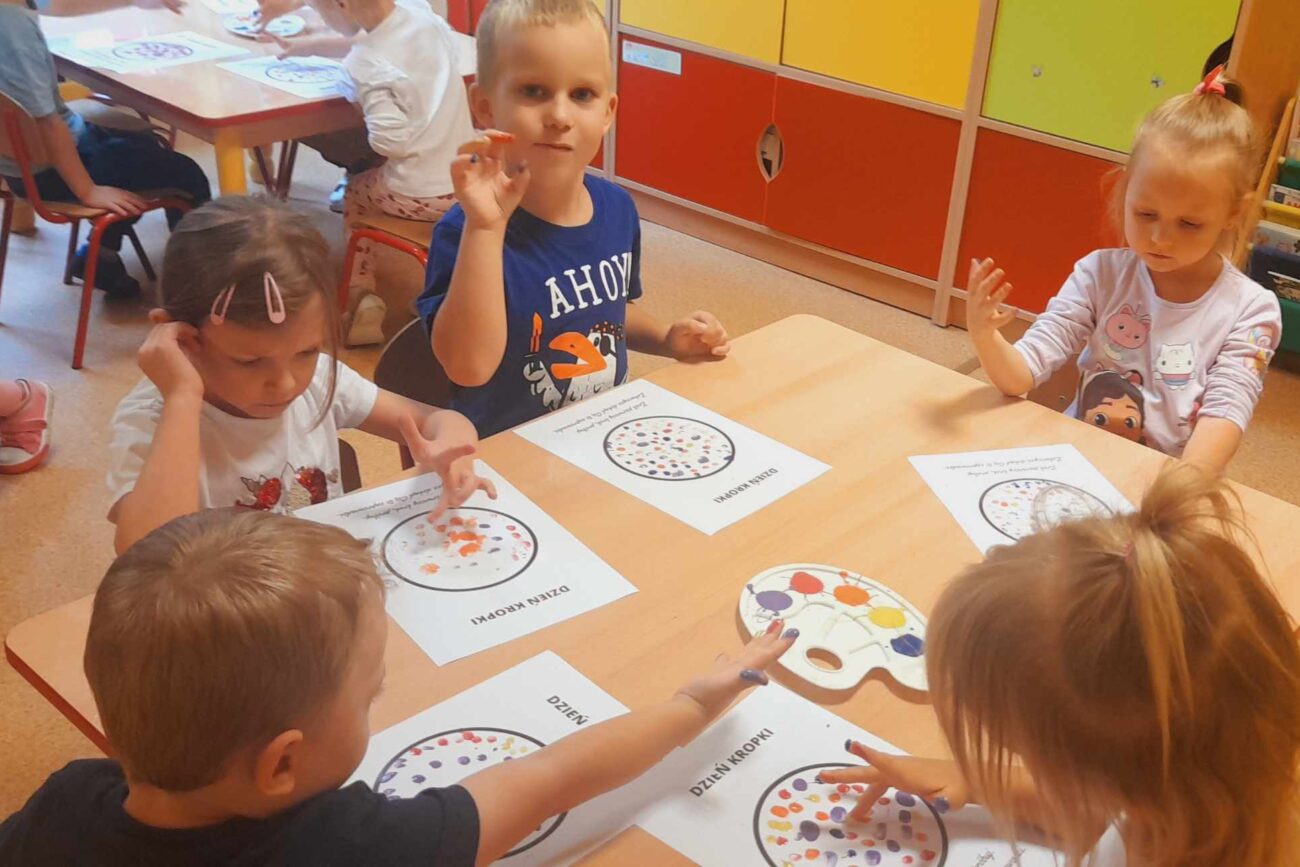Dnia 16 września 2024r. w naszym przedszkolu świętowaliśmy „Dzień kropki”. Celem Międzynarodowego Dnia Kropki jest wzbudzenie u dzieci kreatywności, pomysłowości i zachęcenie ich do tworzenia, działania.Dzień Kropki jest to dzień odwagi i zabawy. Tego dnia nasze zabawy wypełnione były kolorowymi kropkami. Tego dnia również dostrzegaliśmy kropki tam, gdzie wcześniej nikt na nie nie zwracał uwagi. Okazało się, że kropki towarzyszą nam w naszym codziennym życiu: są w kropkach biedronki, z kropki można utworzyć słońce, bombkę choinkową, kolorową kulę, piłkę