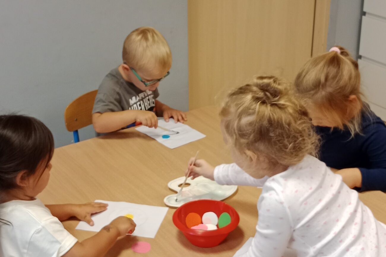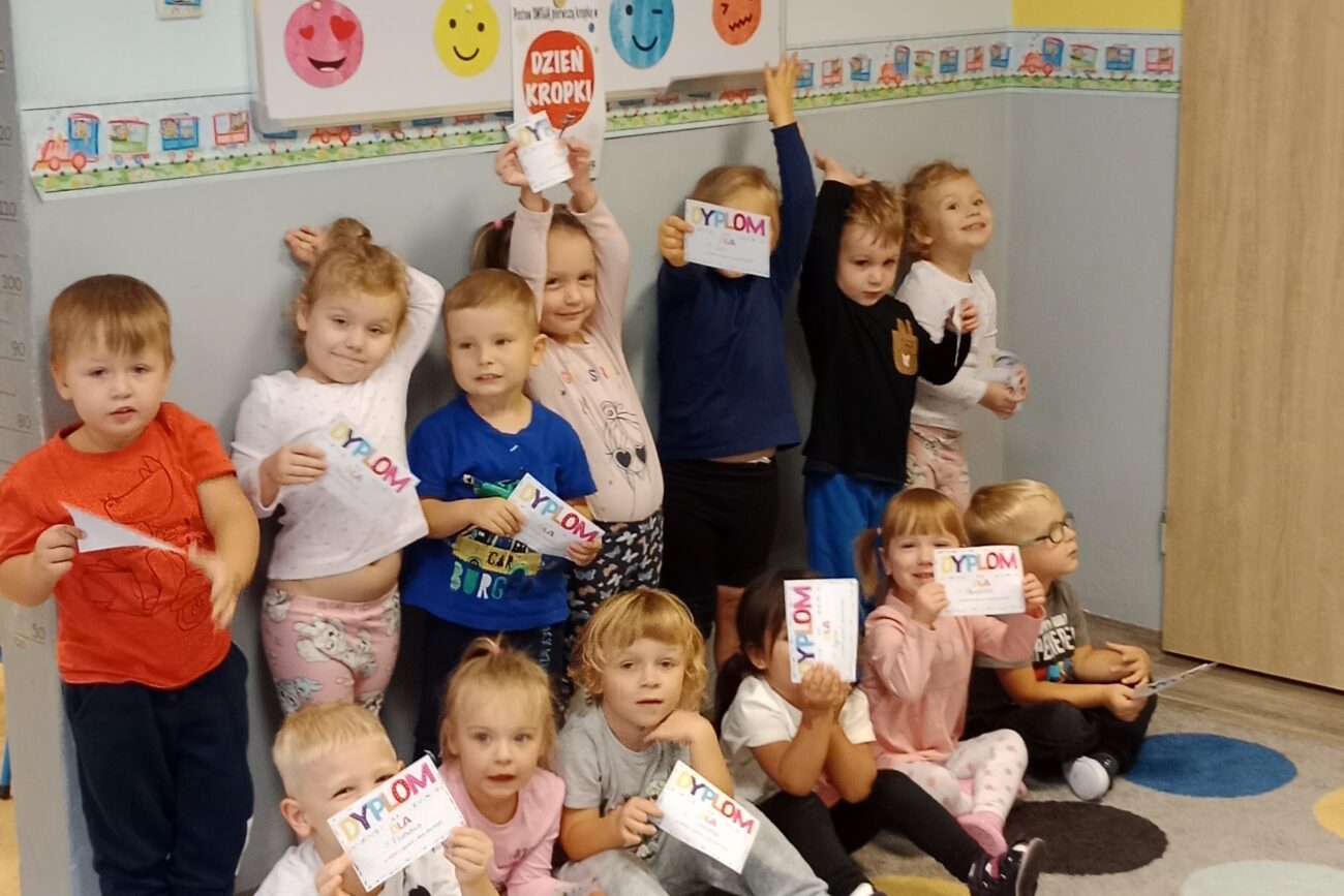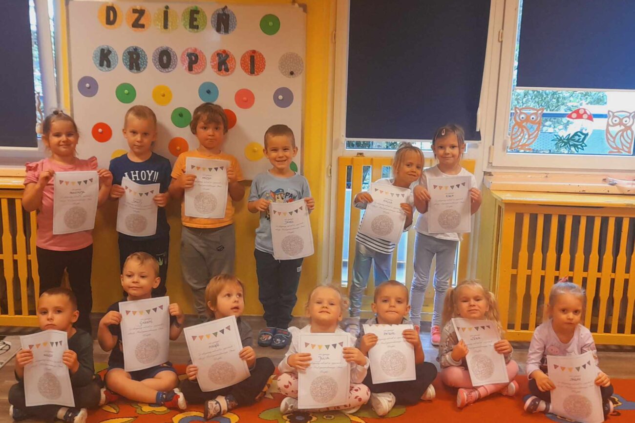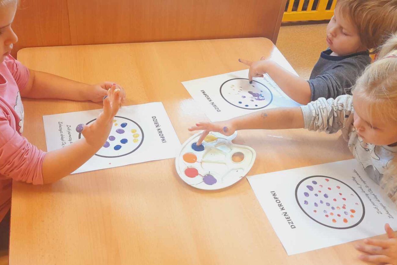 Dnia 16 września 2024r. w naszym przedszkolu świętowaliśmy „Dzień kropki”. Celem Międzynarodowego Dnia Kropki jest wzbudzenie u dzieci kreatywności, pomysłowości i zachęcenie ich do tworzenia, działania.Dzień Kropki jest to dzień odwagi i zabawy. Tego dnia nasze zabawy wypełnione były kolorowymi kropkami. Tego dnia również dostrzegaliśmy kropki tam, gdzie wcześniej nikt na nie nie zwracał uwagi. Okazało się, że kropki towarzyszą nam w naszym codziennym życiu: są w kropkach biedronki, z kropki można utworzyć słońce, bombkę choinkową, kolorową kulę, piłkę