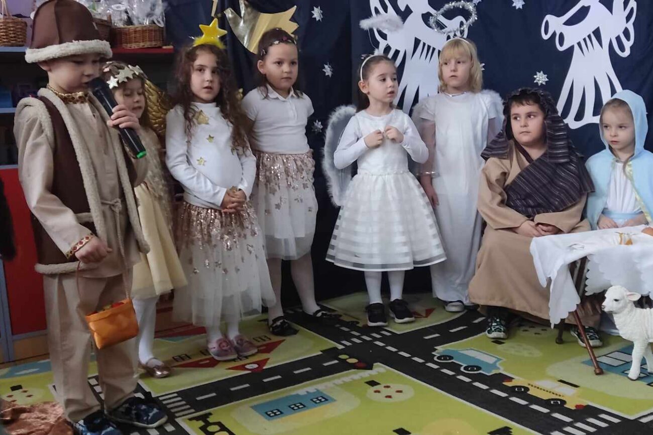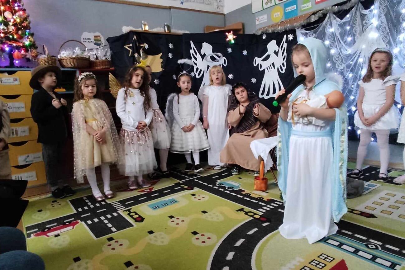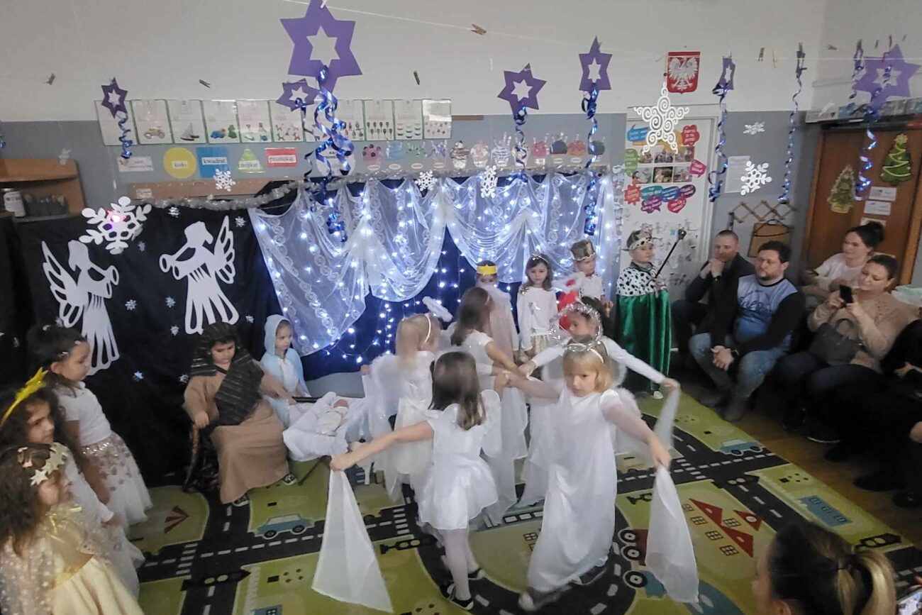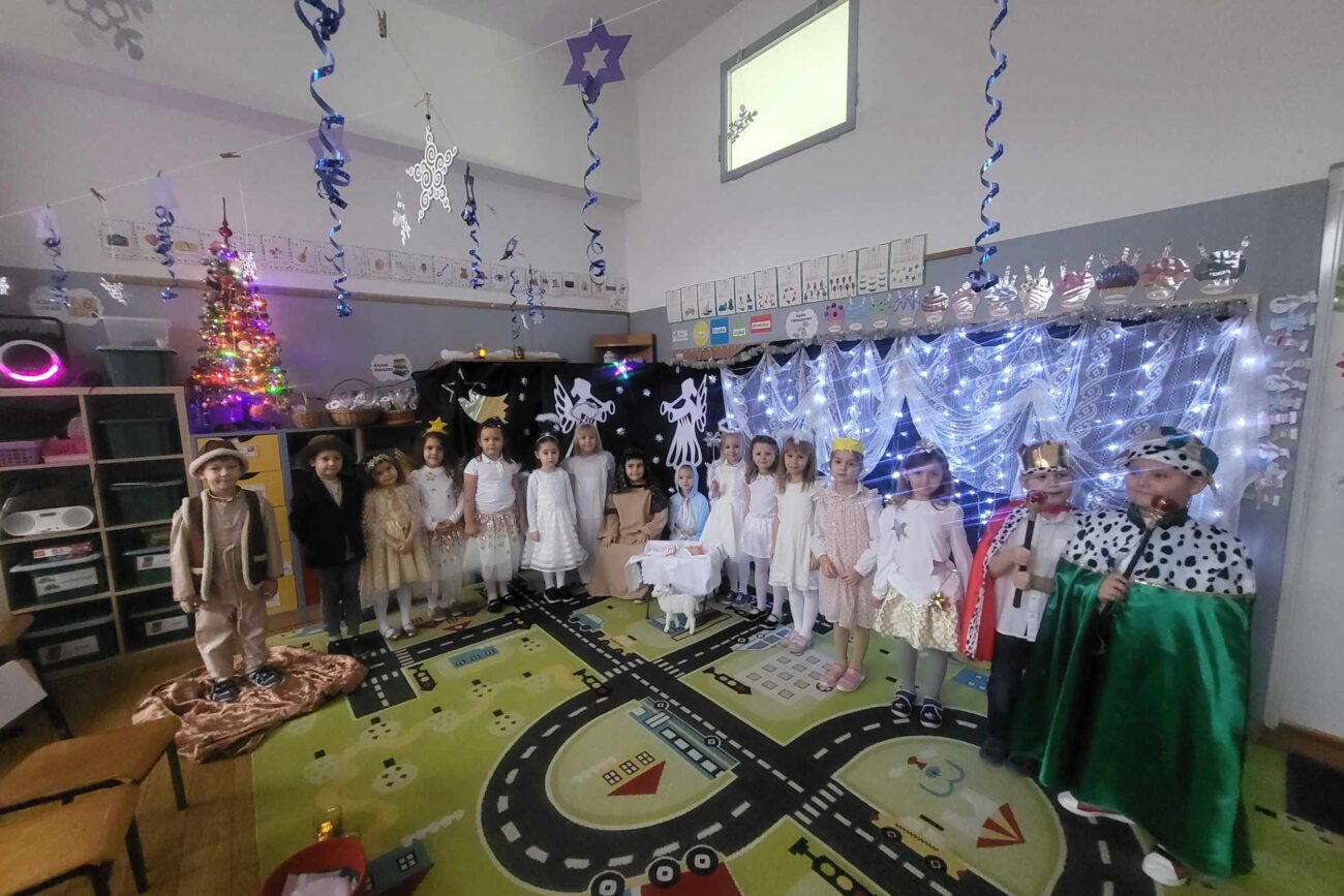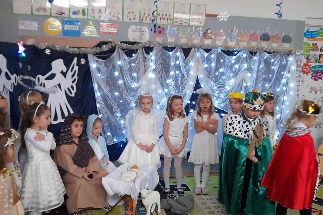 Święta Bożego Narodzenia to wyjątkowy i magiczny czas, pełen radości i rodzinnych spotkań. O tę świąteczną atmosferę zadbały dzieci z grupy Biedronek. Dzieci zaprezentowały przygotowywane od kilku tygodni „Jasełka Bożonarodzeniowe”. Podczas występu przedszkolaki przedstawiły swoją opowieść o narodzinach Jezusa, oprawioną wieloma kolędami. Piękna scenografia nawiązująca do Betlejem oraz stroje przedszkolaków były idealnym dopełnieniem całego przedstawienia. Mali artyści z dużym przejęciem i zaangażowaniem wiernie odtwarzali swoje role, prezentowali umiejętności recytatorskie i wokalne. Za swój występ otrzymali gromkie brawa oraz wyrazy uznania i podziękowania od Pani Dyrektor i Pani Wicedyrektor. Wszystko to sprawiło, że w sali zapanował uroczysty i nastrojowy klimat.