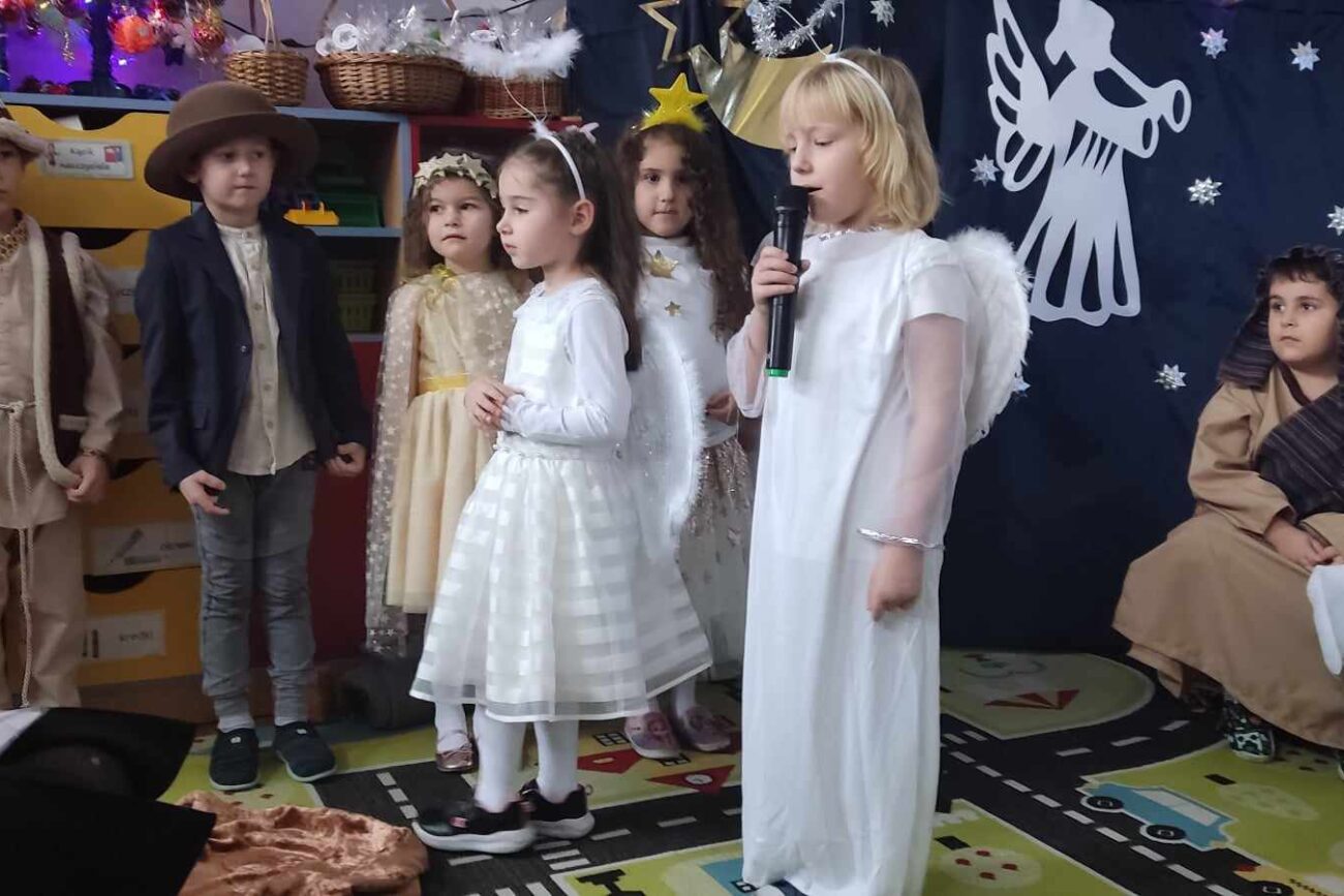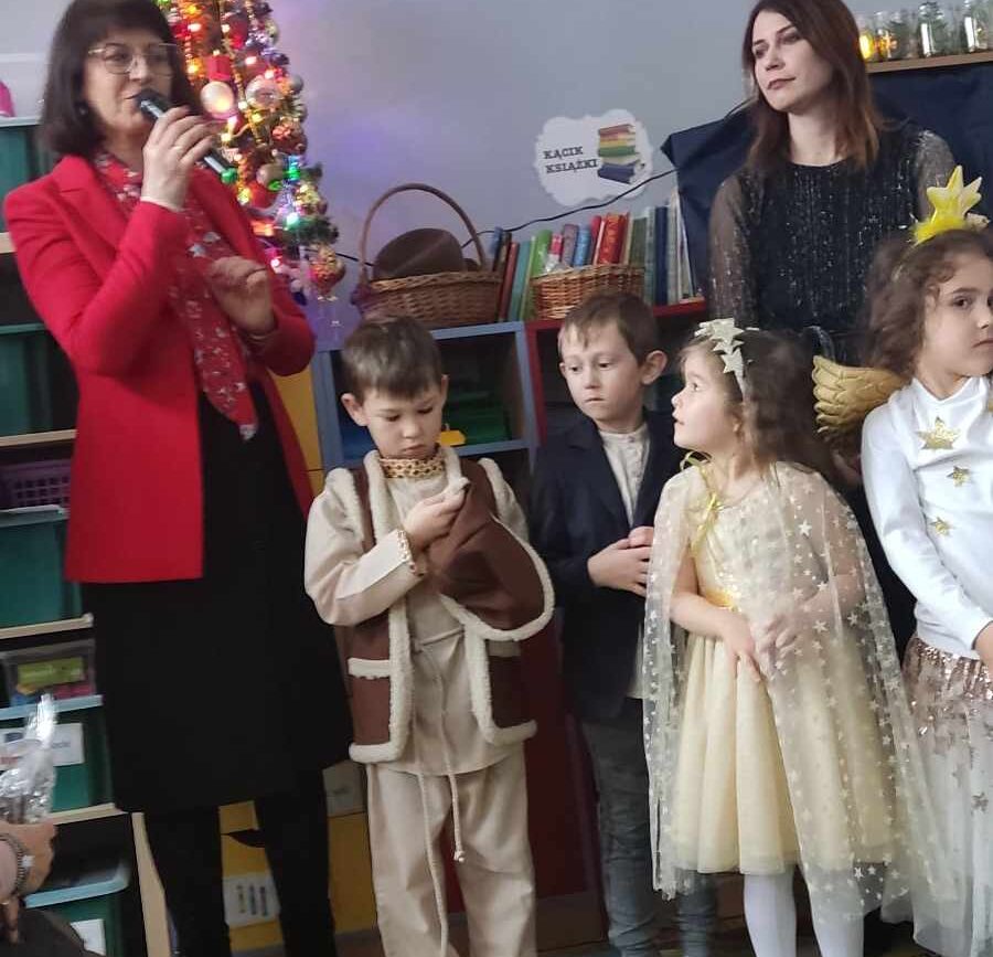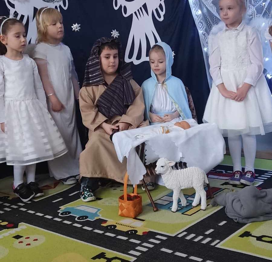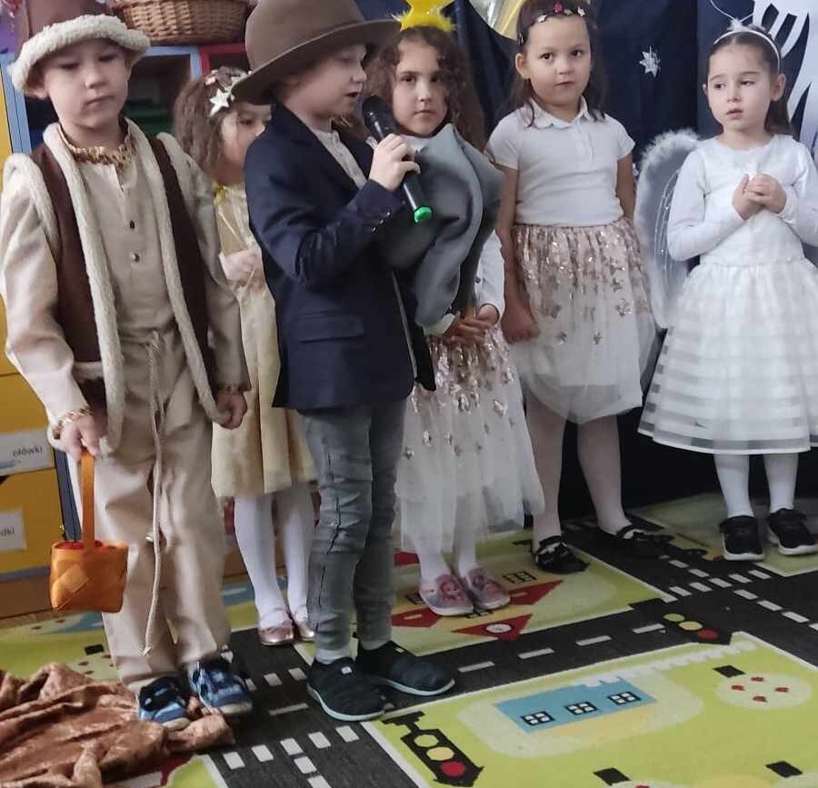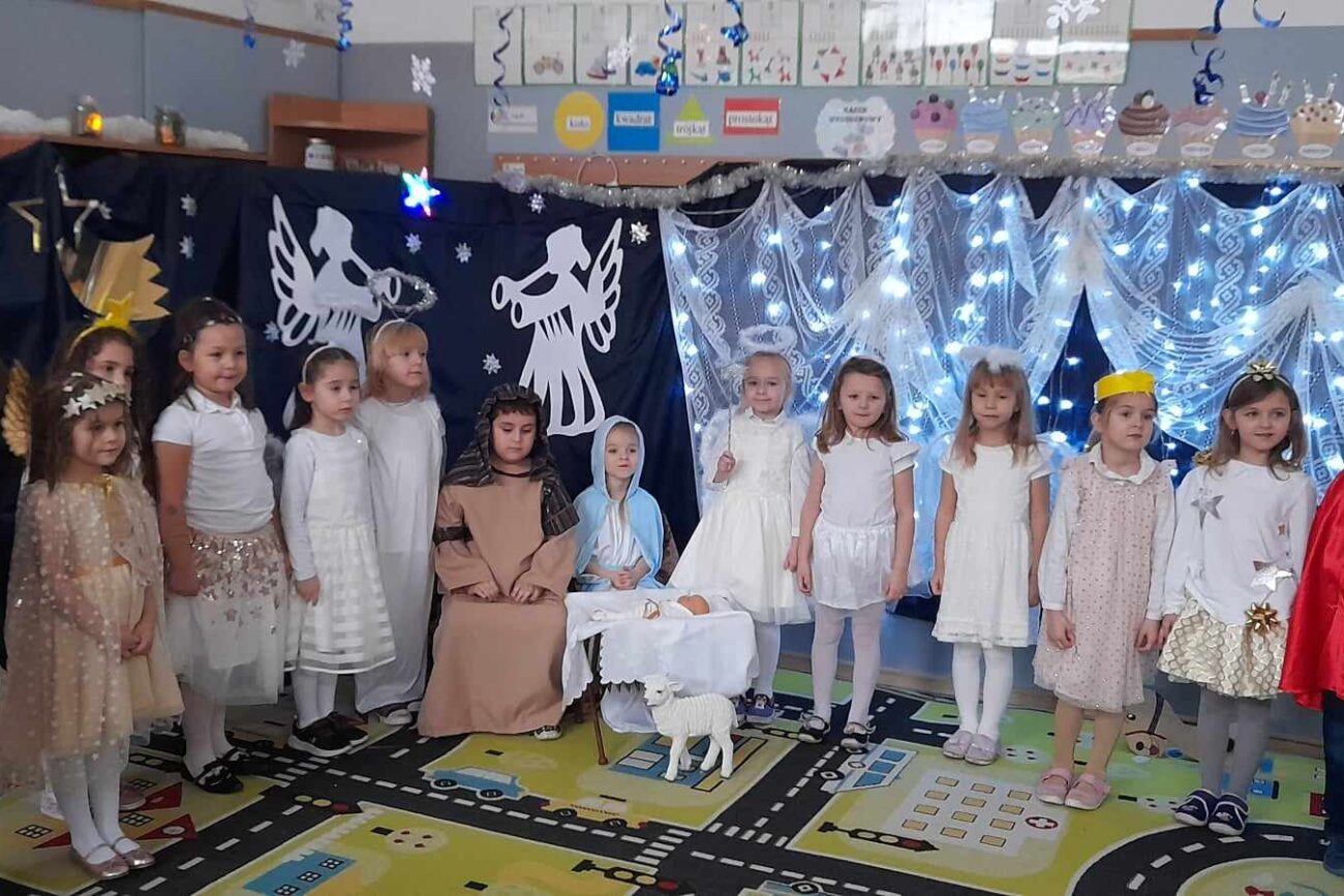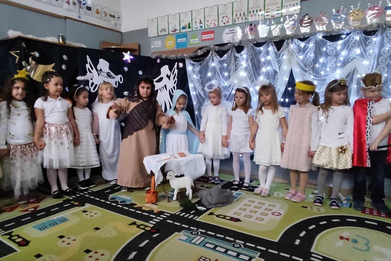 Święta Bożego Narodzenia to wyjątkowy i magiczny czas, pełen radości i rodzinnych spotkań. O tę świąteczną atmosferę zadbały dzieci z grupy Biedronek. Dzieci zaprezentowały przygotowywane od kilku tygodni „Jasełka Bożonarodzeniowe”. Podczas występu przedszkolaki przedstawiły swoją opowieść o narodzinach Jezusa, oprawioną wieloma kolędami. Piękna scenografia nawiązująca do Betlejem oraz stroje przedszkolaków były idealnym dopełnieniem całego przedstawienia. Mali artyści z dużym przejęciem i zaangażowaniem wiernie odtwarzali swoje role, prezentowali umiejętności recytatorskie i wokalne. Za swój występ otrzymali gromkie brawa oraz wyrazy uznania i podziękowania od Pani Dyrektor i Pani Wicedyrektor. Wszystko to sprawiło, że w sali zapanował uroczysty i nastrojowy klimat.