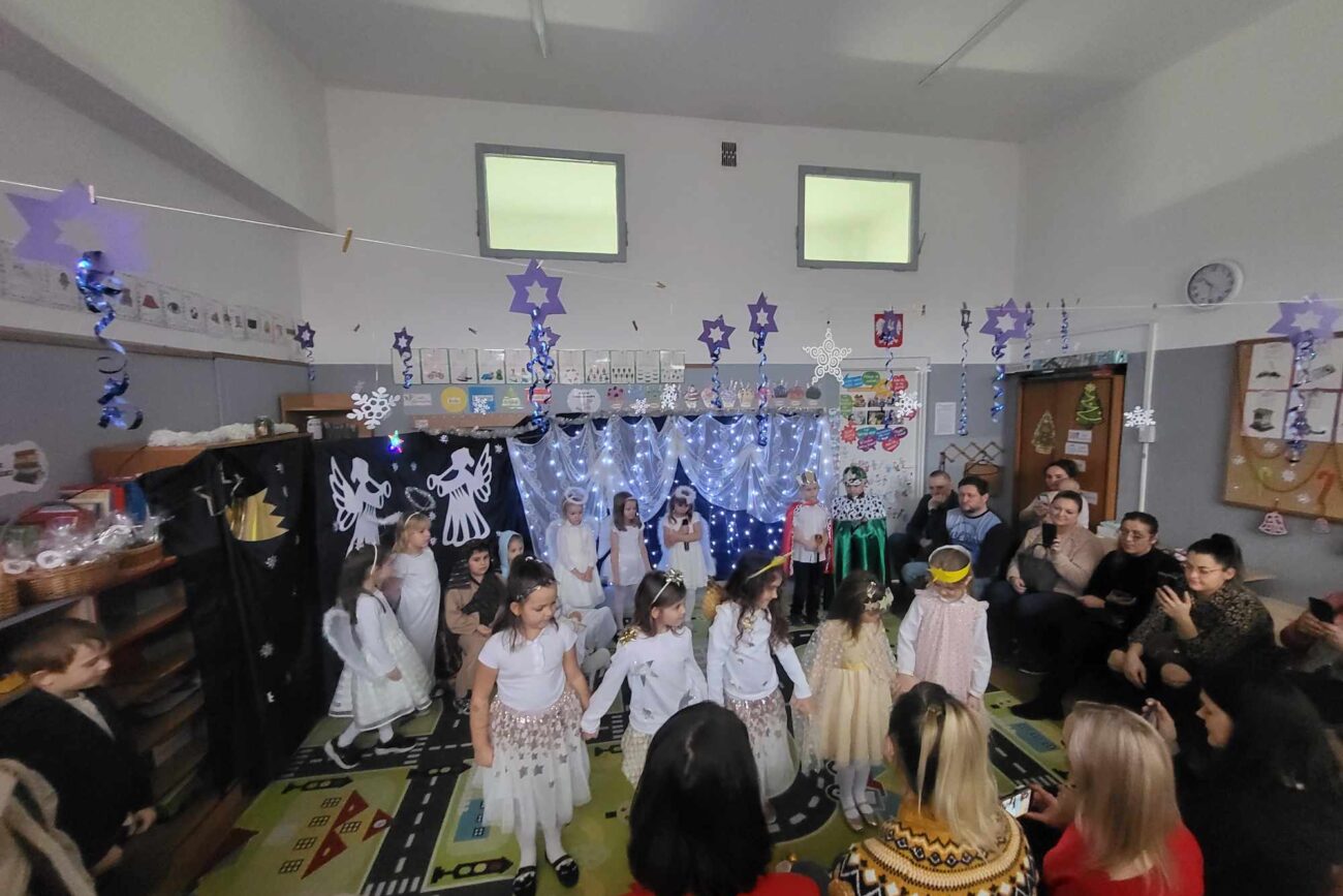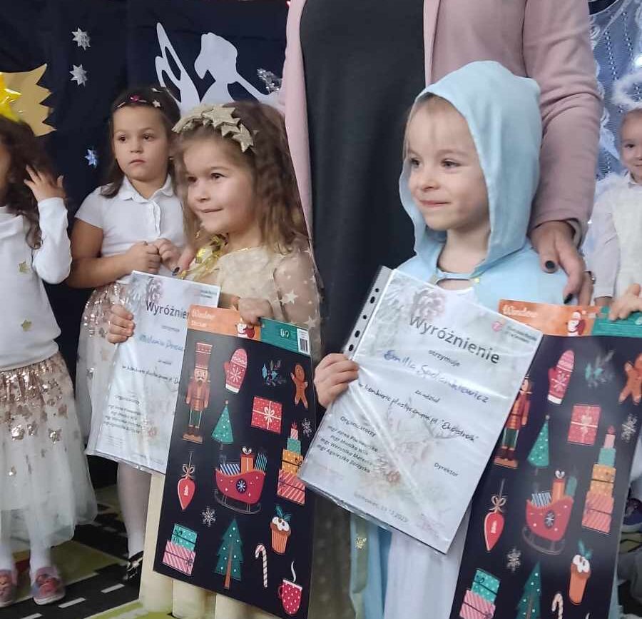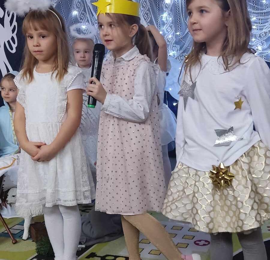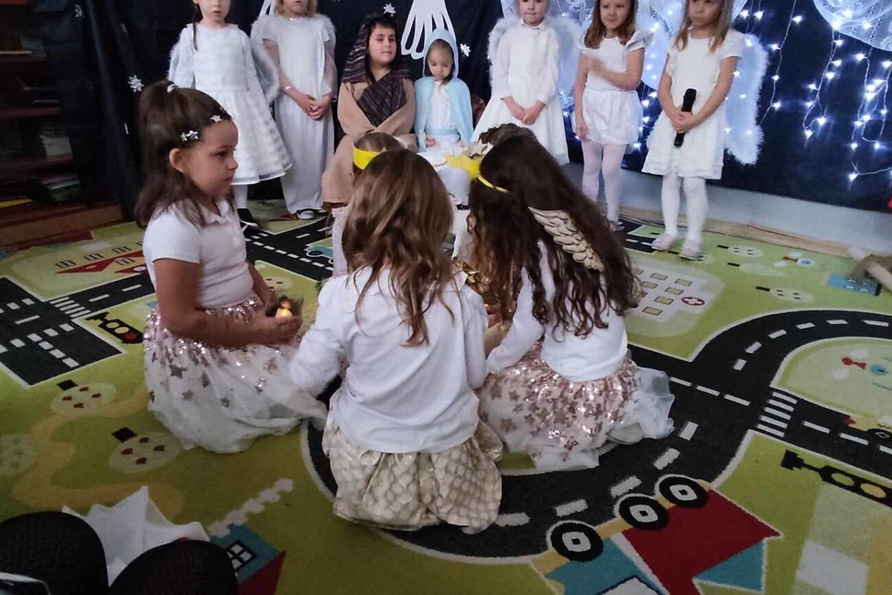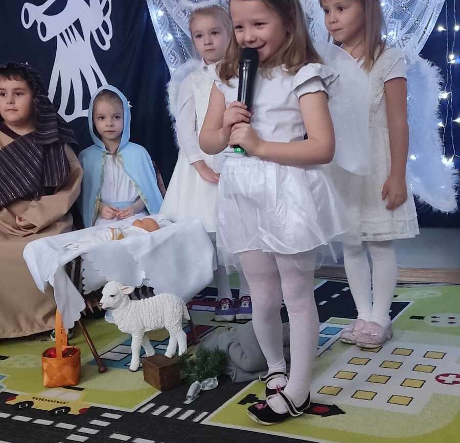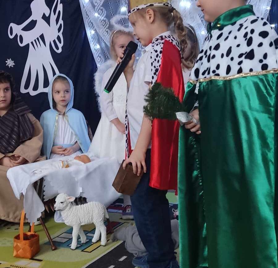 Święta Bożego Narodzenia to wyjątkowy i magiczny czas, pełen radości i rodzinnych spotkań. O tę świąteczną atmosferę zadbały dzieci z grupy Biedronek. Dzieci zaprezentowały przygotowywane od kilku tygodni „Jasełka Bożonarodzeniowe”. Podczas występu przedszkolaki przedstawiły swoją opowieść o narodzinach Jezusa, oprawioną wieloma kolędami. Piękna scenografia nawiązująca do Betlejem oraz stroje przedszkolaków były idealnym dopełnieniem całego przedstawienia. Mali artyści z dużym przejęciem i zaangażowaniem wiernie odtwarzali swoje role, prezentowali umiejętności recytatorskie i wokalne. Za swój występ otrzymali gromkie brawa oraz wyrazy uznania i podziękowania od Pani Dyrektor i Pani Wicedyrektor. Wszystko to sprawiło, że w sali zapanował uroczysty i nastrojowy klimat.