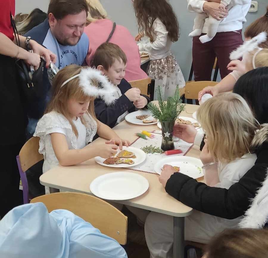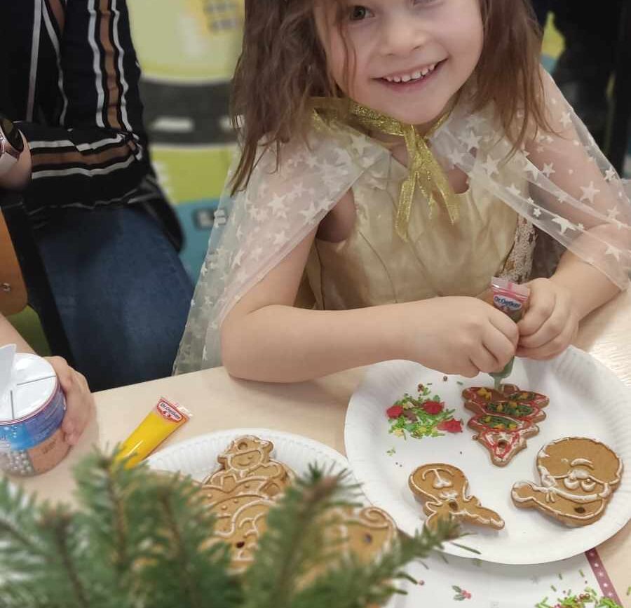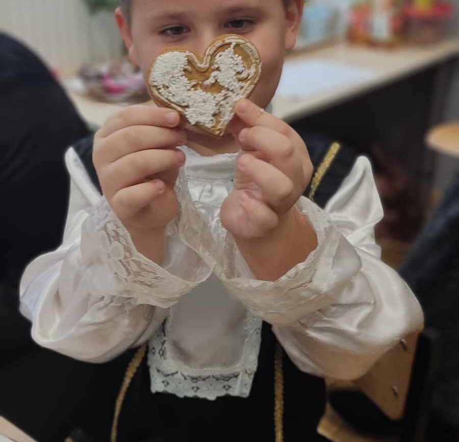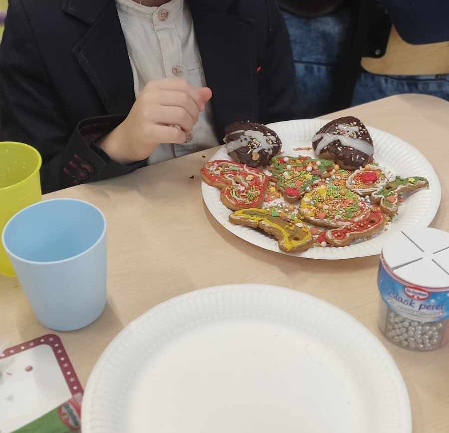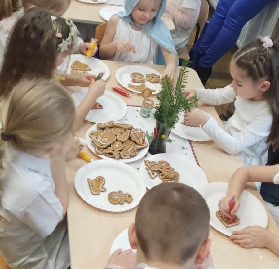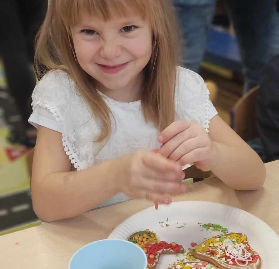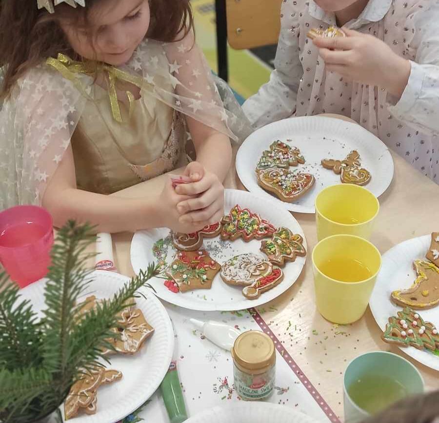 Pani Dyrektor wręczyła również dyplomy – Emilka i Melania otrzymały wyróżnienie w Rodzinnym Konkursie „Eko stroik”. Na zakończenie odbyły się warsztaty – ozdabianie pierników.