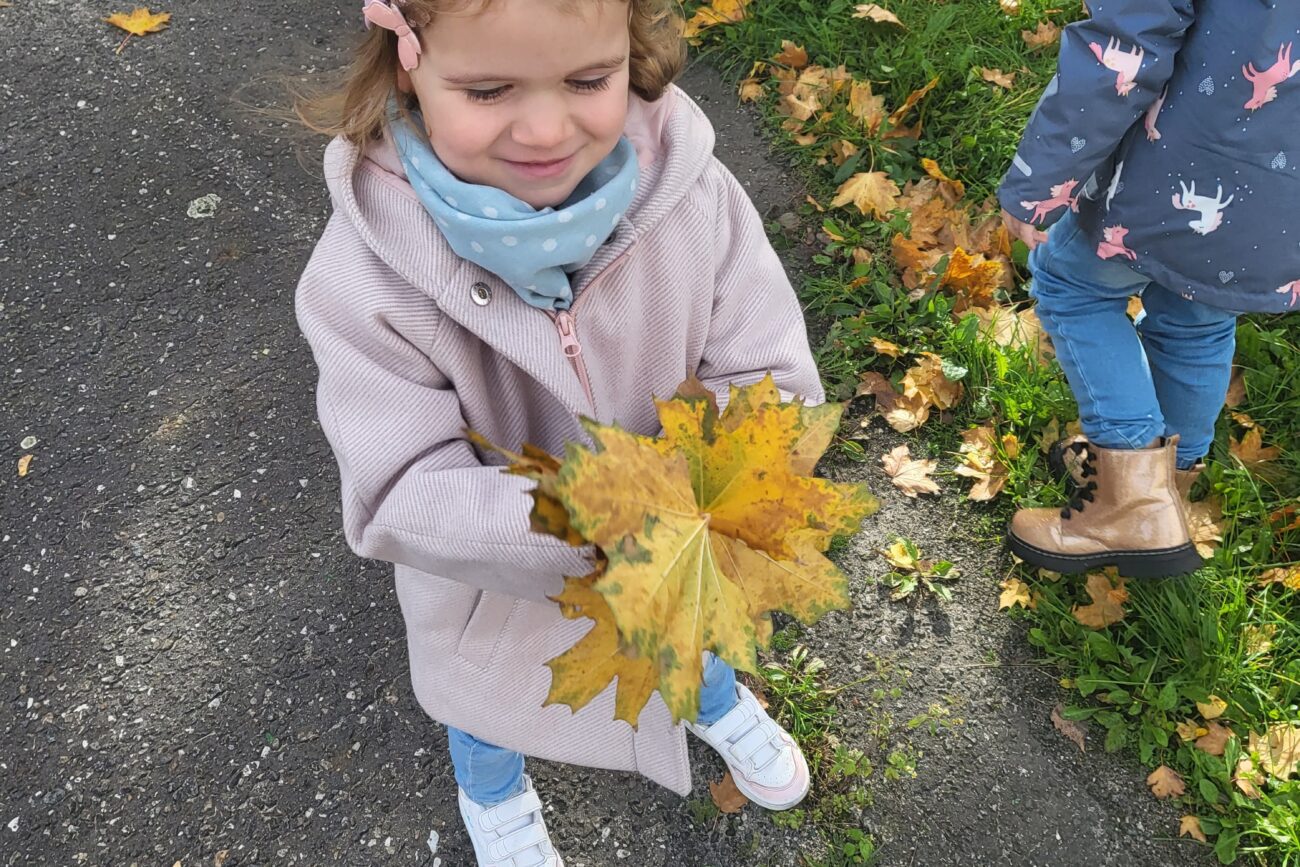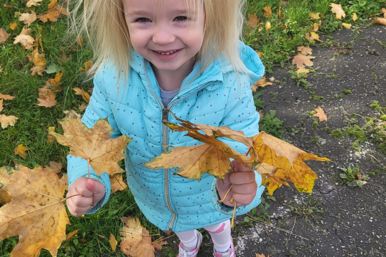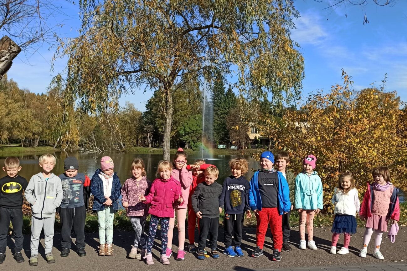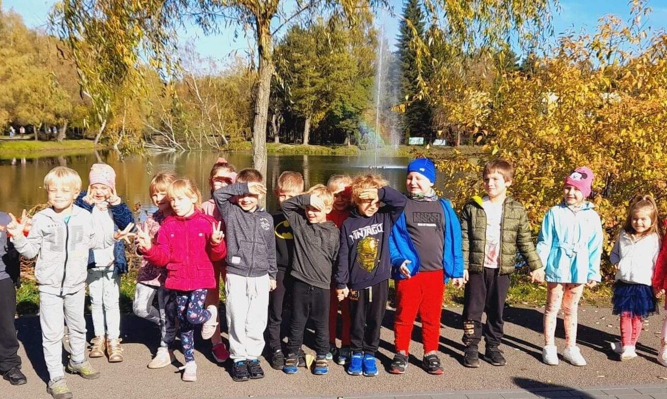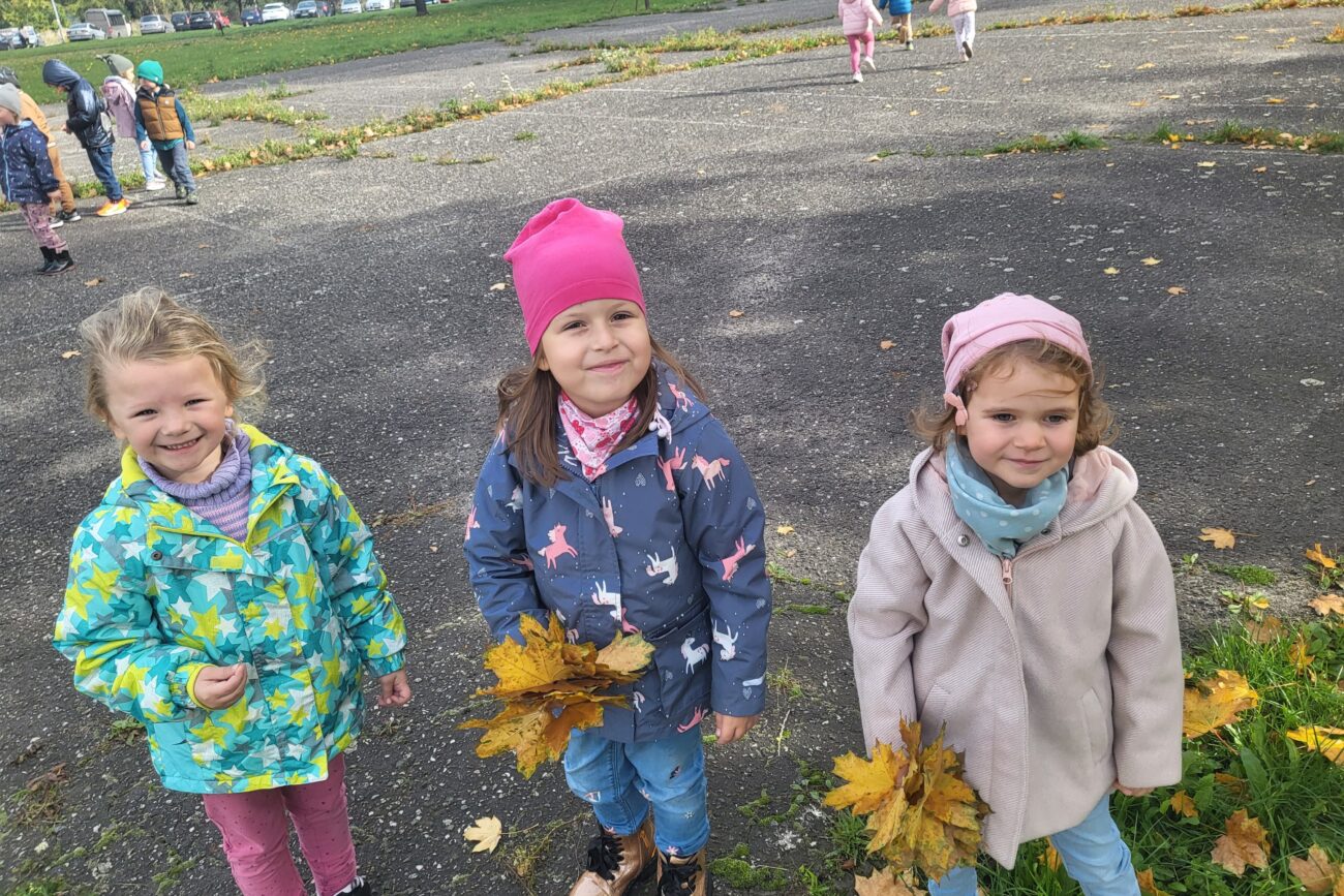Jesień to piękna pora roku, raz pełna kolorów i wspaniałych widoków innym razem mokra i mglista. W pogodne dni korzystamy ze spacerów i zabaw na świeżym powietrzu. Przedszkolaki chętnie podziwiają miejscowy park w jesiennej szacie, otaczającą przyrodę, rozpoznają gatunki drzew oraz zbierają liście.