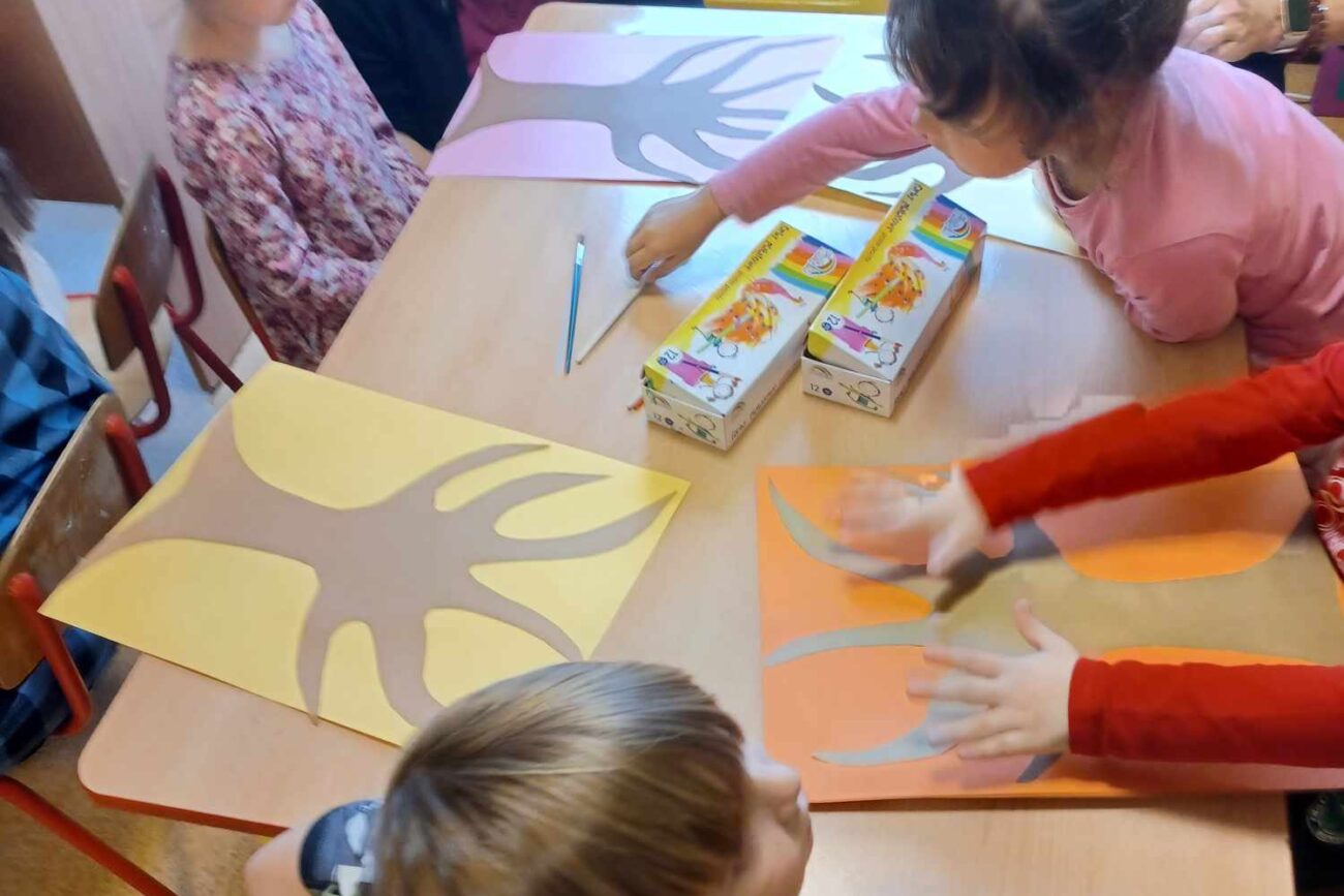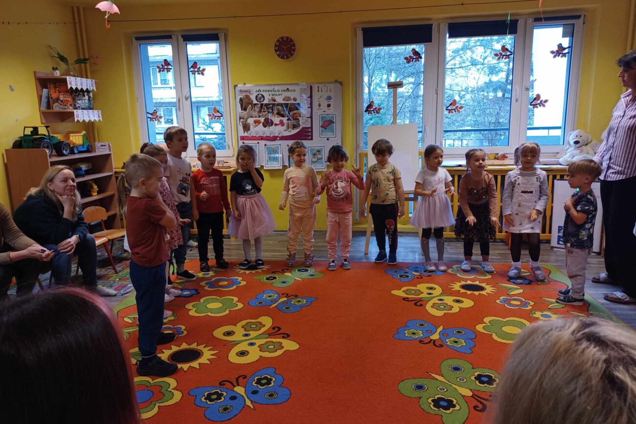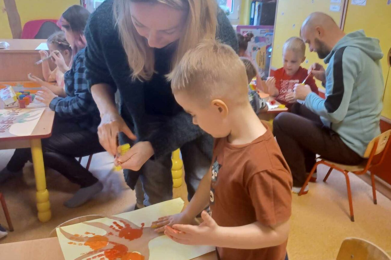 W dniu 23.11.2023r w grupie „Motylki” odbyło się jesienne spotkanie z rodzicami. W tym dniu rodzice mogli zobaczyć jak ich pociechy śpiewają piosenki o jesieni. Wspólnie ze swoimi dziećmi szukali jesiennych liści ukrytych w sali. Rozwiązywali jesienne zagadki, bawili się w zabawy na dywanie oraz zabawy ruchowe do jesiennych piosenek. Na koniec zajęć wspólnie ze swoimi dziećmi wykonali „Jesienne drzewo”. Dziękujemy Rodzicom za przyjście i zaangażowanie w zajęcia. Pani Ania Pani Marysia