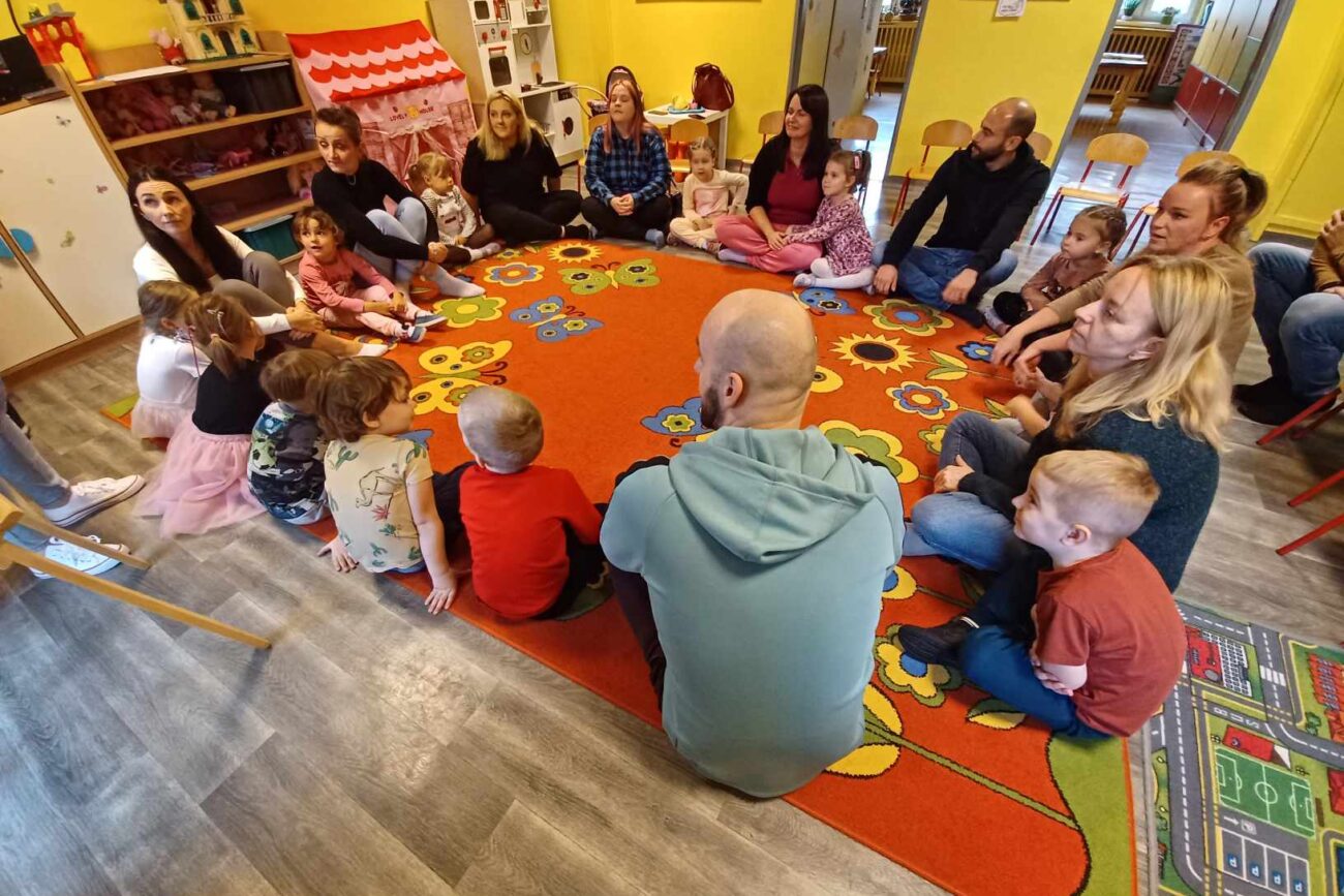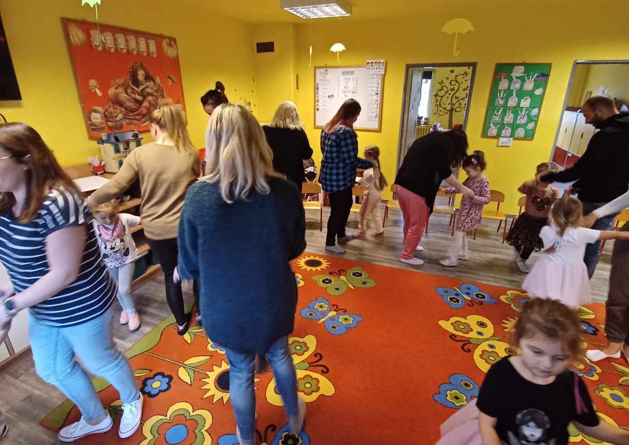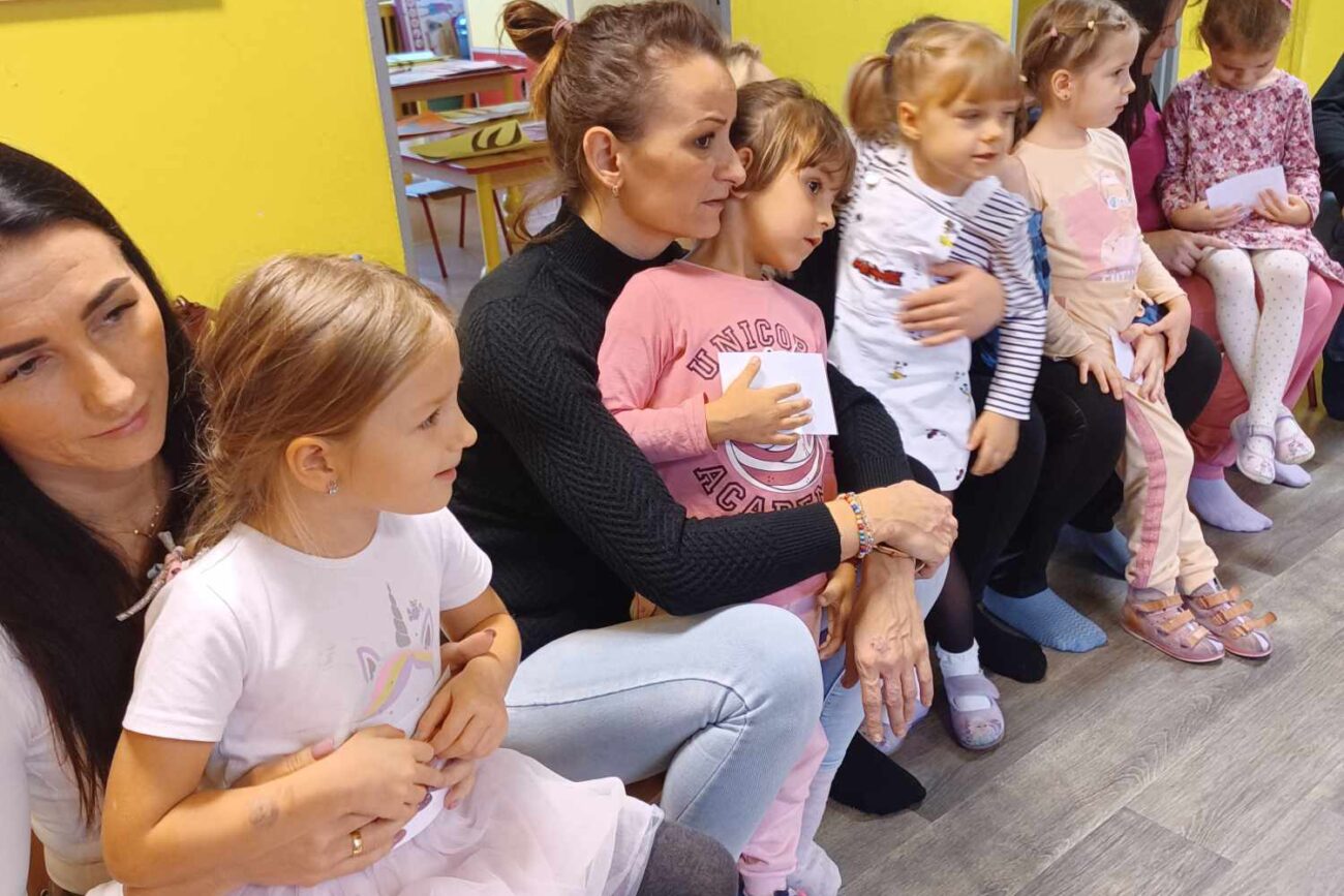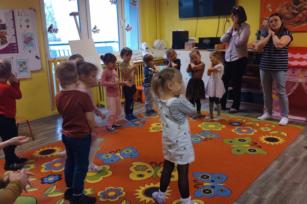 W dniu 23.11.2023r w grupie „Motylki” odbyło się jesienne spotkanie z rodzicami. W tym dniu rodzice mogli zobaczyć jak ich pociechy śpiewają piosenki o jesieni. Wspólnie ze swoimi dziećmi szukali jesiennych liści ukrytych w sali. Rozwiązywali jesienne zagadki, bawili się w zabawy na dywanie oraz zabawy ruchowe do jesiennych piosenek. Na koniec zajęć wspólnie ze swoimi dziećmi wykonali „Jesienne drzewo”. Dziękujemy Rodzicom za przyjście i zaangażowanie w zajęcia. Pani Ania Pani Marysia