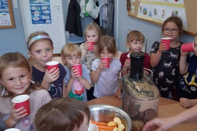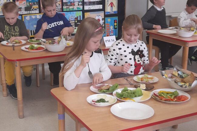 Wykonanie zdrowych kanapek z przygotowanych produktów przez organizatora według własnej inwencji twórczej dzieci.
