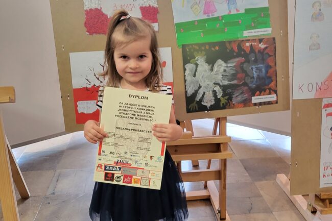 20 czerwca w Miejskim Domu Kultury odbyła się Gala wręczenia nagród w konkursie: „Konstytucja 3 Maja”. Serdecznie gratulujemy Melanii z grupy Motylki za zajęcie II miejsca oraz Lenie z grupy Misie za wyróżnienie. Dziewczynki wykonały piękne prace plastyczne.