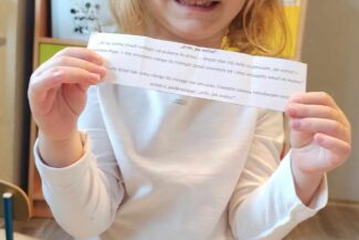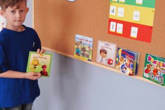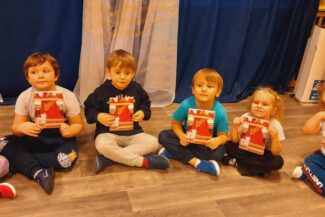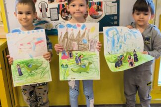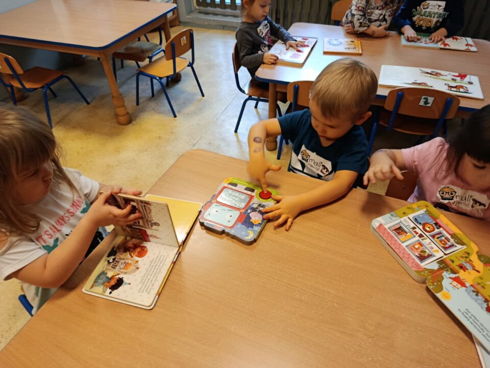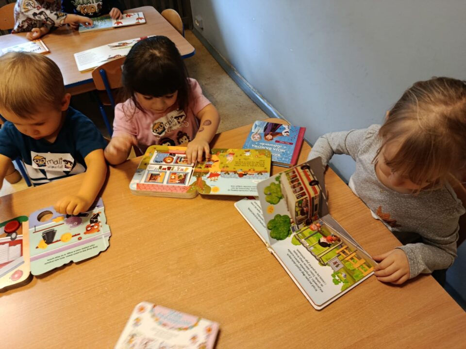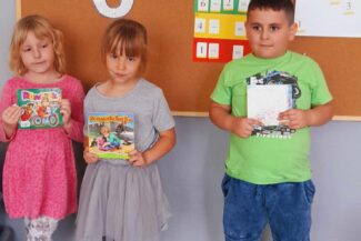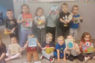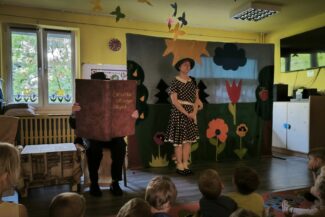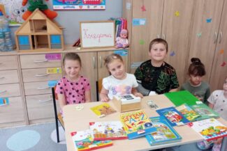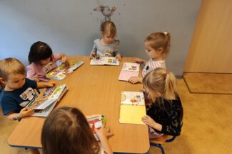 - Budzenie zaciekawienia książką przez ciekawe zabawy literacko – teatralne, wycieczki oraz wyeksponowany i atrakcyjny kącik książek w holu oraz każdej sali przedszkolnej.