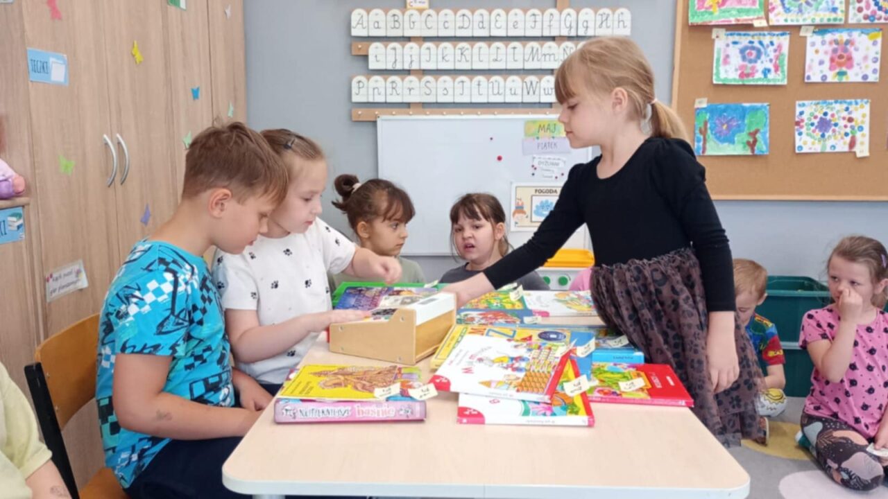 - Wzbogacanie biblioteczki:Dbanie o atrakcyjne księgozbiory, tworzenie i modernizowanie kącików książek w salach.