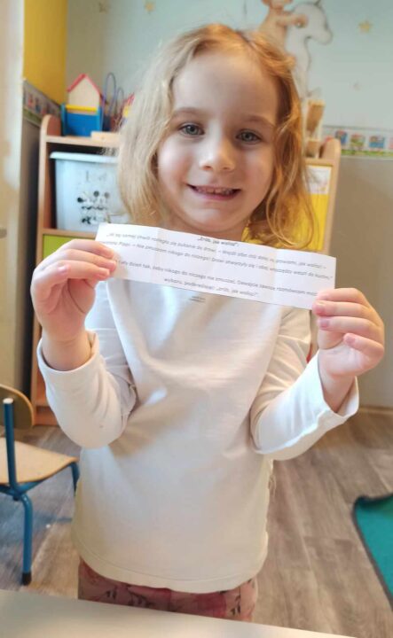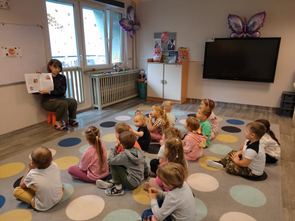 Ważnym zadaniem rozwojowym dziecka w wieku przedszkolnym jest kształtowanie w sobie inicjatywy. To dzięki niej mały człowiek podejmuje różne wyzwania, tworzy pierwsze plany i stawia sobie proste cele. Zaangażowanie w aktywność, która sprawia dziecku przyjemność, jest często powiązane z ekscytacją, czyli dużym poziomem energii. To ona mobilizuje do działania, podtrzymuje rozpoczętą aktywność, a po uzyskaniu pożądanego efektu pozostawia odczucie zadowolenia. W ramach zajęć poszerzających kompetencje emocjonalno-społeczne dzieci z grupy Motyle próbowały więc, znaleźć odpowiedź na fundamentalne pytanie – „Co lubię robić?”. Pomogła literatura dziecięca.