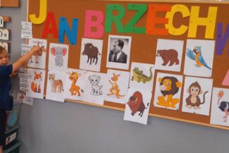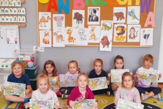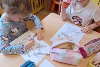 - ,,Biedronki” i „Motylki” min. słuchały wierszy o zwierzętach, dopasowując do obrazków napisy, tj. nazwy zwierząt oraz je kolorowały.