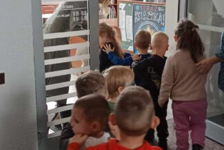 - Najmłodsze „Misie” wzięły udział w warsztatach zorganizowanych przez Panie z Miejskiej Biblioteki Publicznej w Kazimierzu Górniczym. Poznały zasady korzystania z biblioteki, wysłuchały bajki czytanej przez Panią Bibliotekarkę oraz wykonały śliczne zakładki do książek. To była bardzo ciekawa wycieczka.