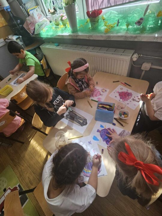 - Prace plastyczne i manualne:Tworzenie ilustracji do usłyszanych utworów, lepienie, malowanie.