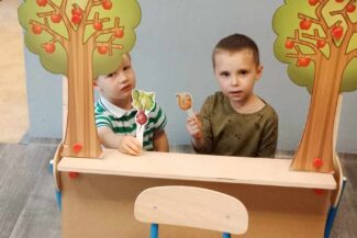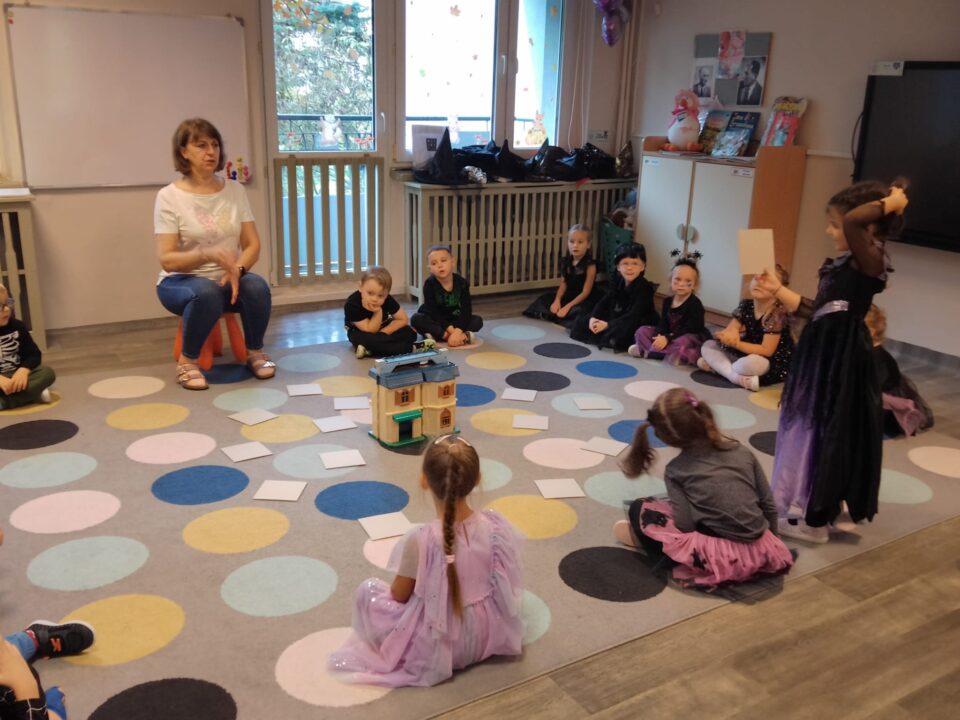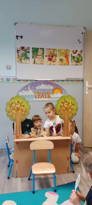 - Rozwój kreatywności i wyobraźni: Rozwijanie pomysłowości poprzez zabawy w role, improwizacje, tworzenie kukiełek/pacyn, odgrywanie scenek.